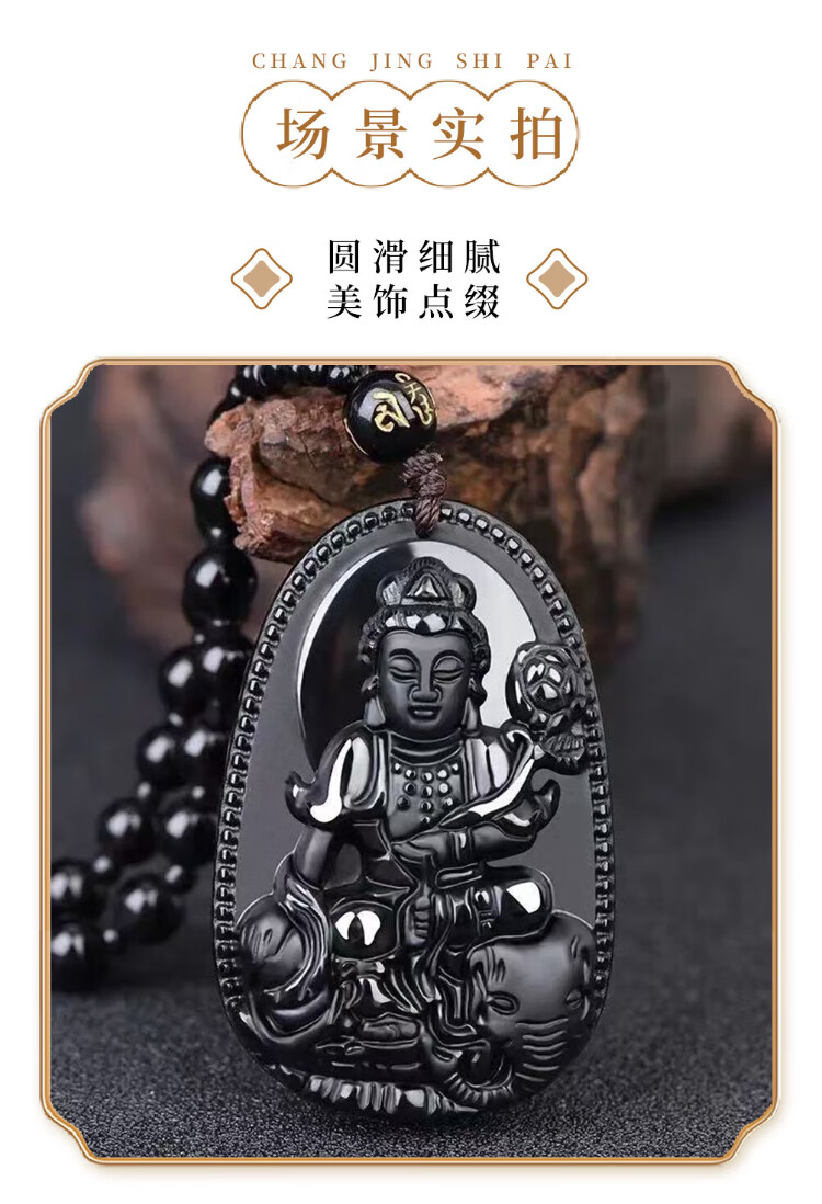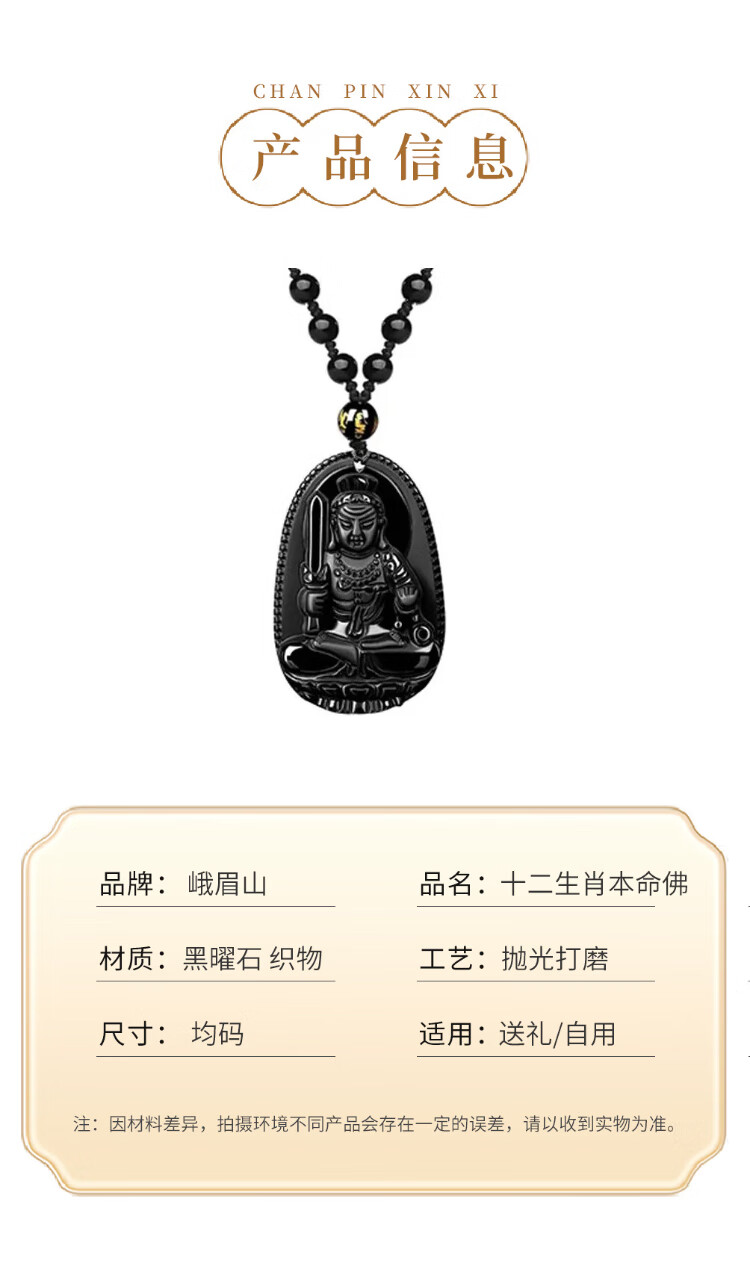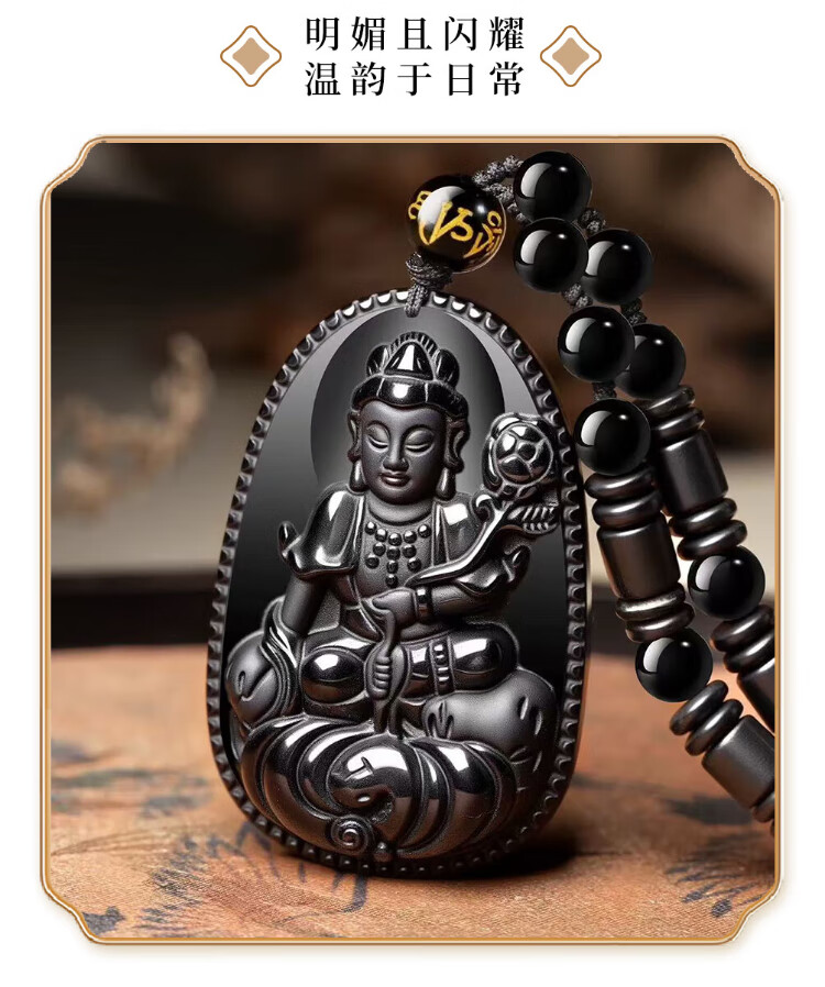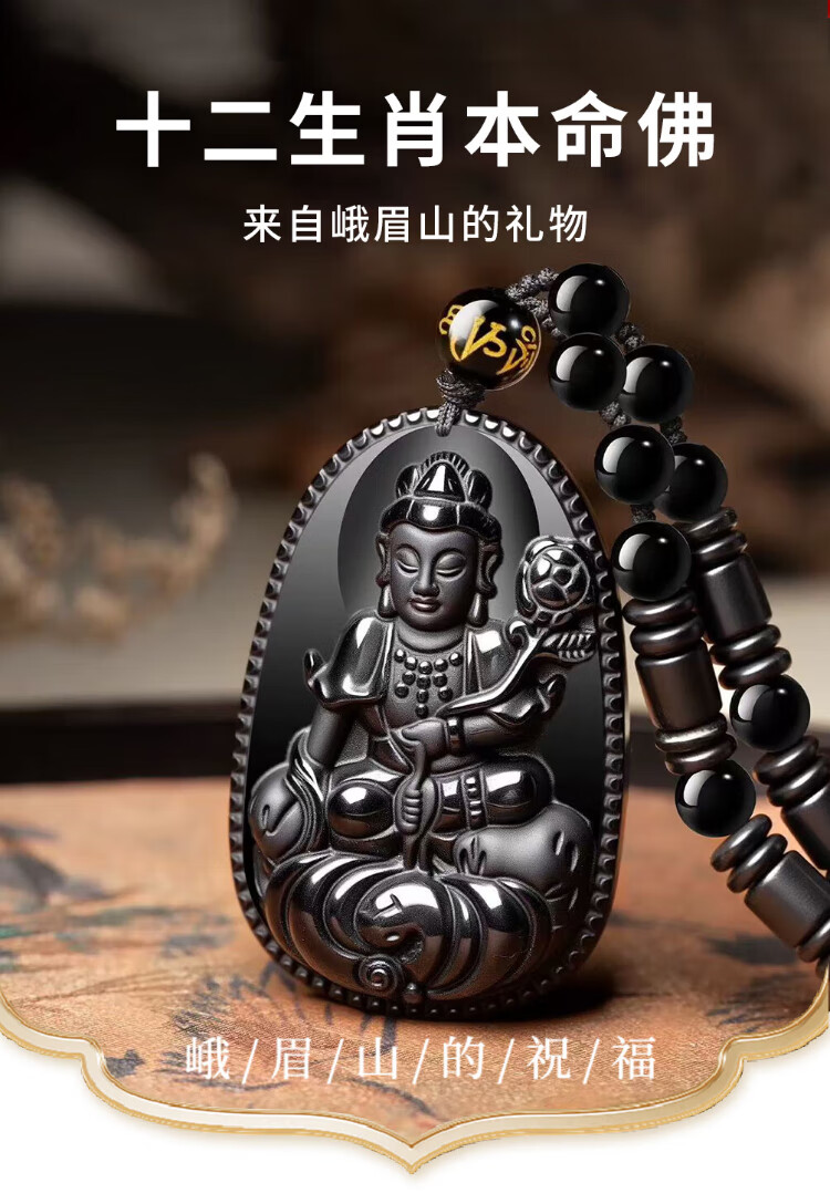 Emeishan has passed the time of incense. Black gold obsidian natal Buddha pendant for men and women, zodiac necklace, peace amulet pendant