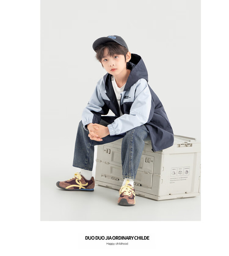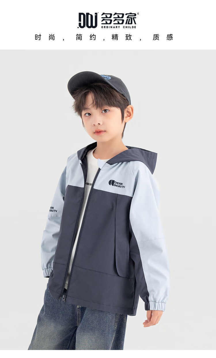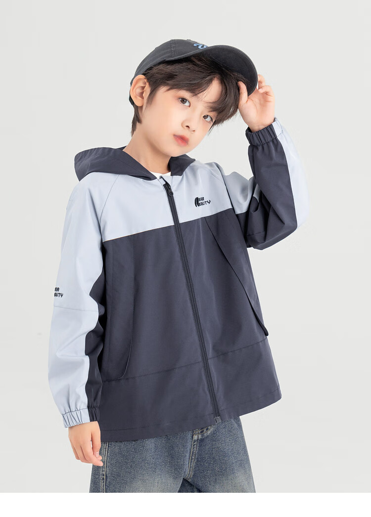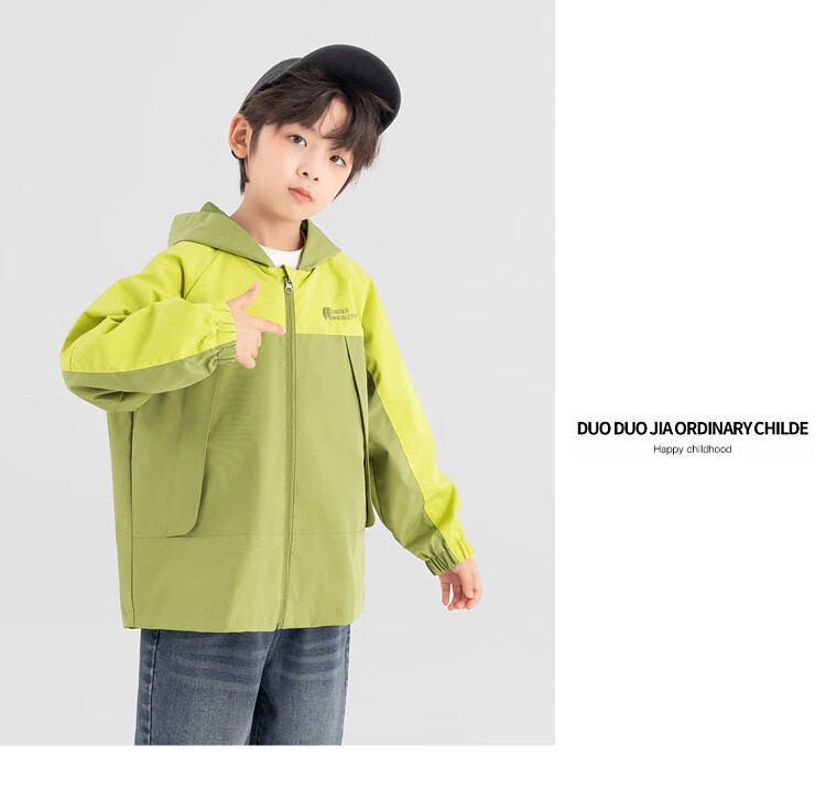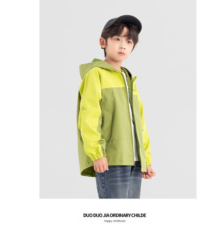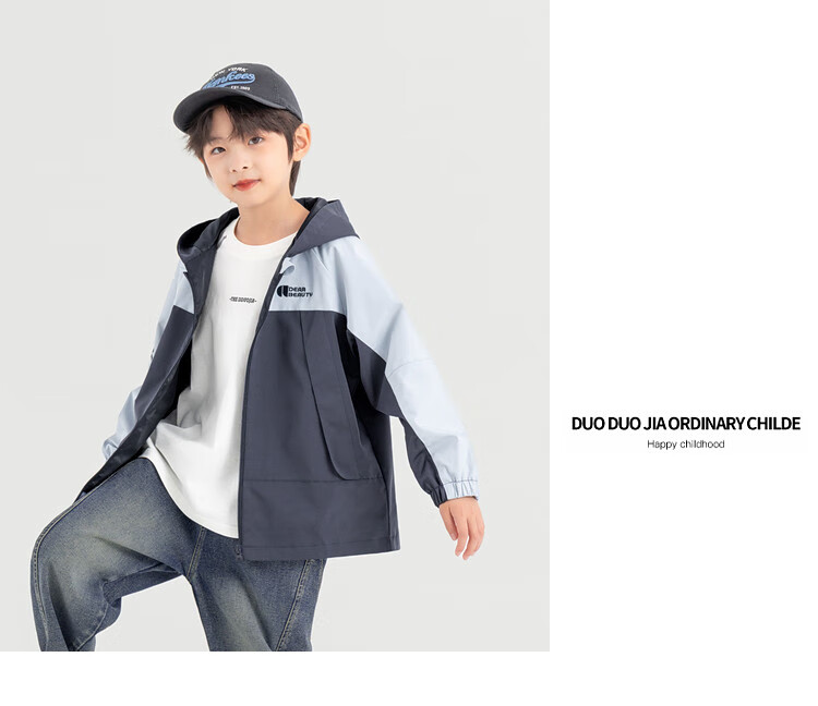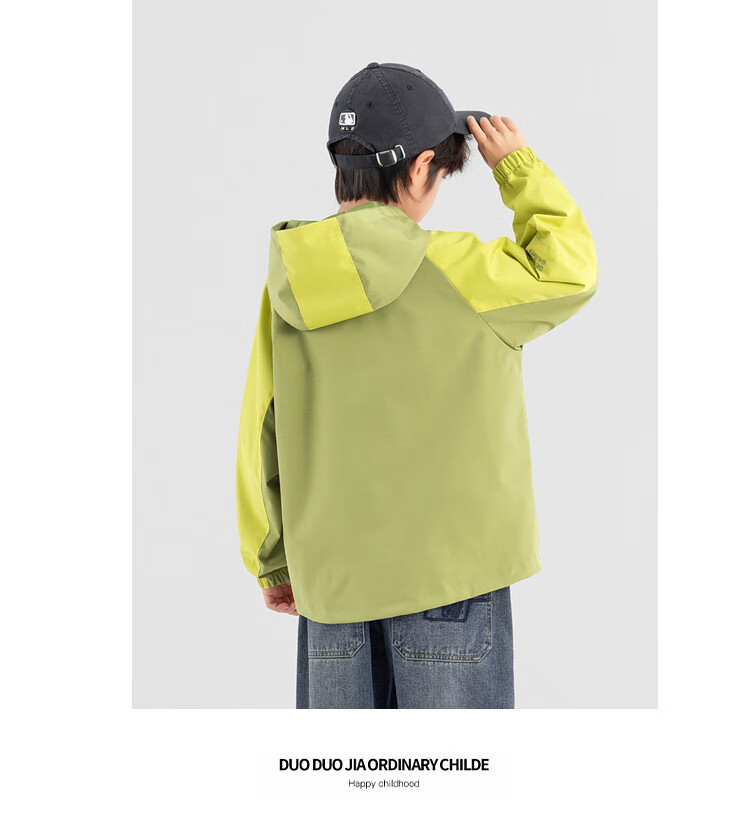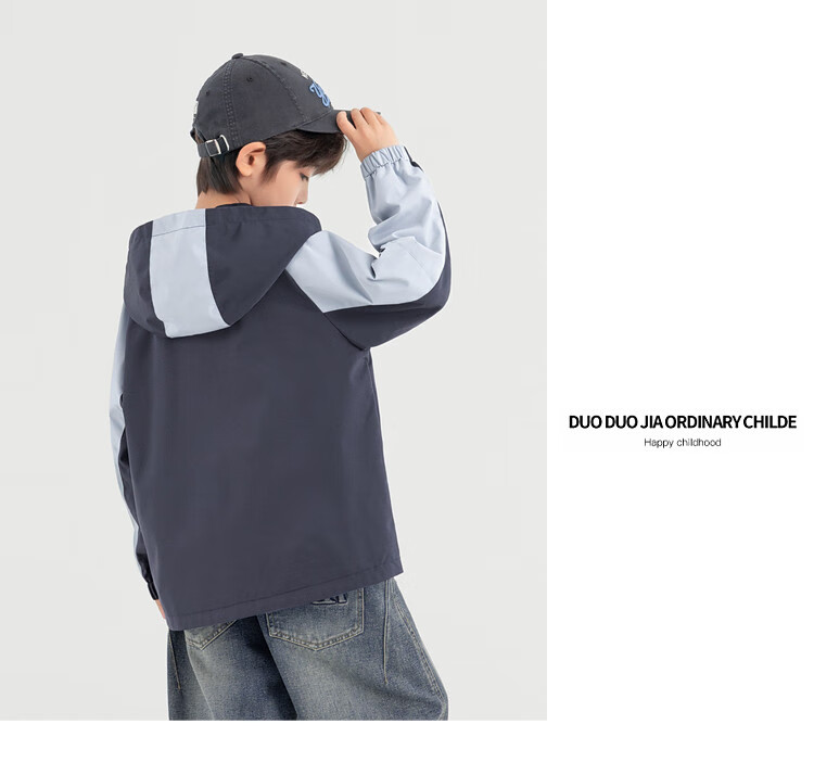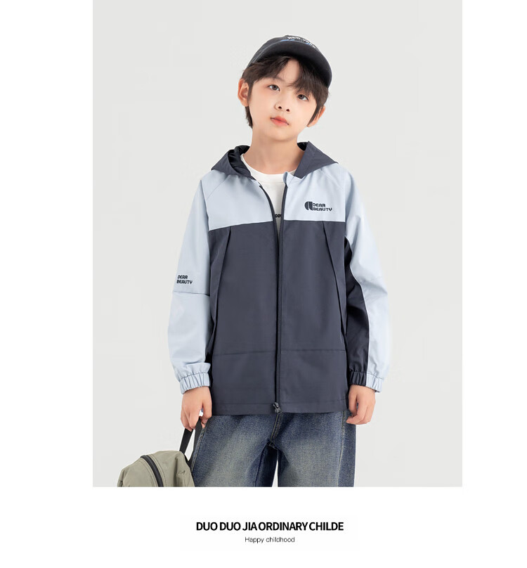 Duojia Boys' Jackets 2025 Spring and Autumn Outdoor Contrast Color Jackets Soft Shell Children's Loose and Crisp Hooded Windproof Tops