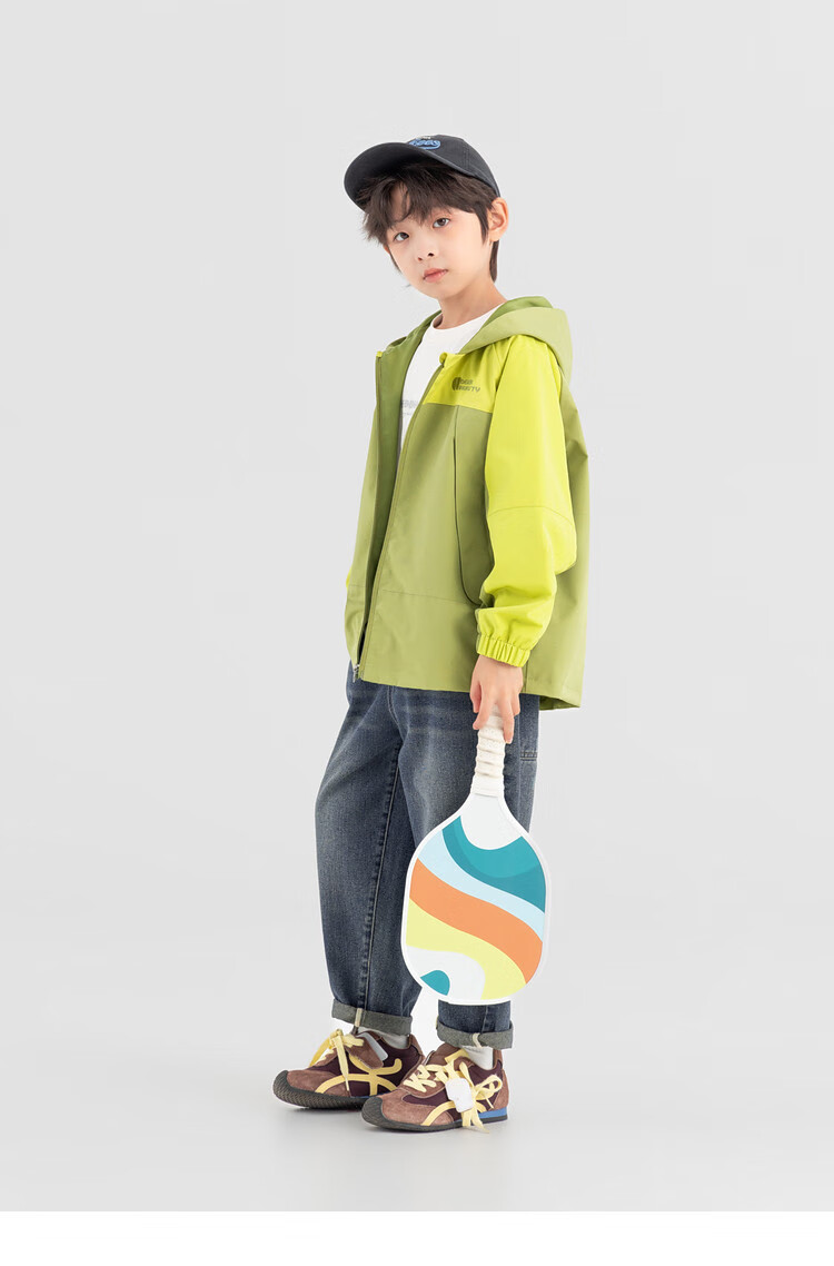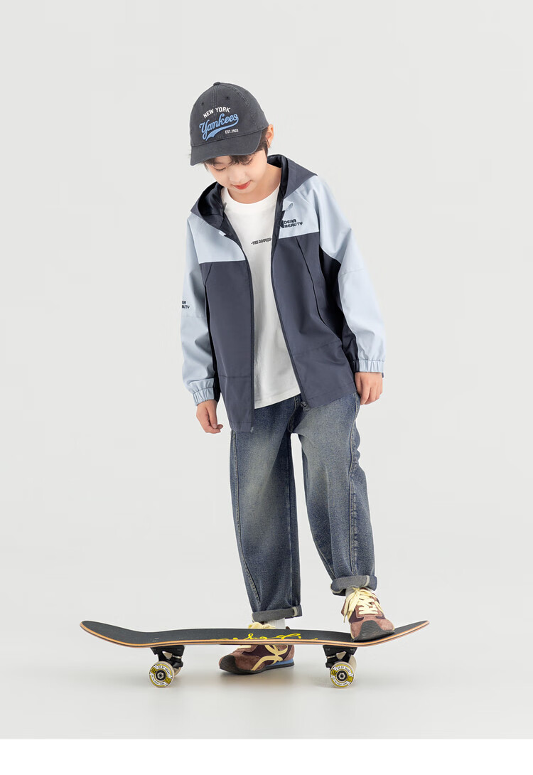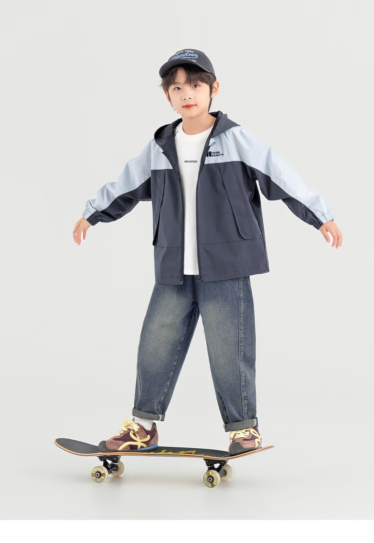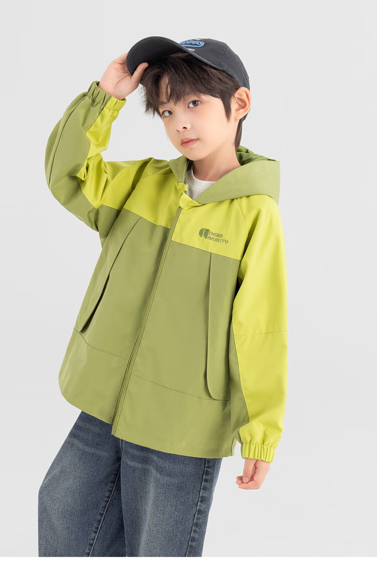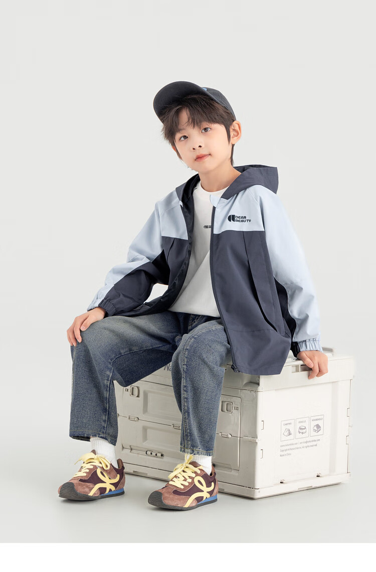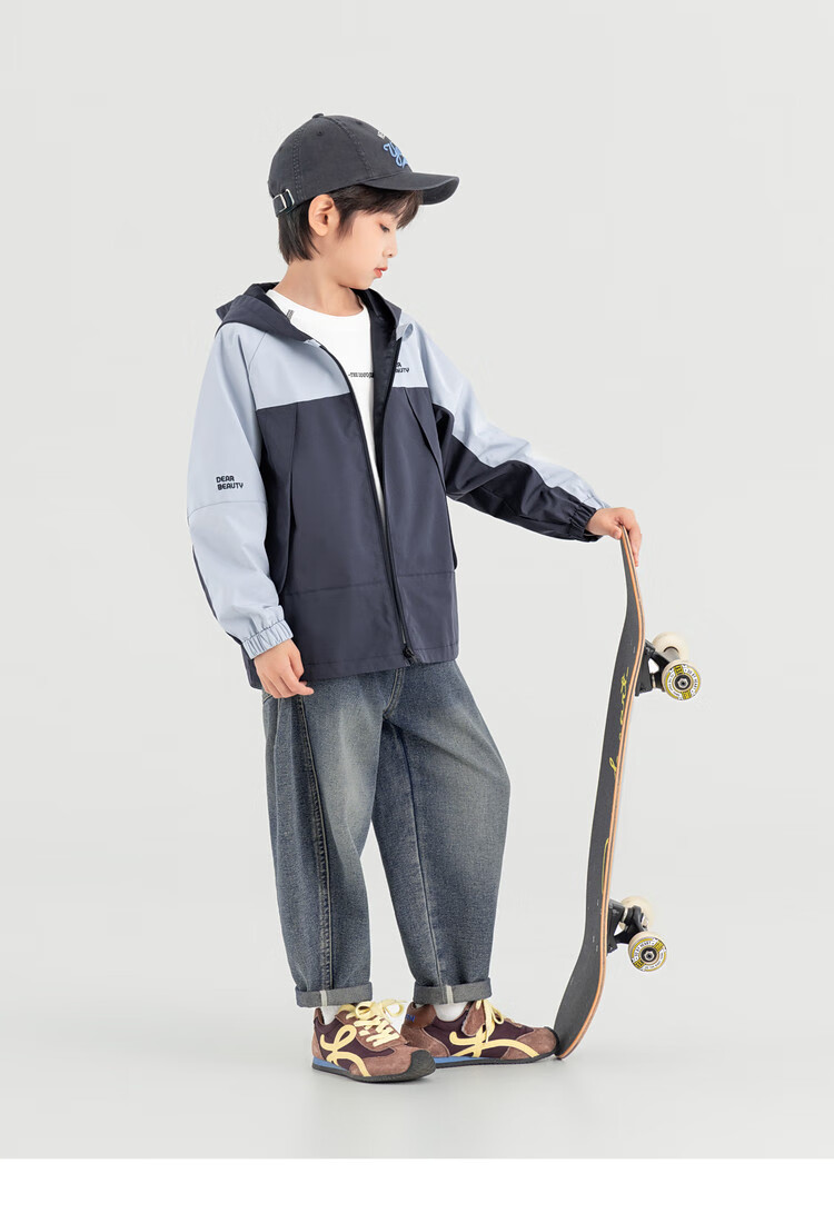 Duojia Boys' Jackets 2025 Spring and Autumn Outdoor Contrast Color Jackets Soft Shell Children's Loose and Crisp Hooded Windproof Tops