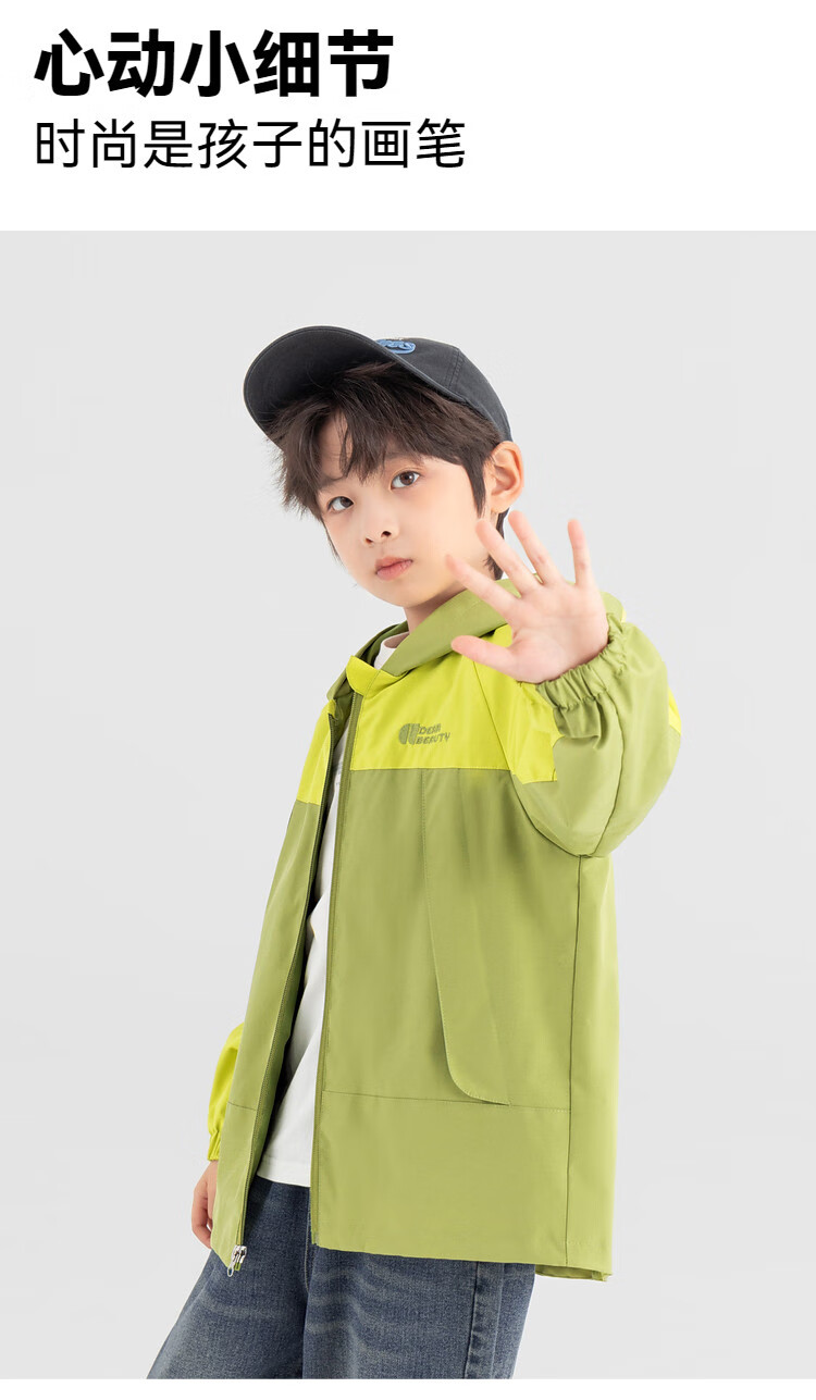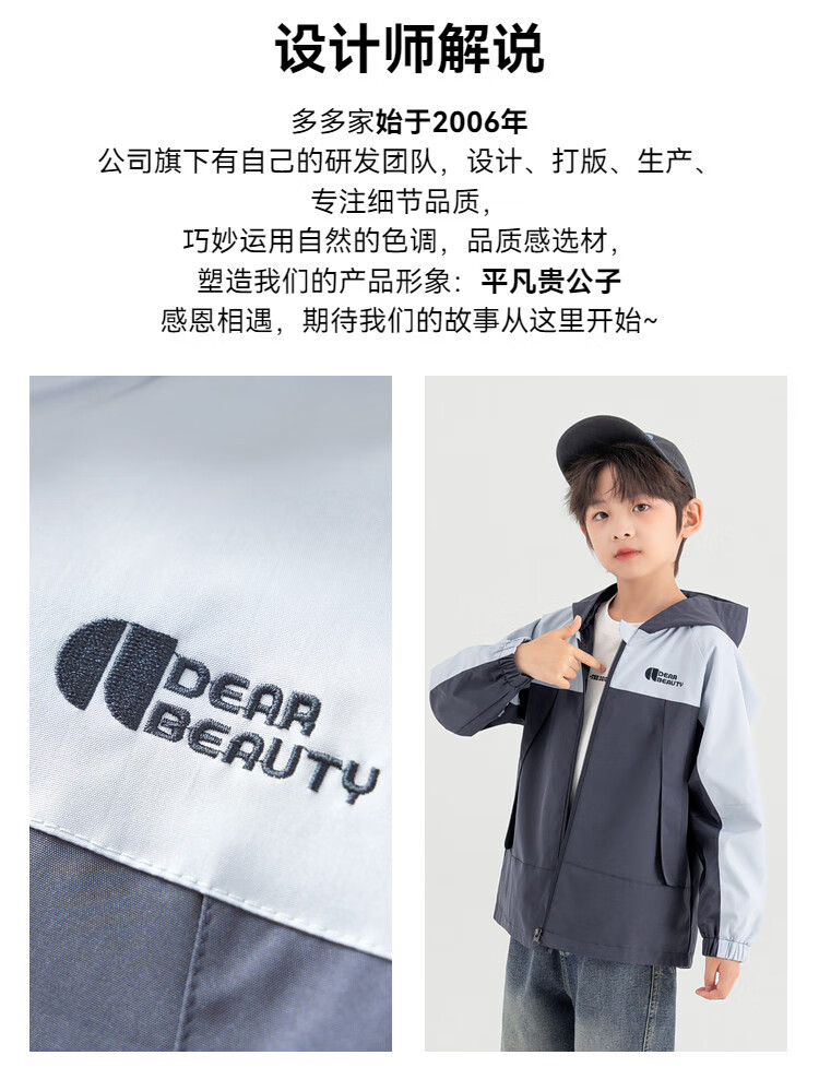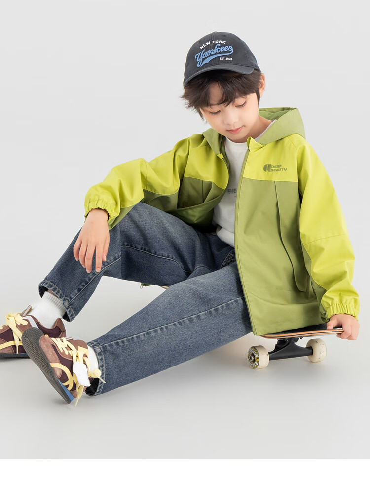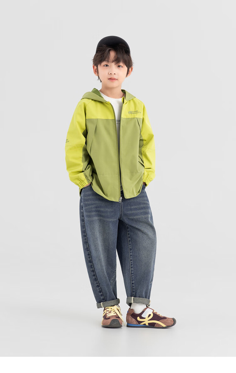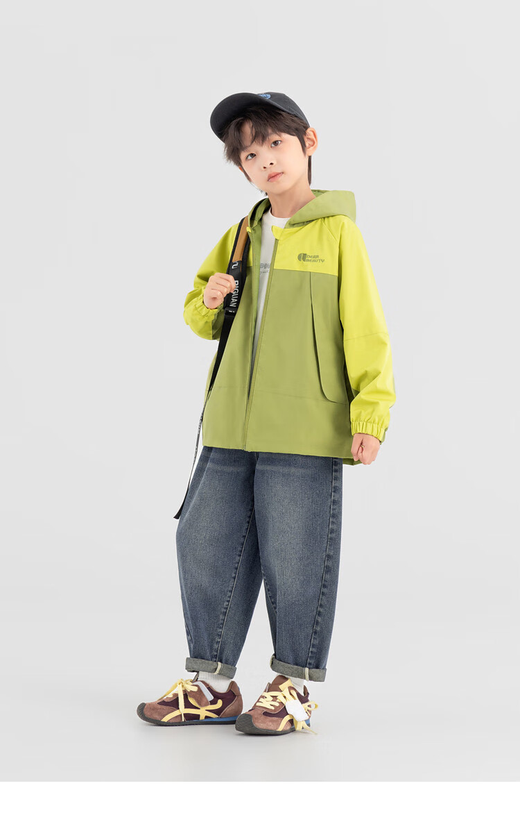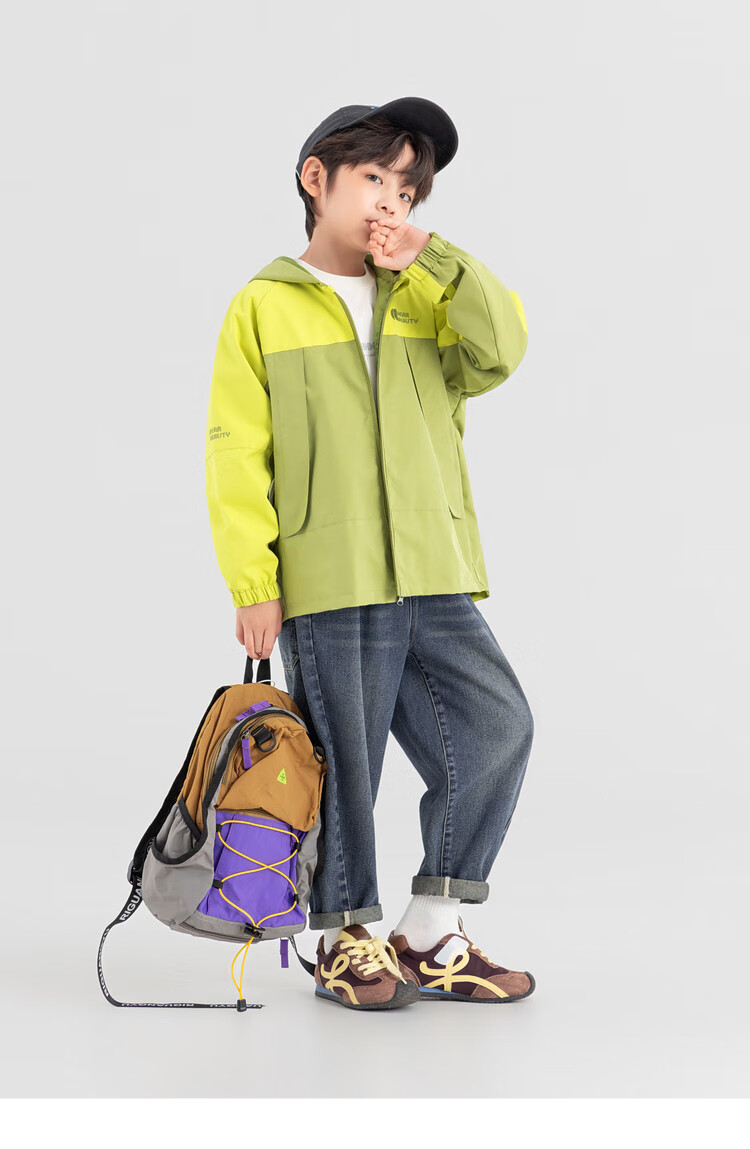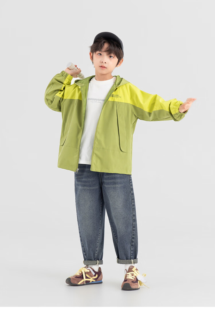 Duojia Boys' Jackets 2025 Spring and Autumn Outdoor Contrast Color Jackets Soft Shell Children's Loose and Crisp Hooded Windproof Tops
