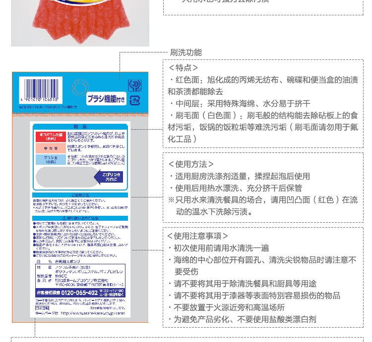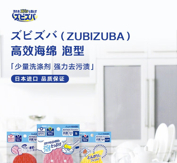 Asahi Baoxian Japan imported dishwashing brush sponge scouring pad foaming protruding powerful cleaning three-piece set