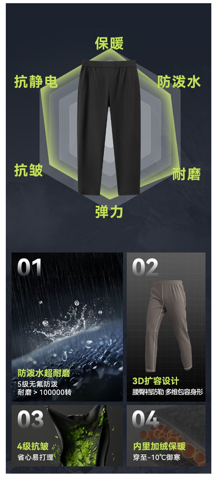 Made in Tokyo, water-repellent 25 new sports trousers for men, warm in autumn and winter, outdoor charging, mountaineering, wear-resistant commuting casual pants, black L