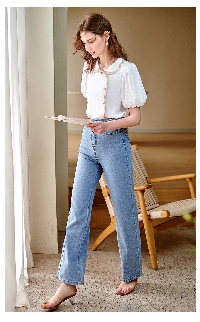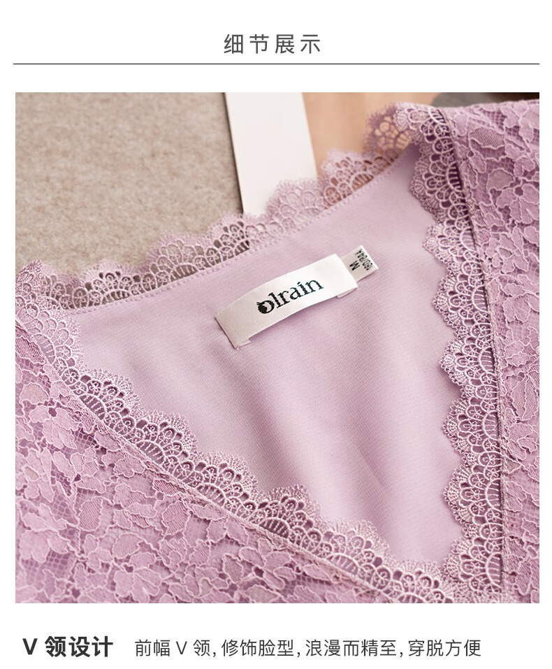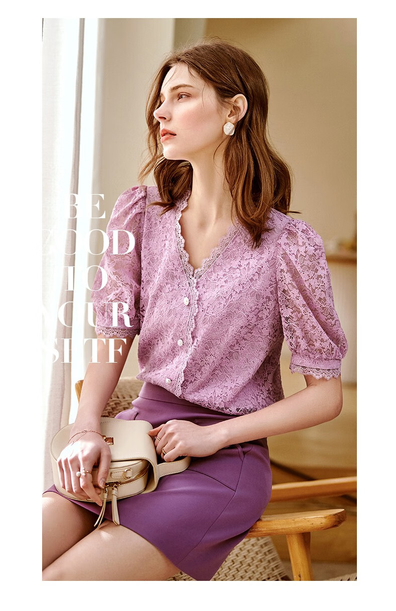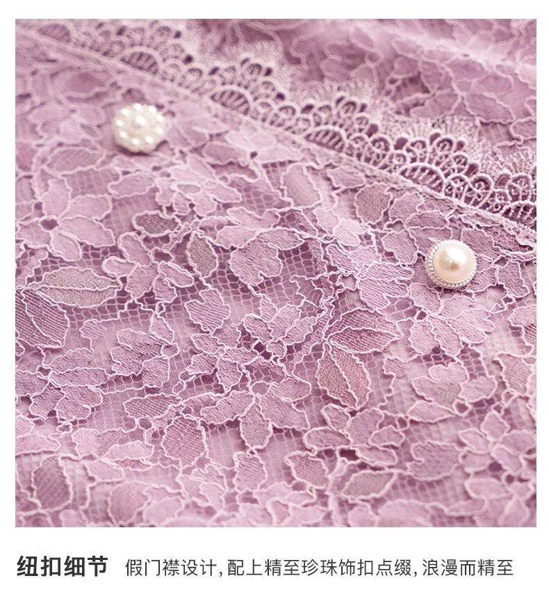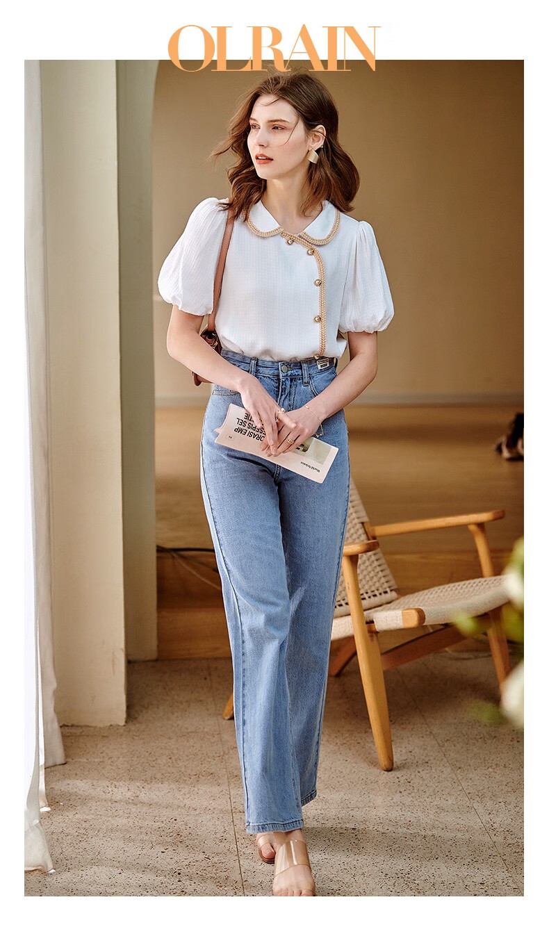 Olrain Autumn and Summer French Lace Shirt V-neck Puff Sleeve Cardigan Western Style Loose Top White S 155/80A