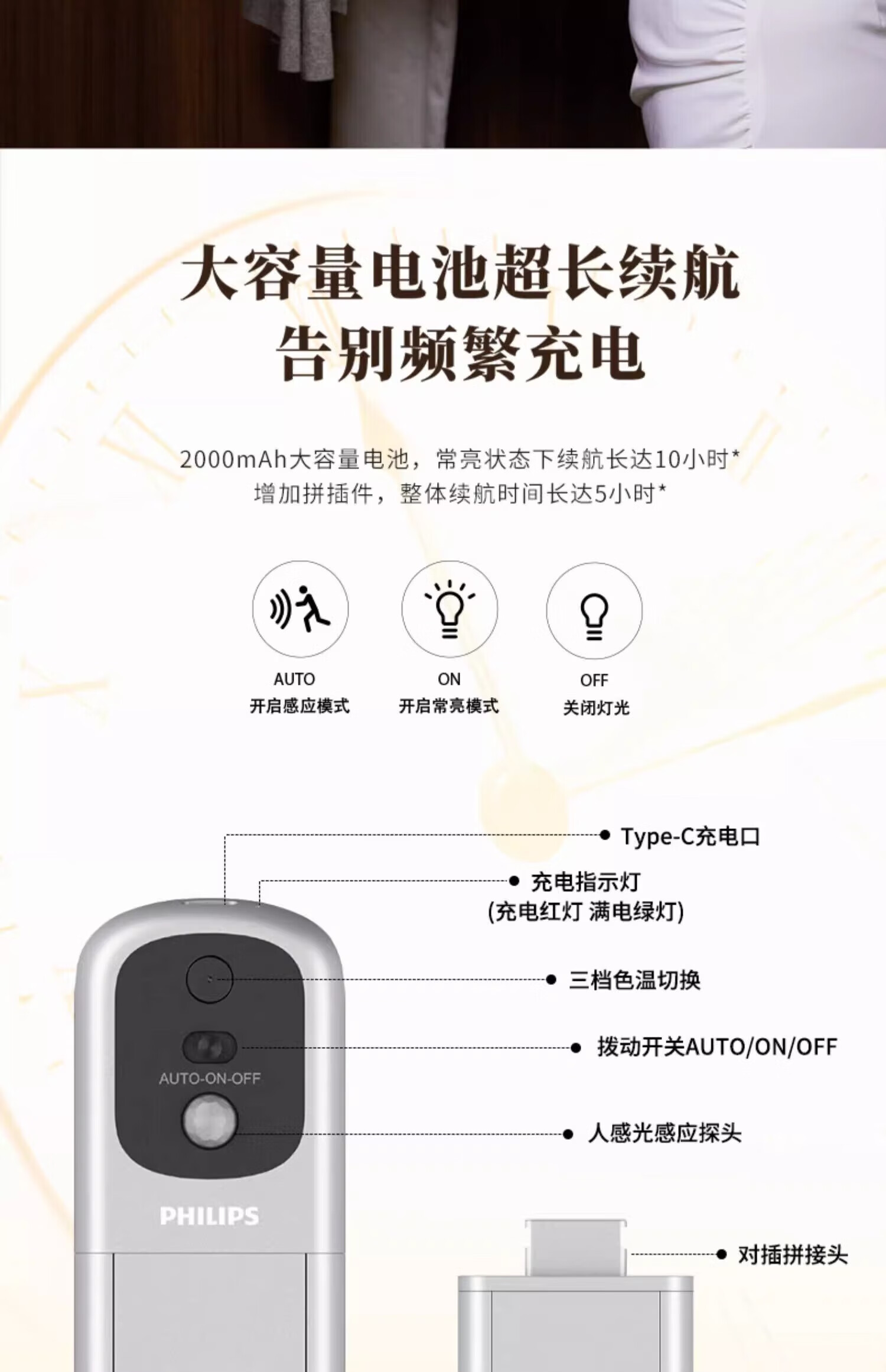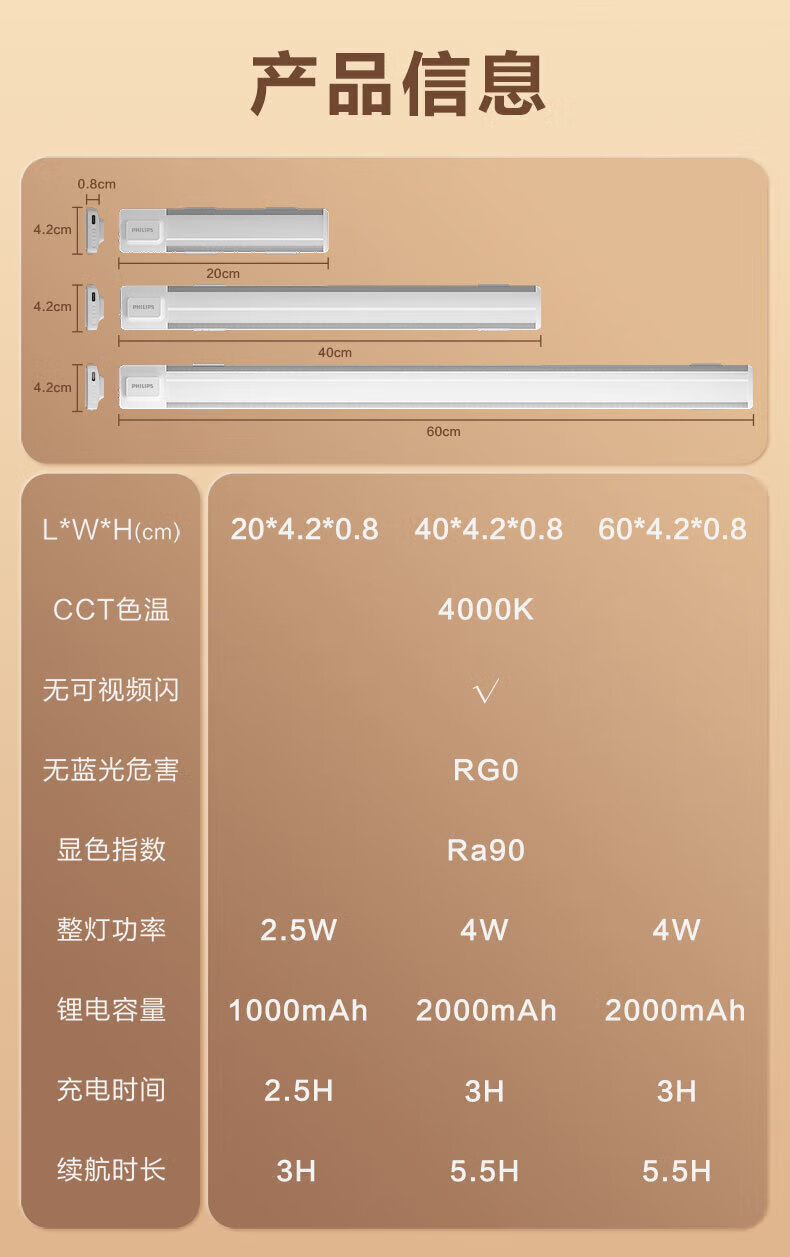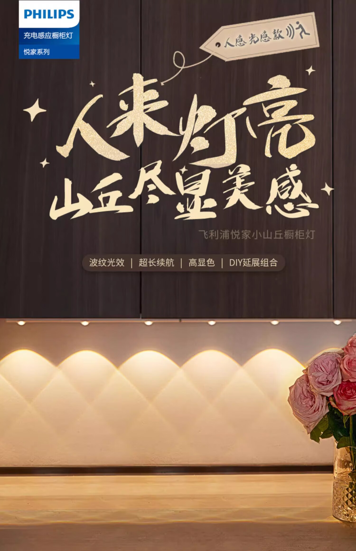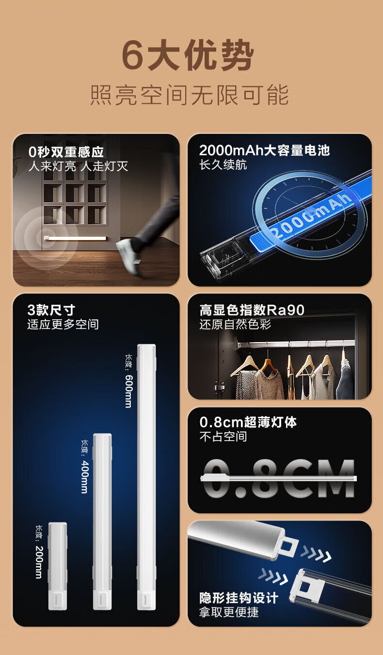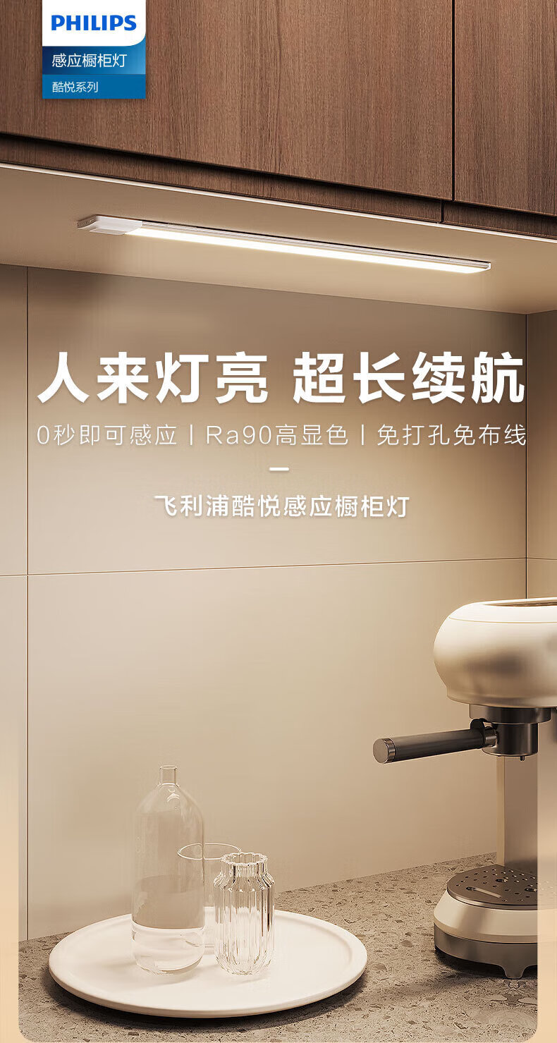 Philips (PHILIPS) sensor light LED wall lamp kitchen drawer display cabinet gesture sensor lights up when you wave your hand - warm white light