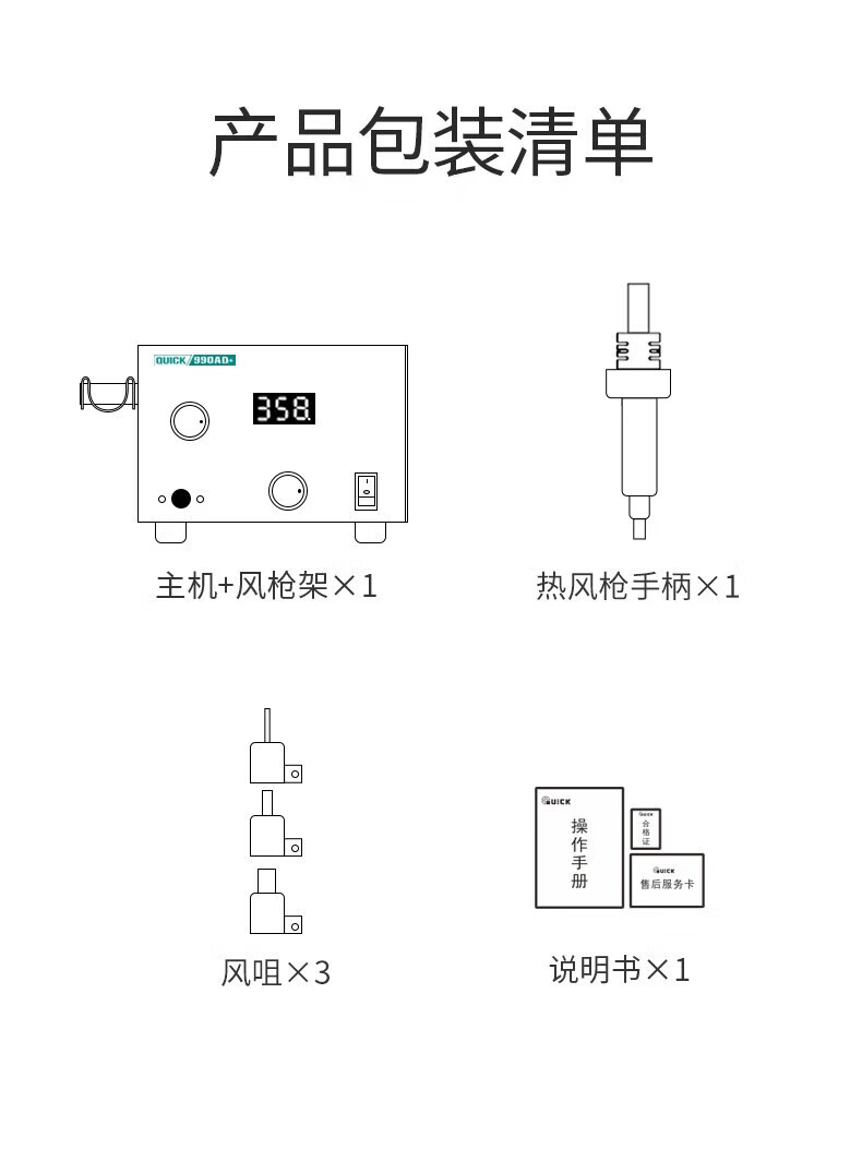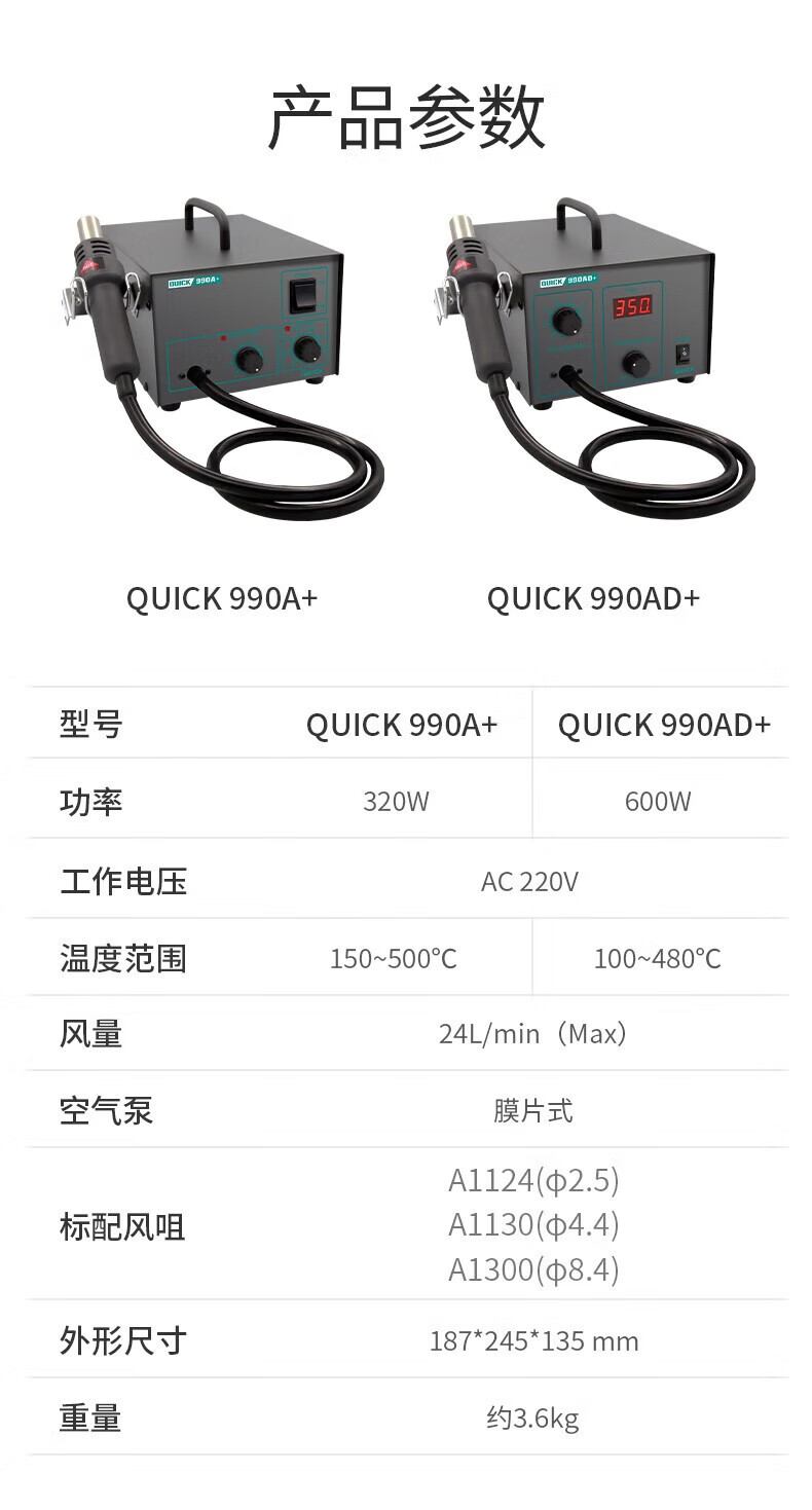 QUICK 990AD+ hot air gun desoldering station industrial grade electronic digital display temperature control lead-free constant temperature 500W