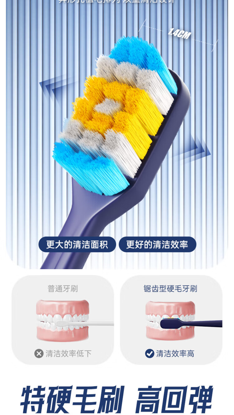 Hao Teeth Premium Extra Hard Bristle Adult Toothbrush Men's Special Toothbrush Removes Cigarette Stains and Tea Stains Protects Strong Oral Cleansing - 2 Pack