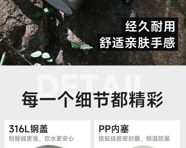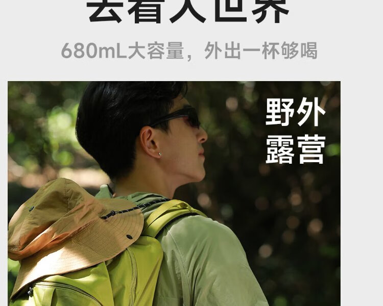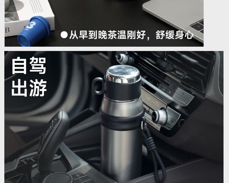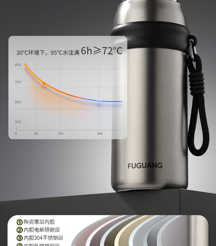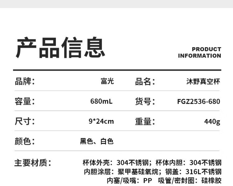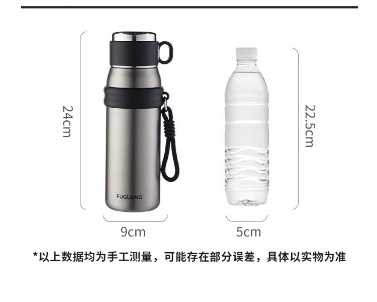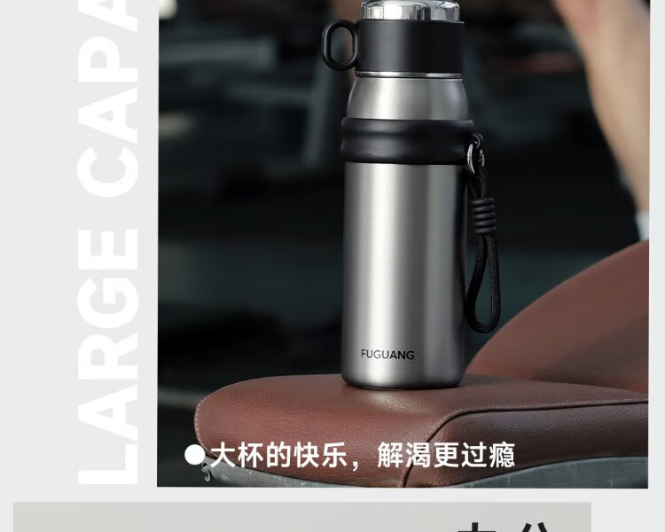 Fuguang thermos water cup men's and women's cup tea cup outdoor cup large capacity business souvenir 680ml black