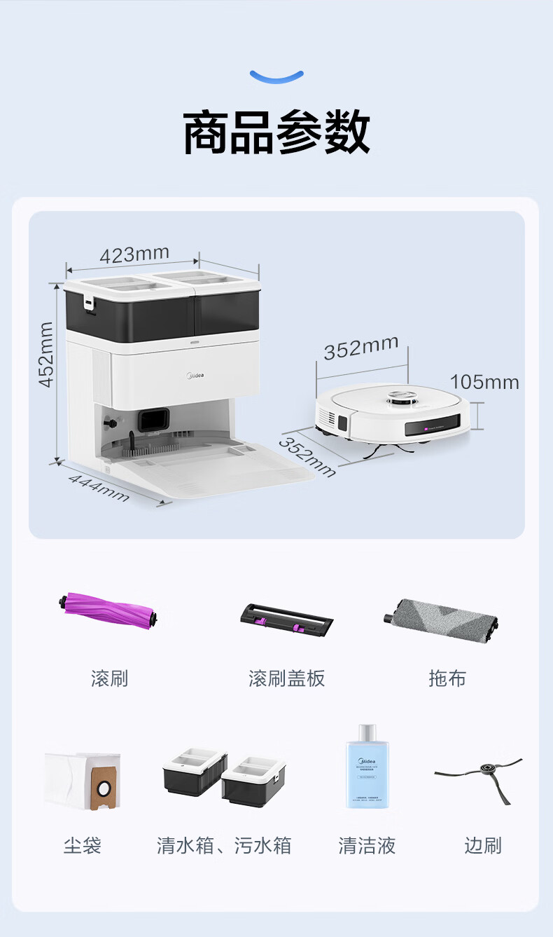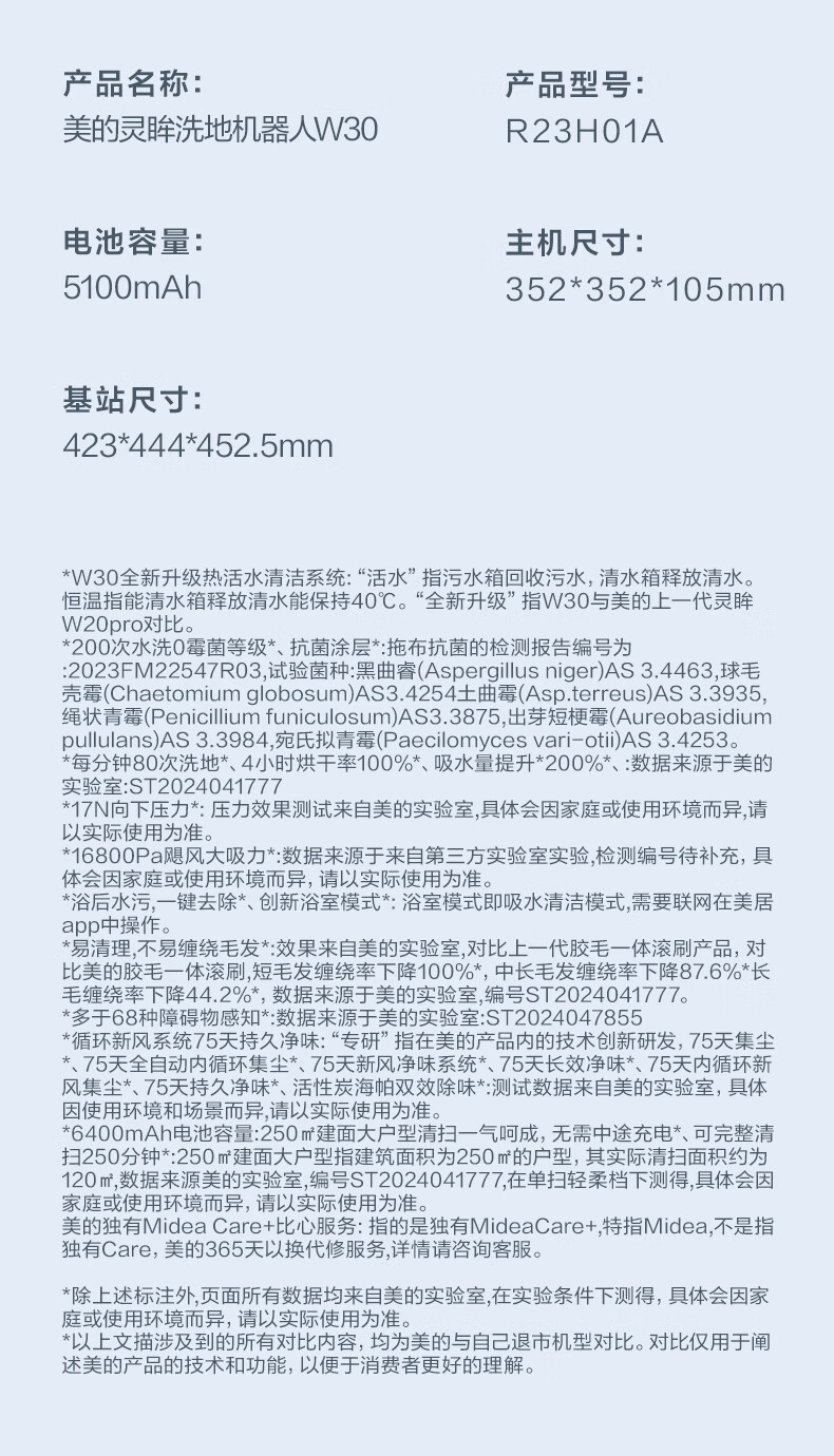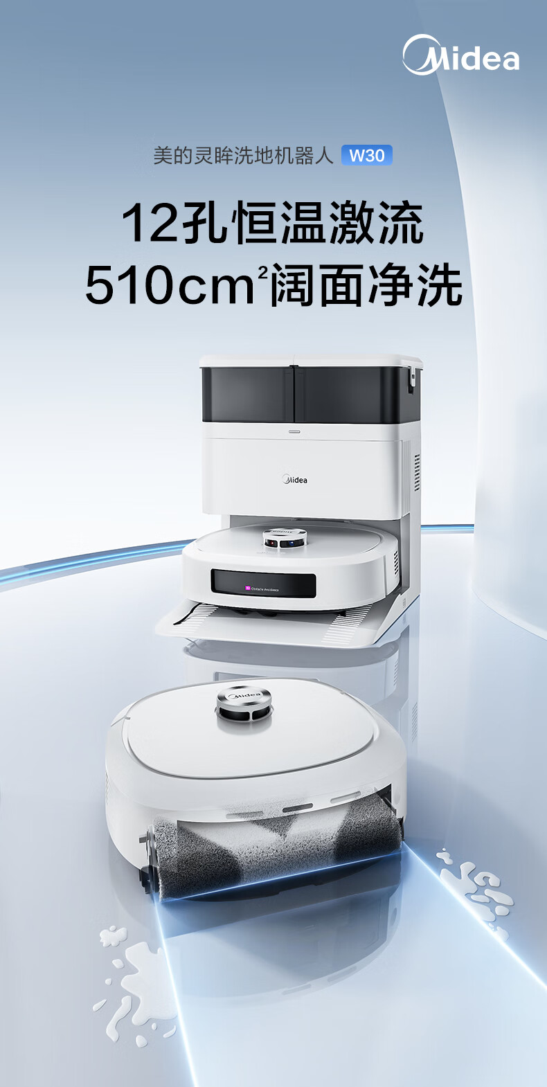 Midea sweeping robot W30 AI constant temperature running water crawler floor washing Christmas gift household water tank version sweeping and mopping all-in-one automatic cleaning fully automatic washing, drying and mopping machine