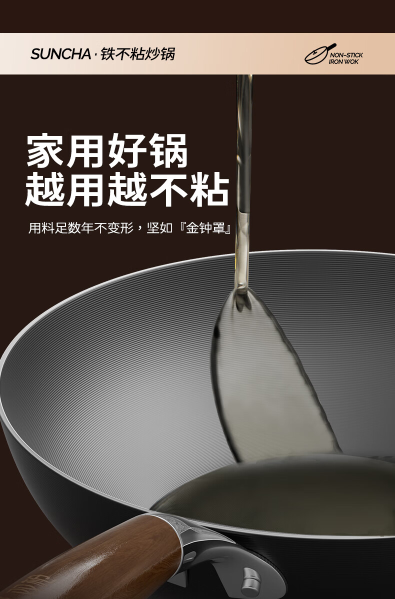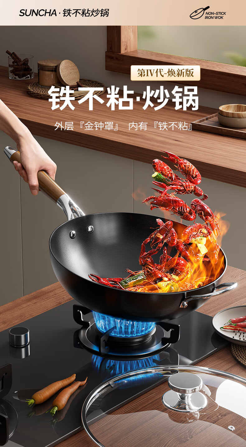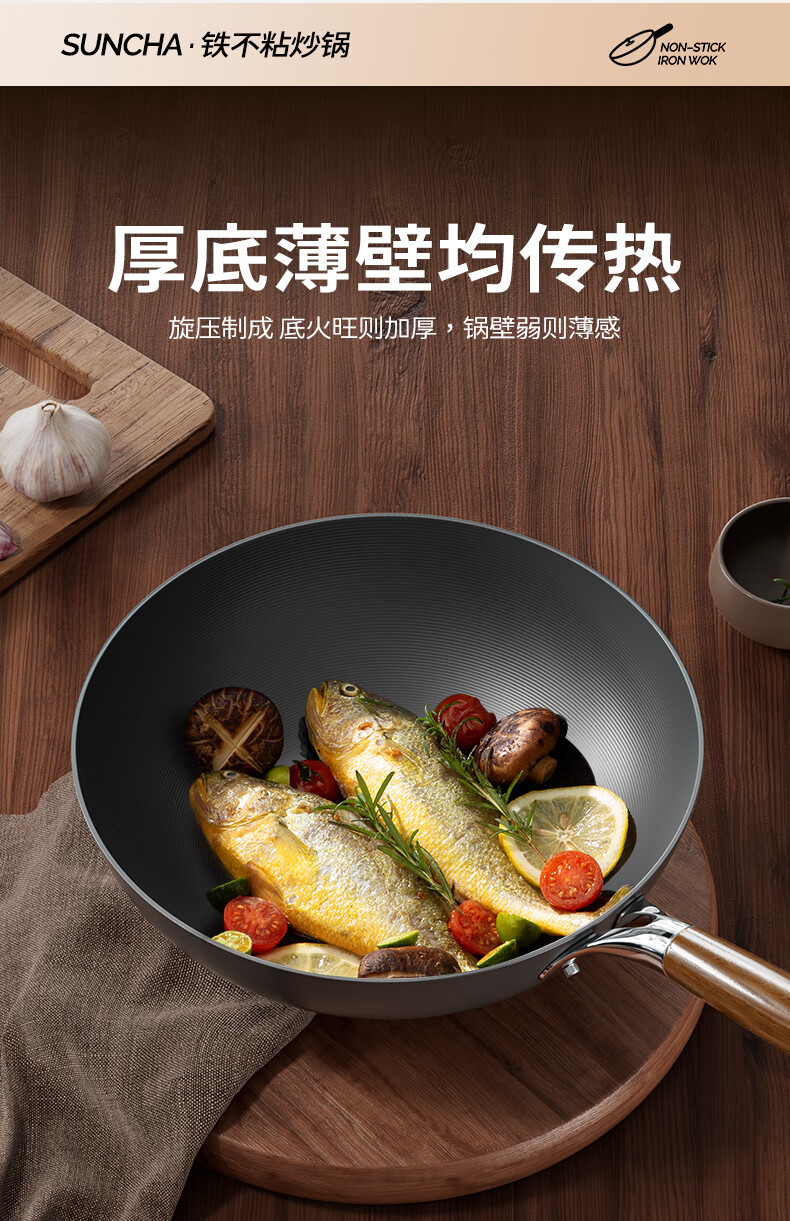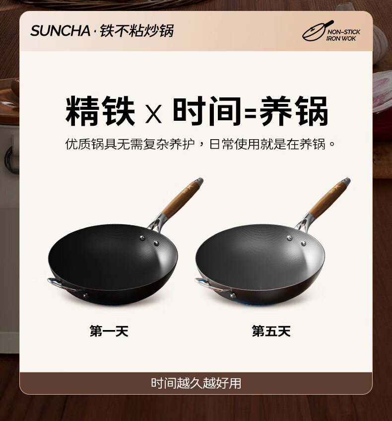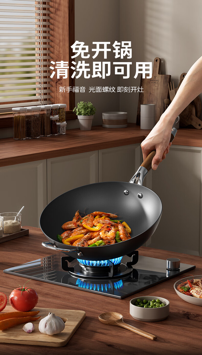 Double gun (Suncha) iron wok imported from Australia, fine iron, uncoated, non-stick, cooking, gas induction, universal 32cm, ready to cook