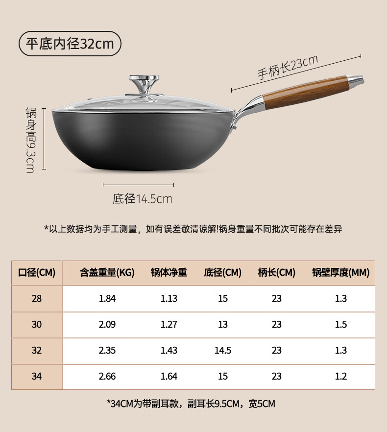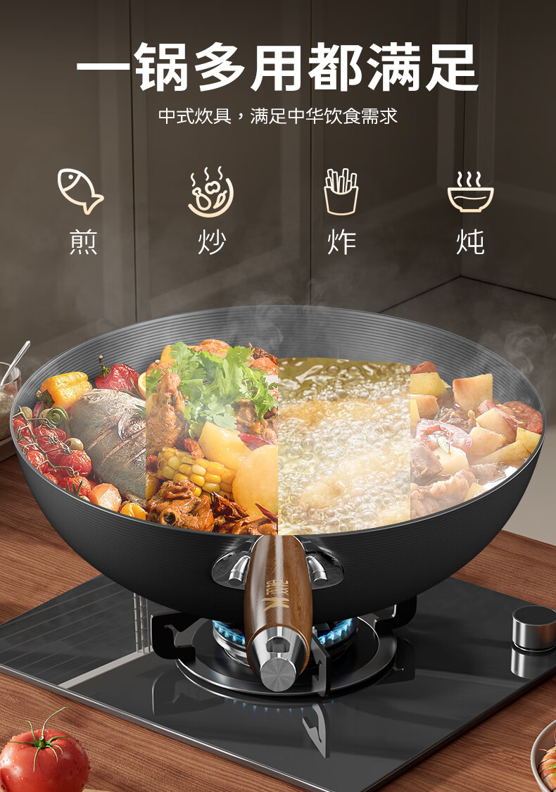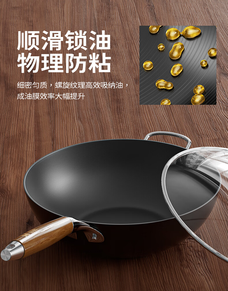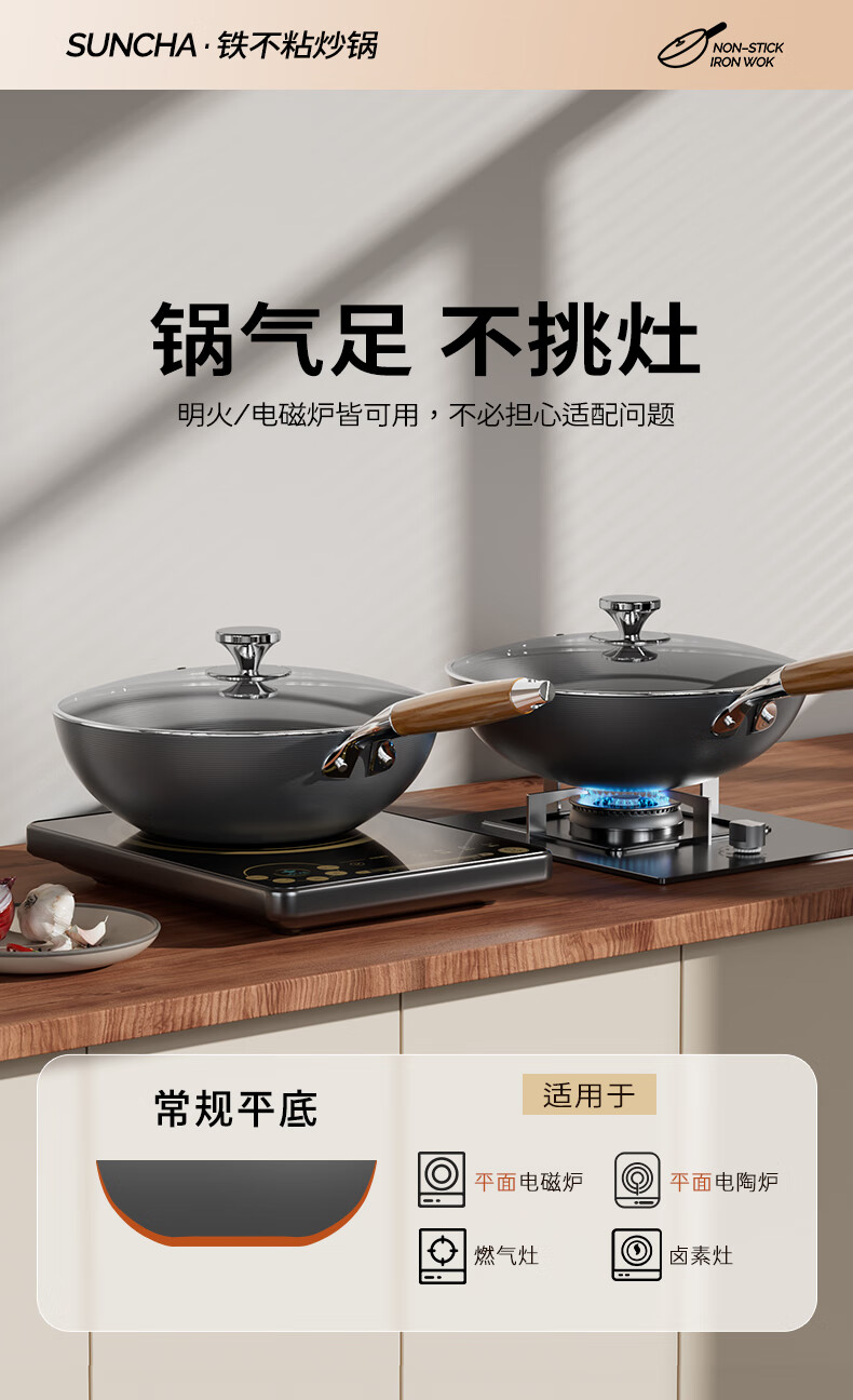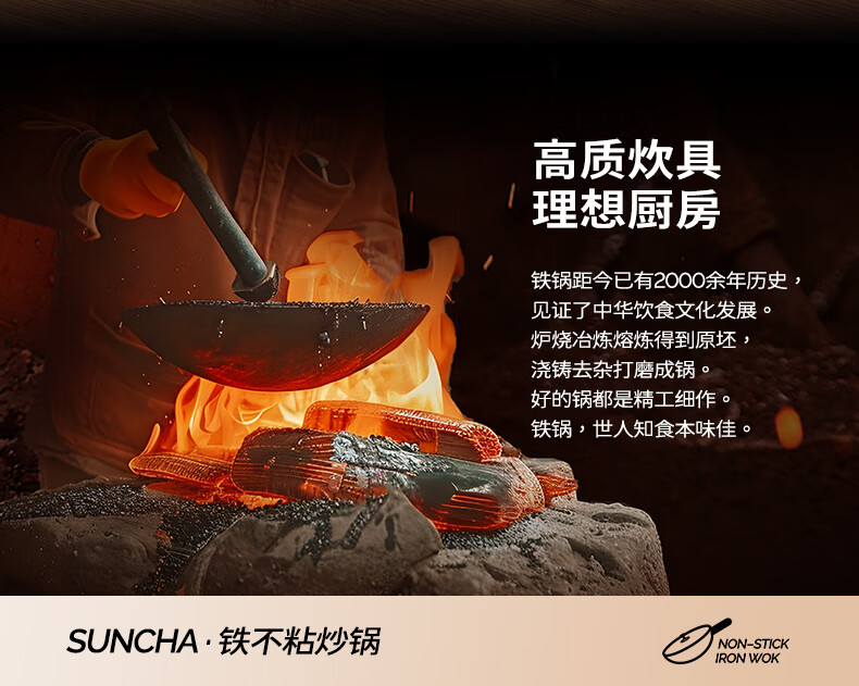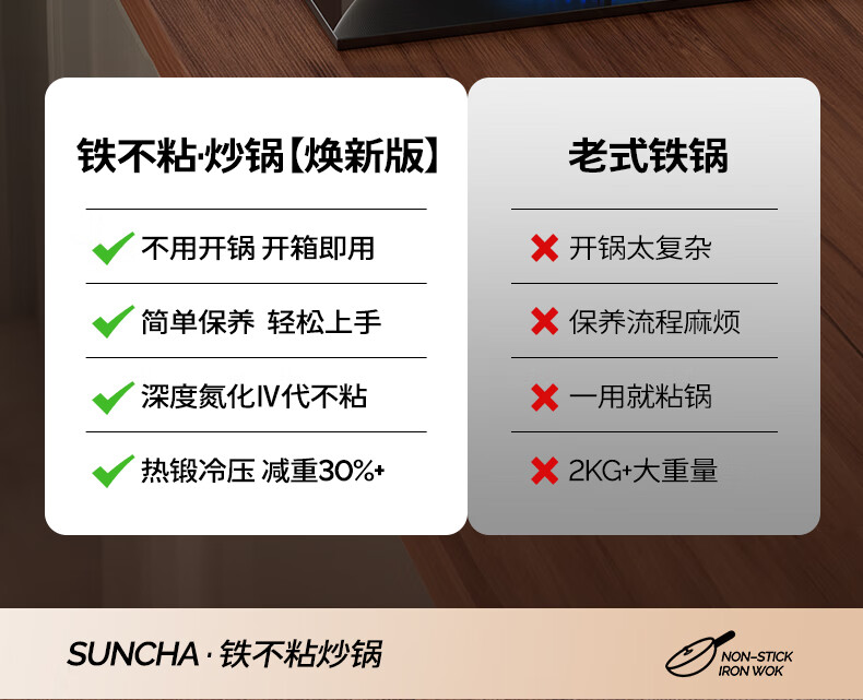 Double gun (Suncha) iron wok imported from Australia, fine iron, uncoated, non-stick, cooking, gas induction, universal 32cm, ready to cook