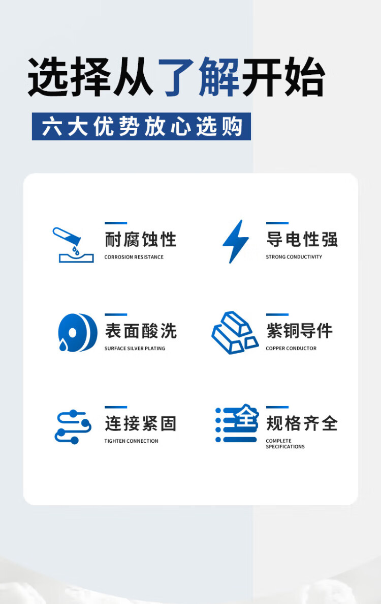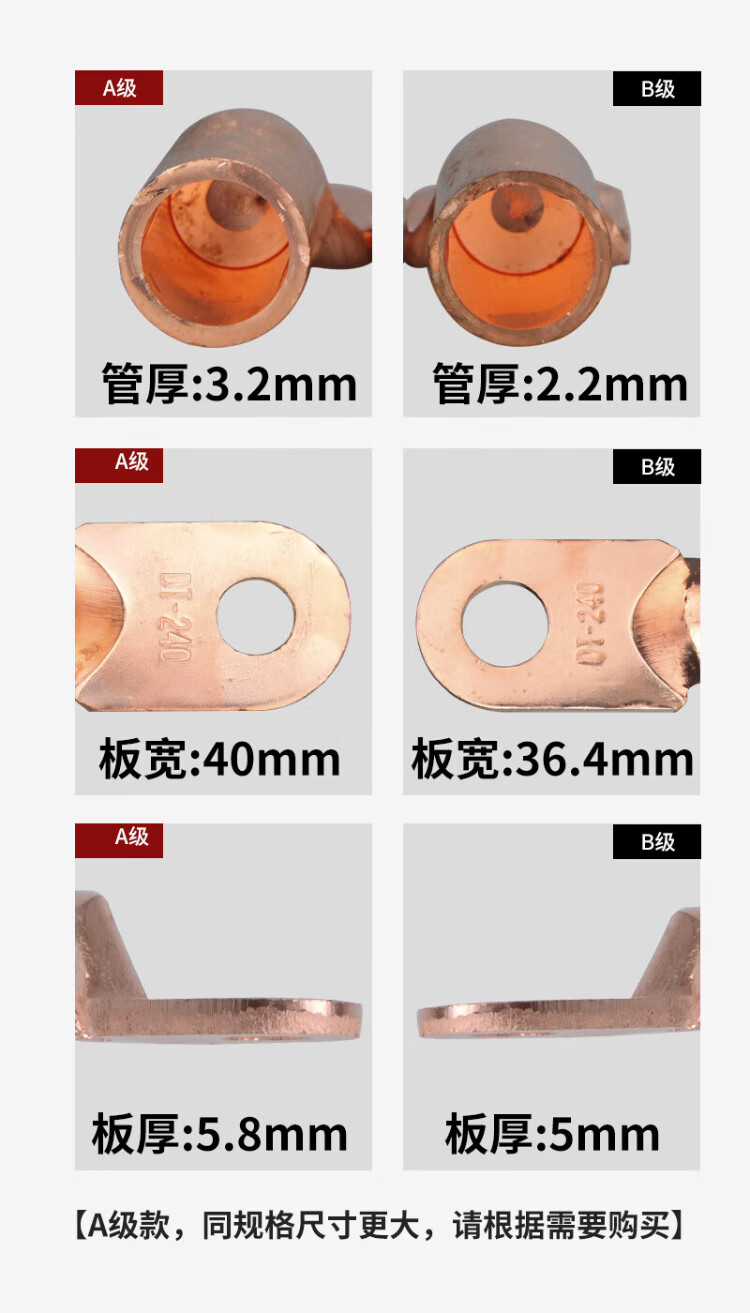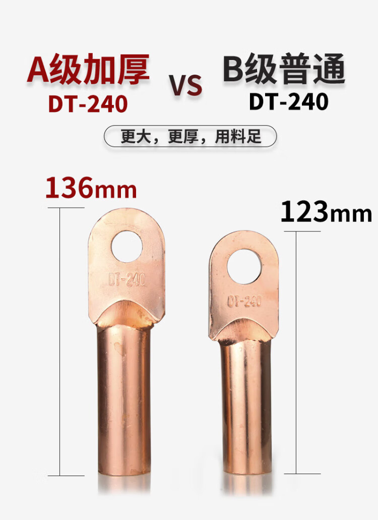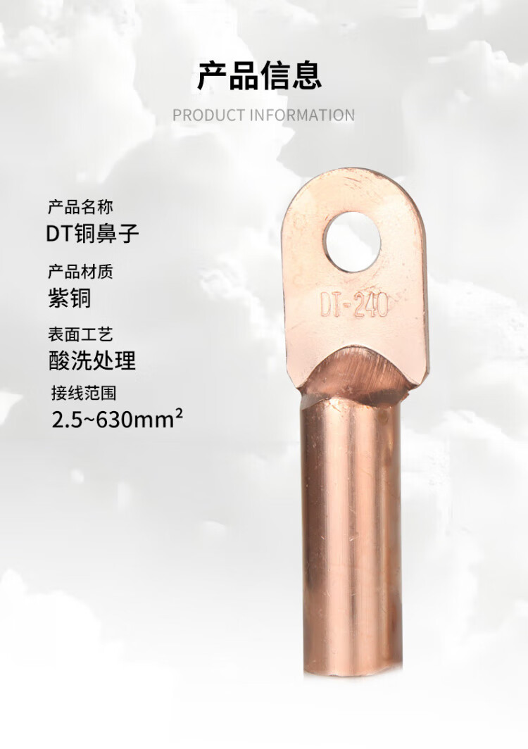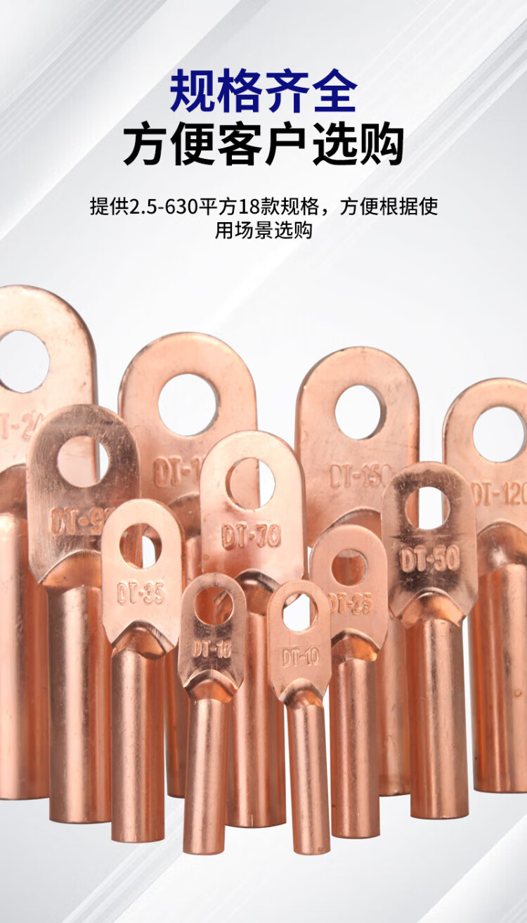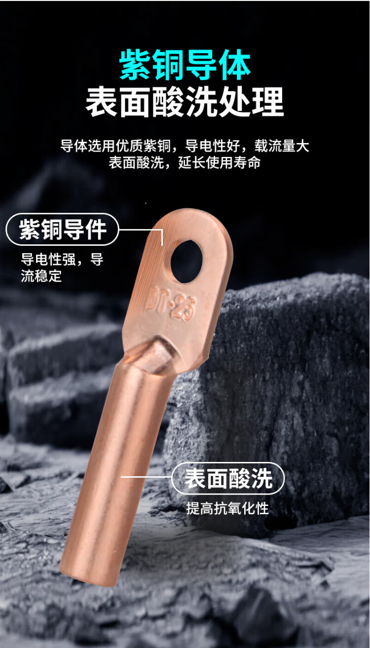 OLKWL (Wali) DT copper nose Class A thickened terminal wire copper wire nose cable head copper natural color connector 50 square copper wire ear pickling DT-50 (2 pieces)