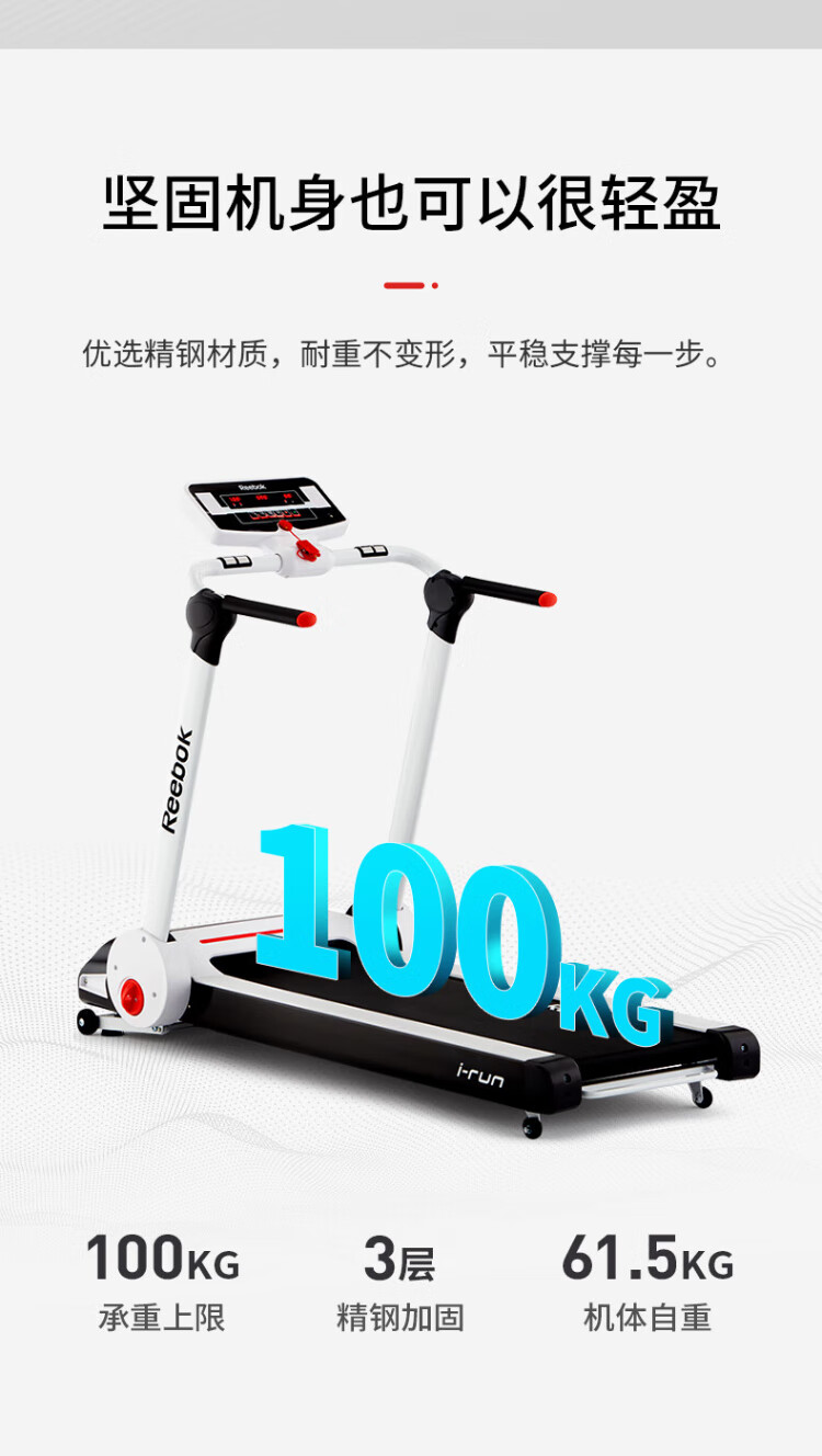 Reebok Irun Laufband, kleines Laufgerät für den Heimgebrauch, zusammenklappbares Heiminstallationsfreies Pistensport- und Fitnessgerät, 90 % neu/vollständig faltbar/platzsparend/Echtzeit-Herzfrequenz