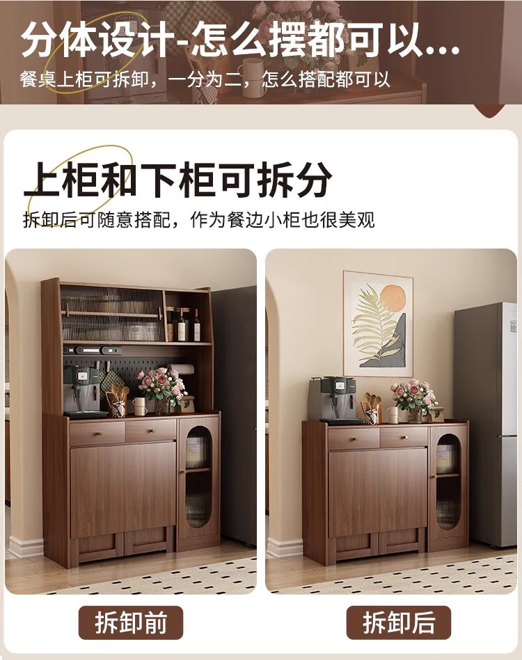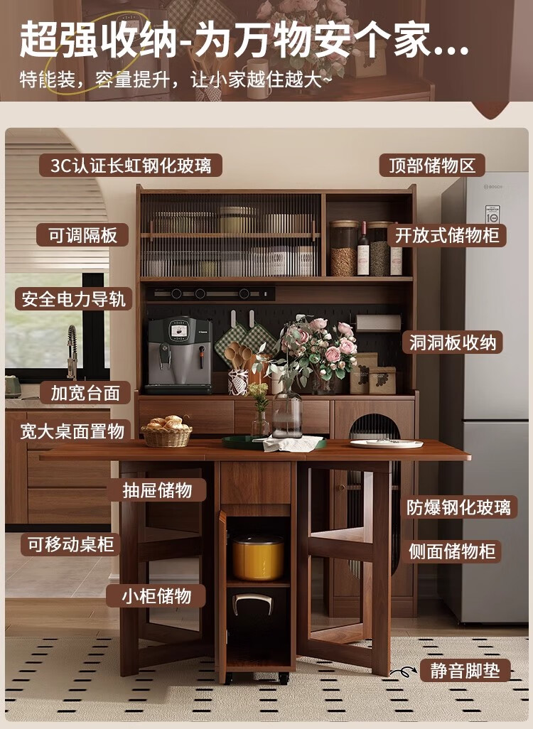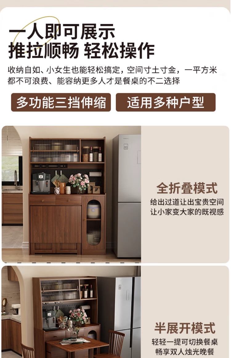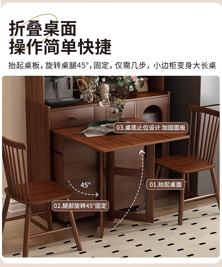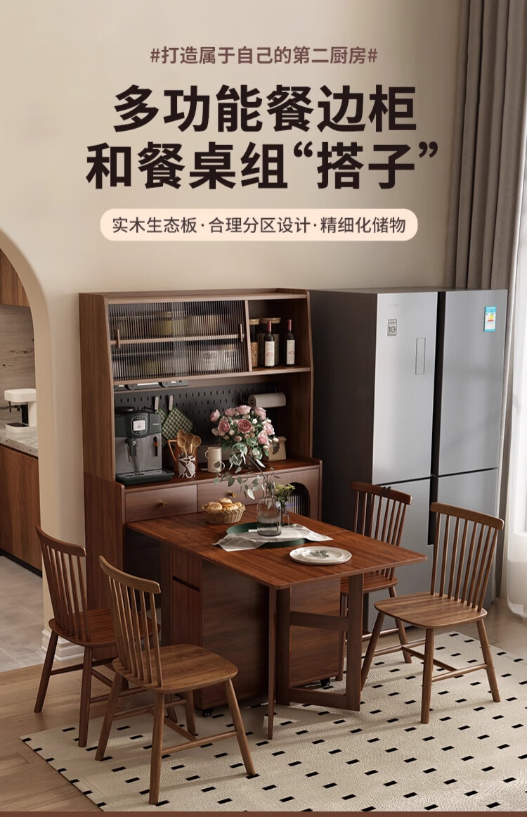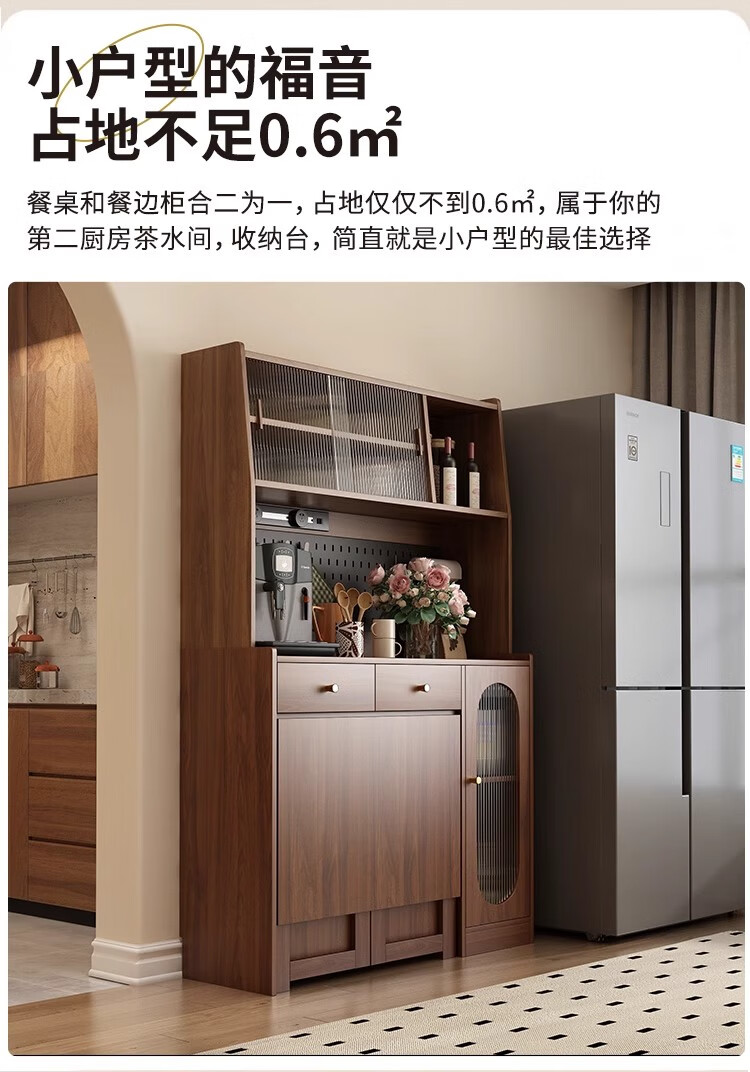 Qiuke solid wood sideboard dining table integrated wall-mounted antique style small apartment storage cabinet 2025 new living room dining table wine cabinet