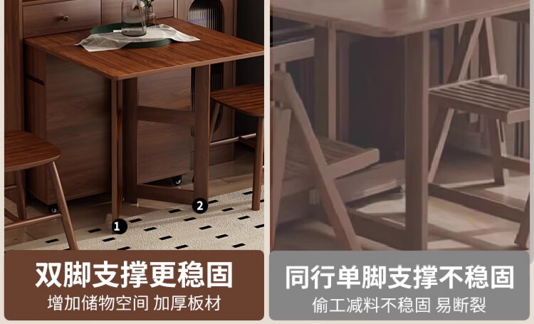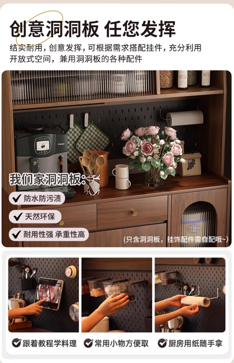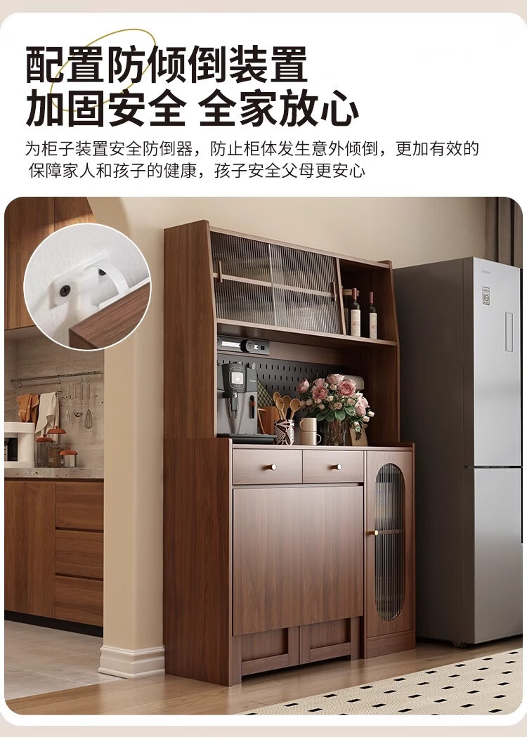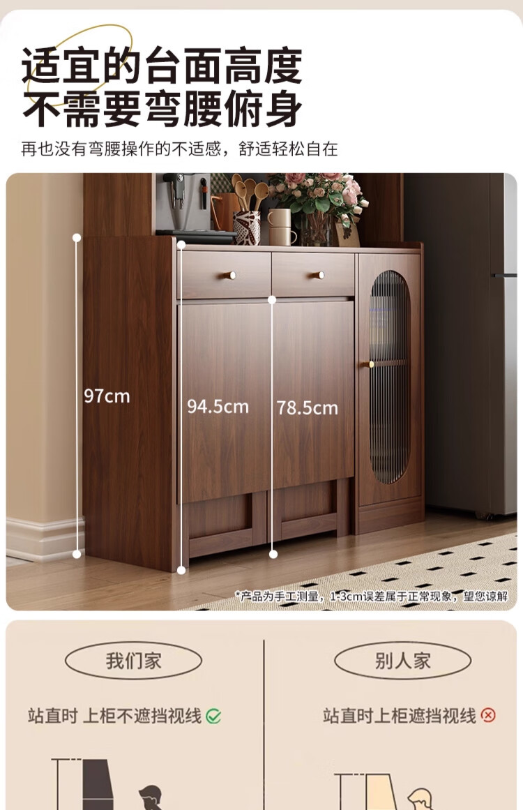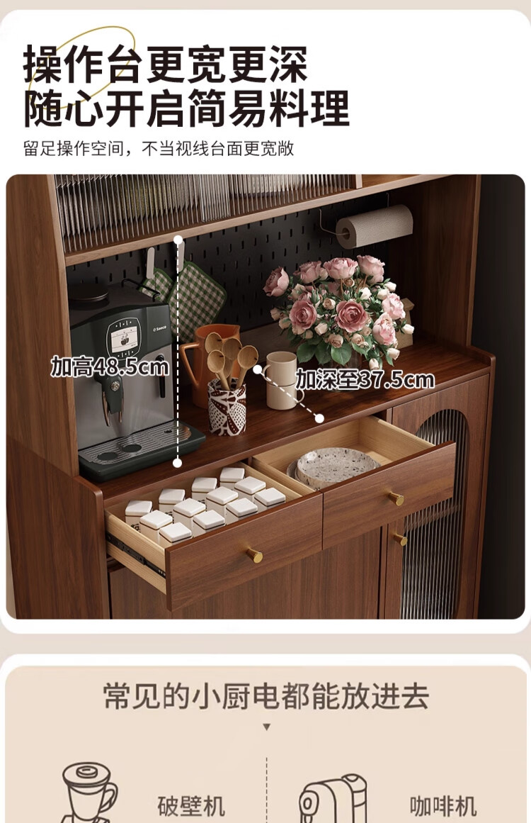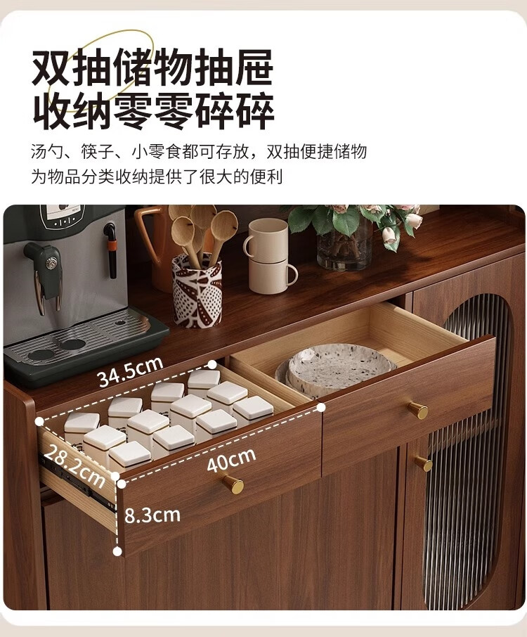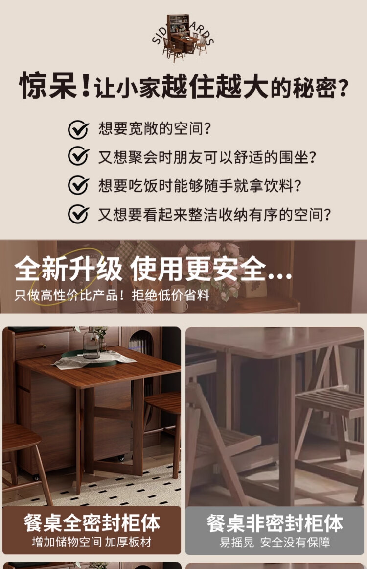 Qiuke solid wood sideboard dining table integrated wall-mounted antique style small apartment storage cabinet 2025 new living room dining table wine cabinet