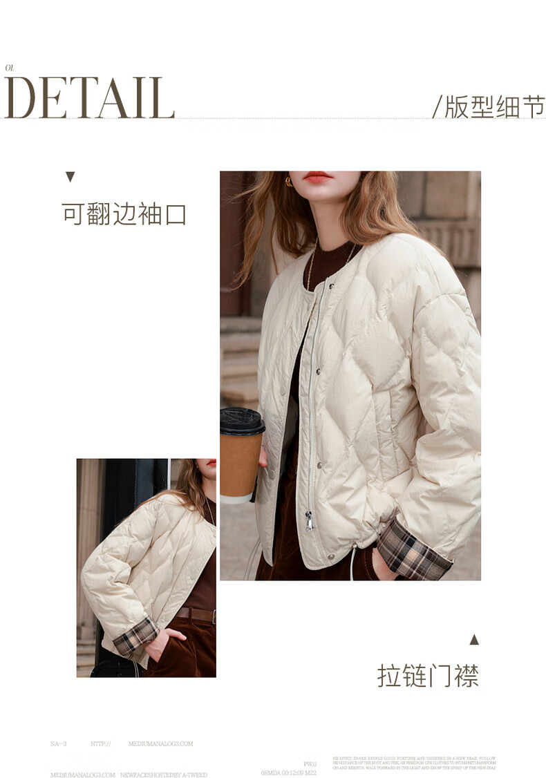 Three-color waterproof and easy-care 2025 winter new 90 white duck down jacket light and loose short style M