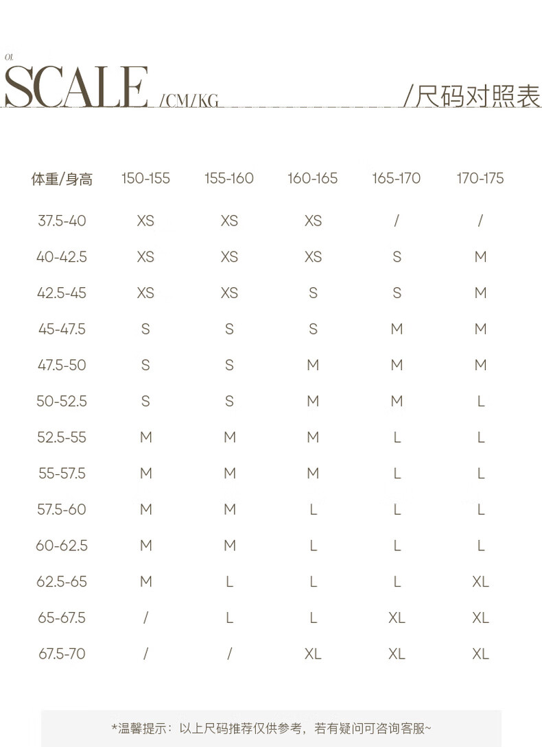 China (cm) 160-165/84-86 165-170 / 88-90 167-172 / 92-96 168-173 / 98-102 170-176 / 106-110