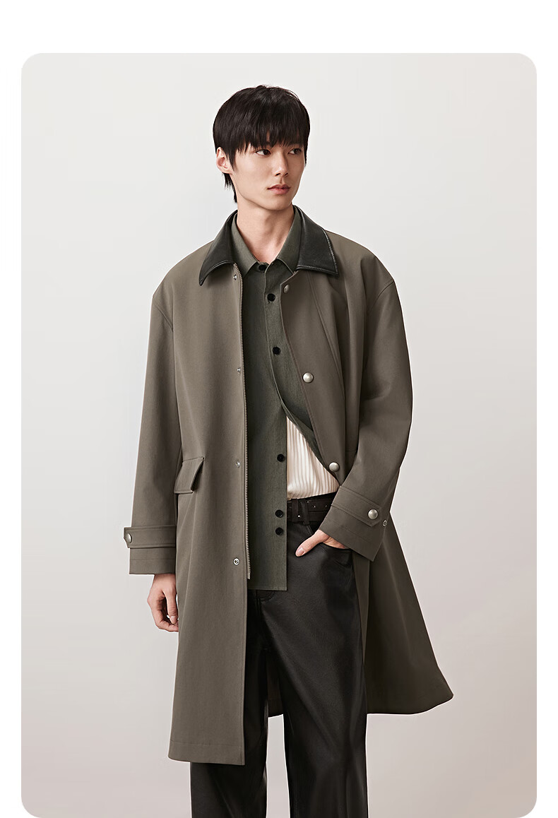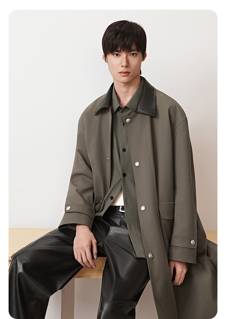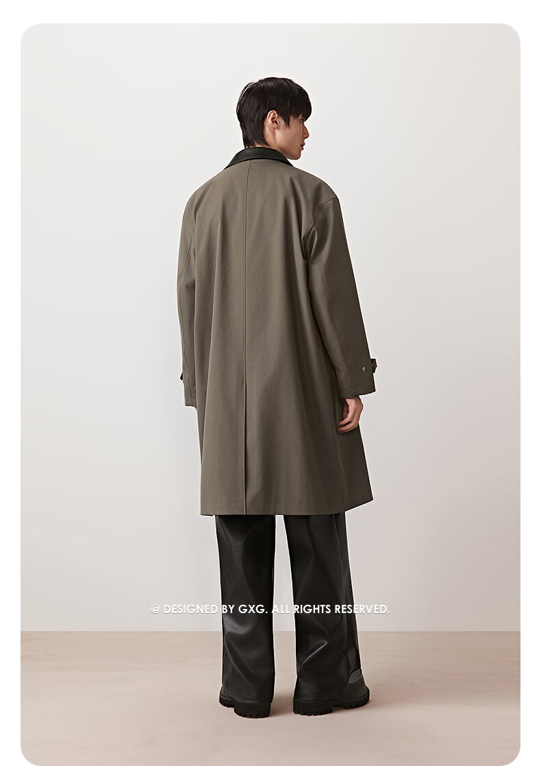 GXG men's crisp custom-dyed worsted classic lapel silhouette long windbreaker brown 185/XXL