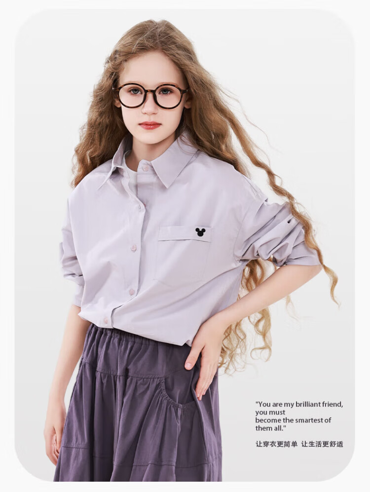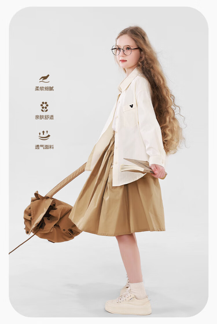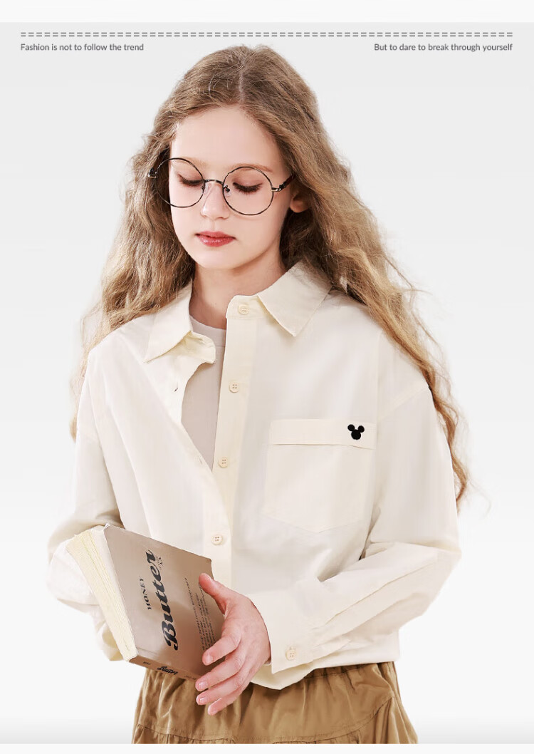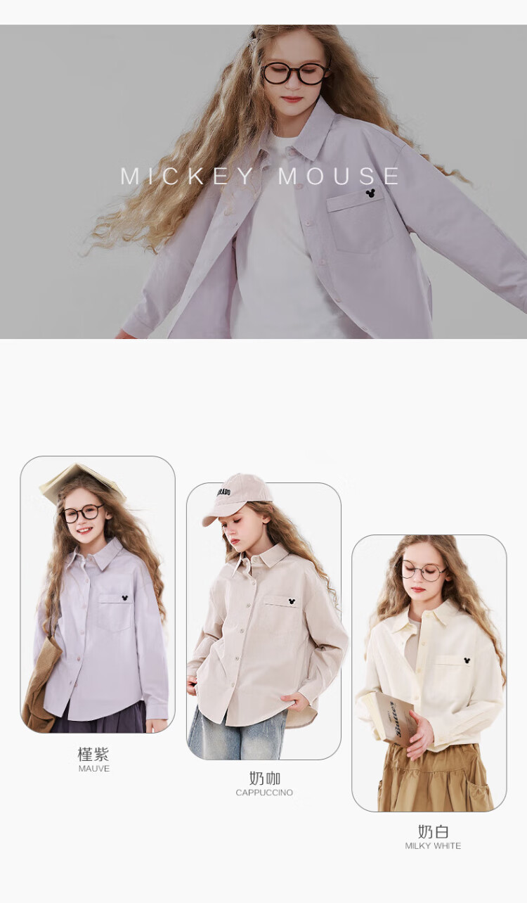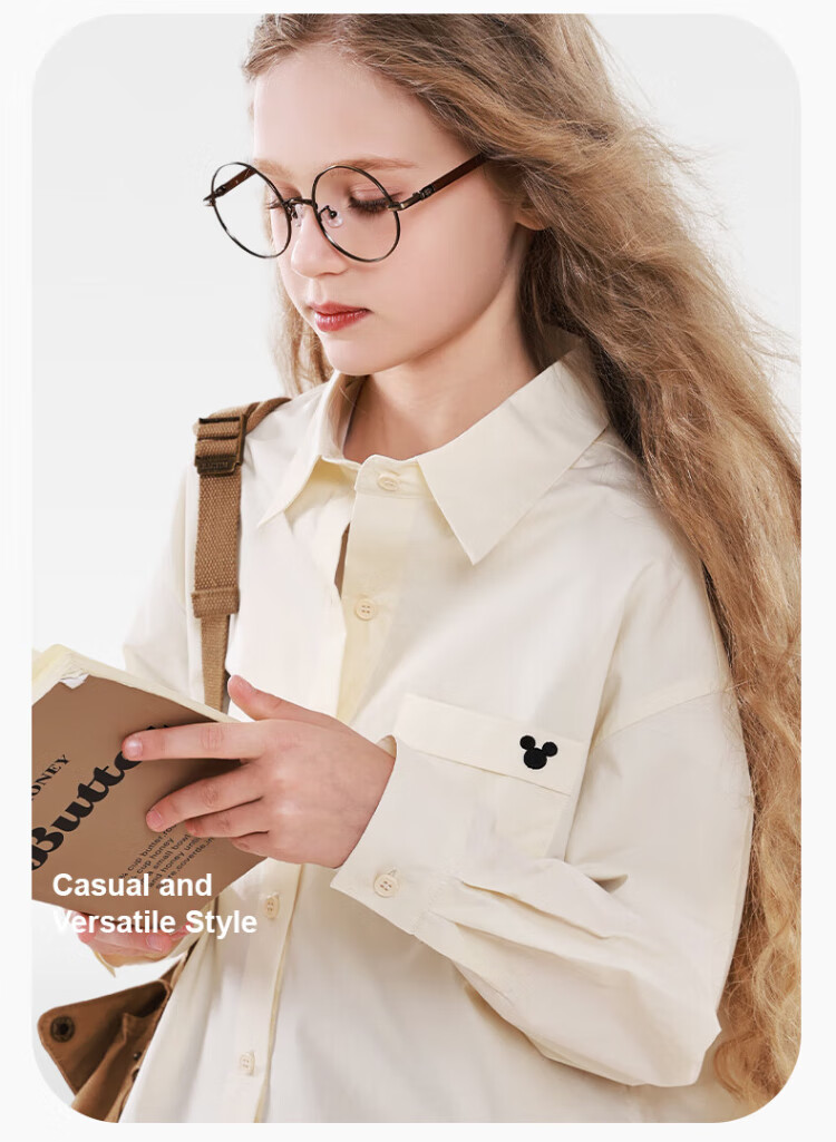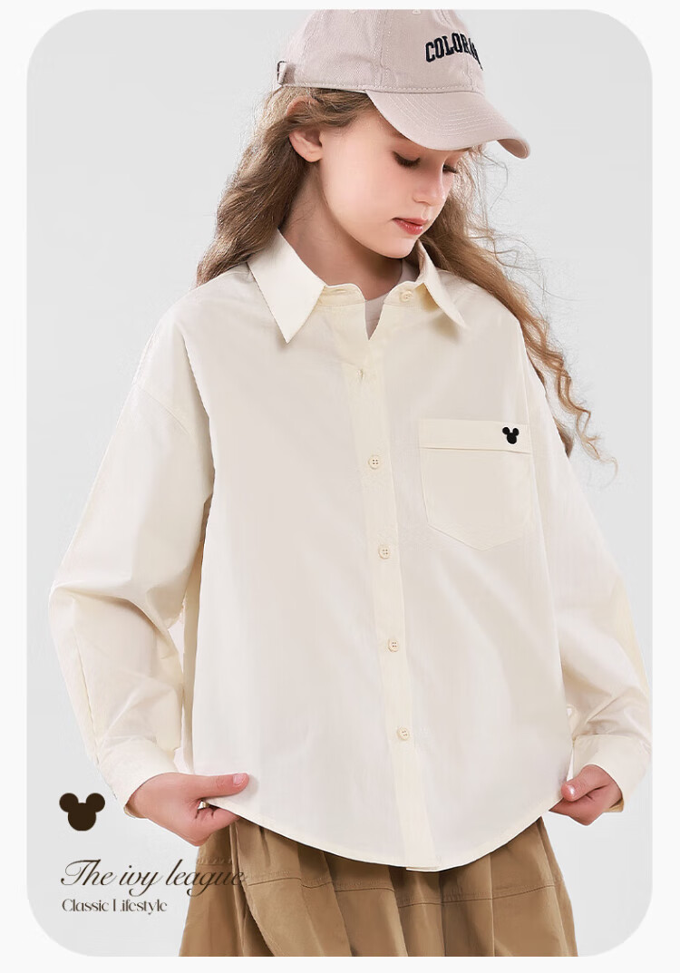 Disney Girls' Shirt Spring and Autumn Children's Cotton Long-Sleeved Shirt Medium and Large Children's Style Top D1ES001 Milk White 160