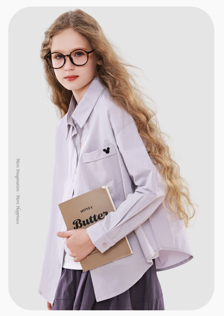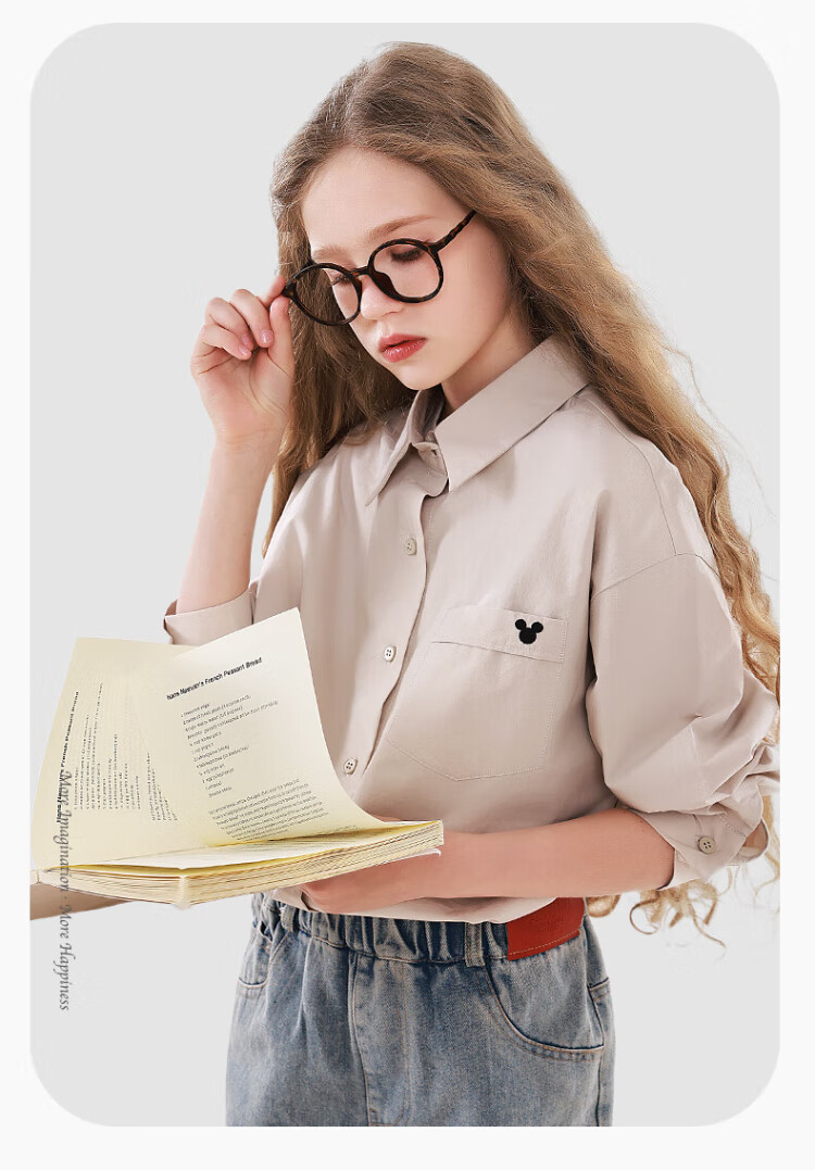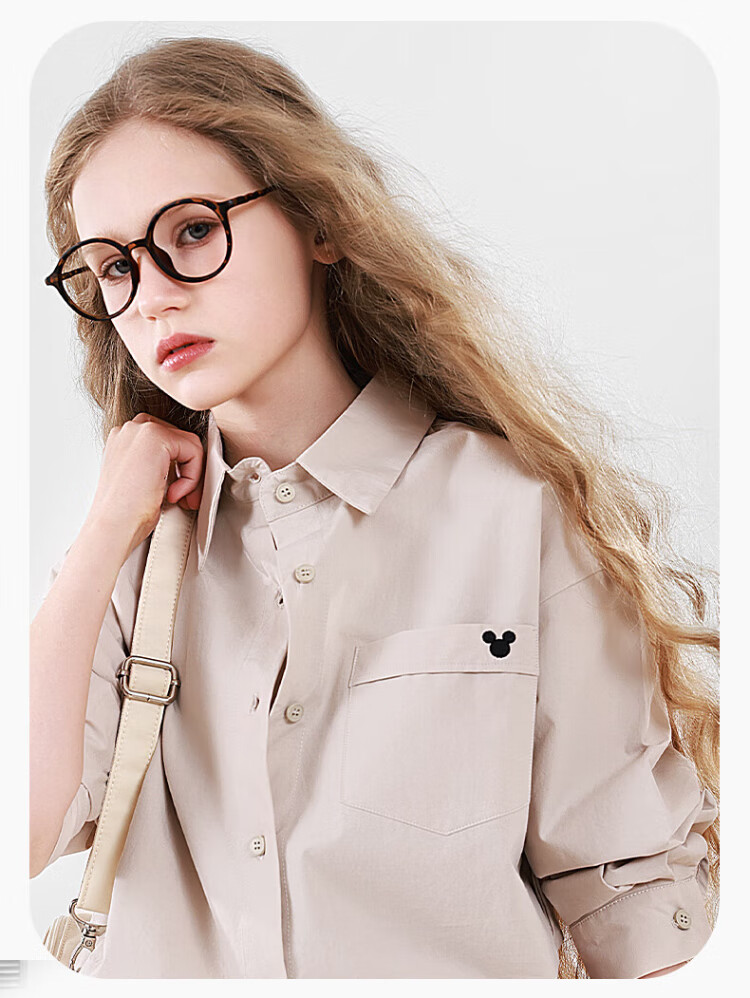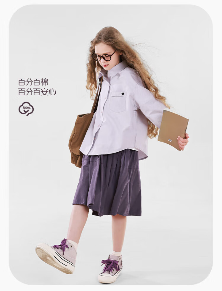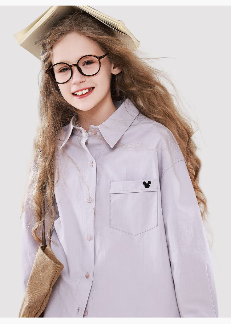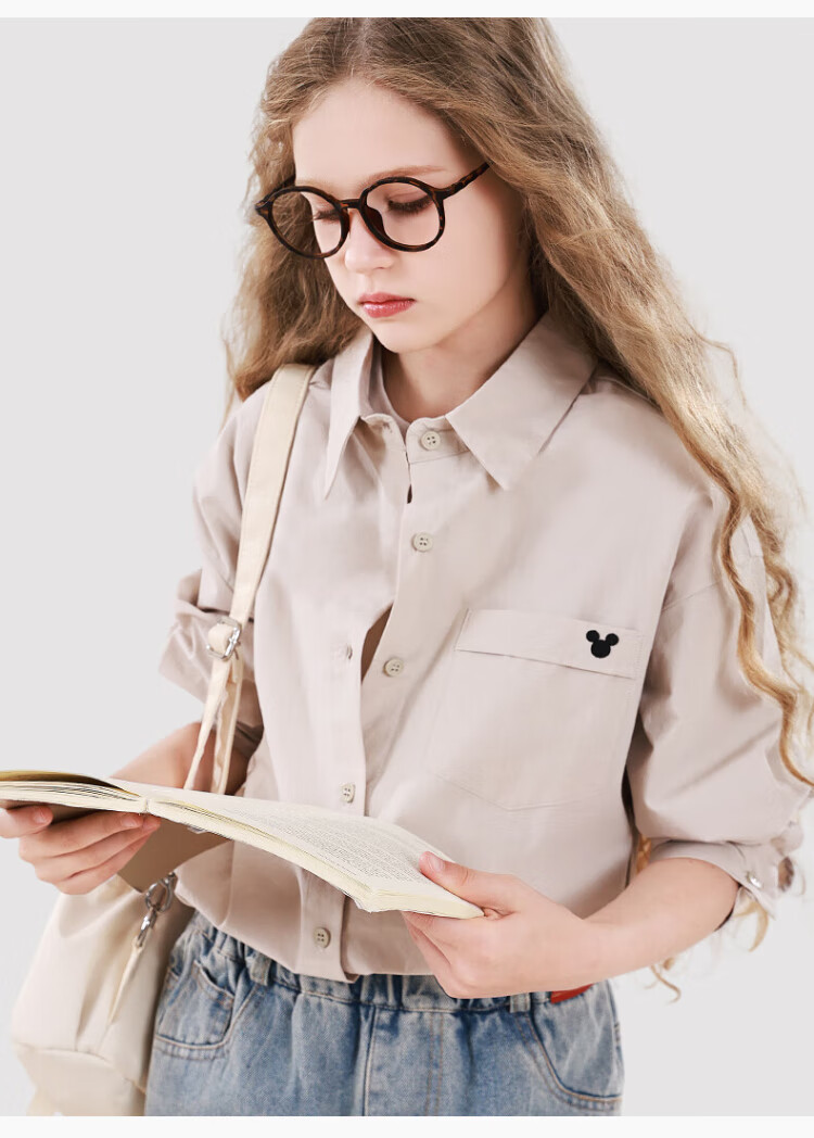 Disney Girls' Shirt Spring and Autumn Children's Cotton Long-Sleeved Shirt Medium and Large Children's Style Top D1ES001 Milk White 160