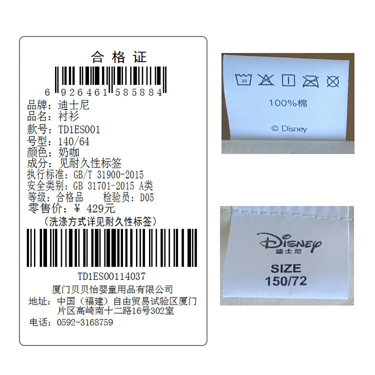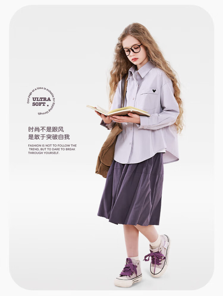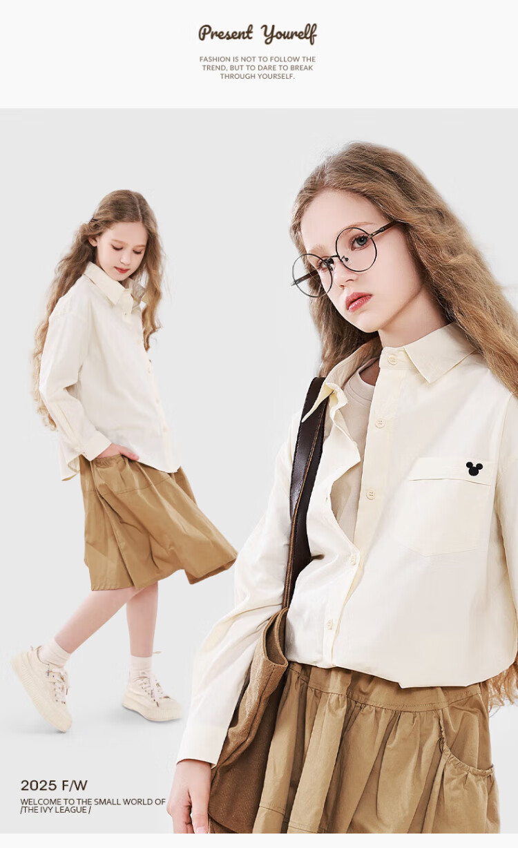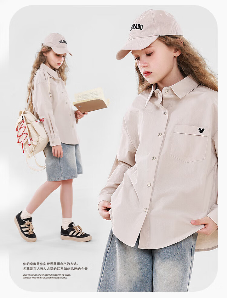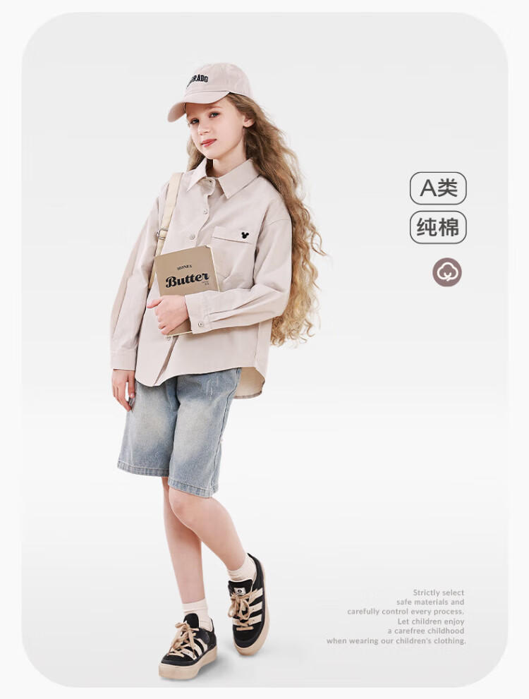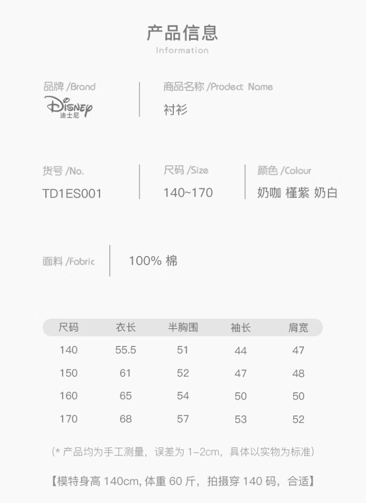 Disney Girls' Shirt Spring and Autumn Children's Cotton Long-Sleeved Shirt Medium and Large Children's Style Top D1ES001 Milk White 160