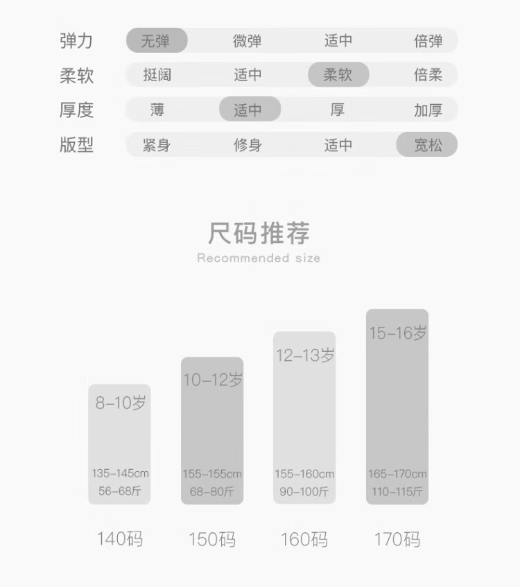China (cm) 160-165/84-86 165-170 / 88-90 167-172 / 92-96 168-173 / 98-102 170-176 / 106-110