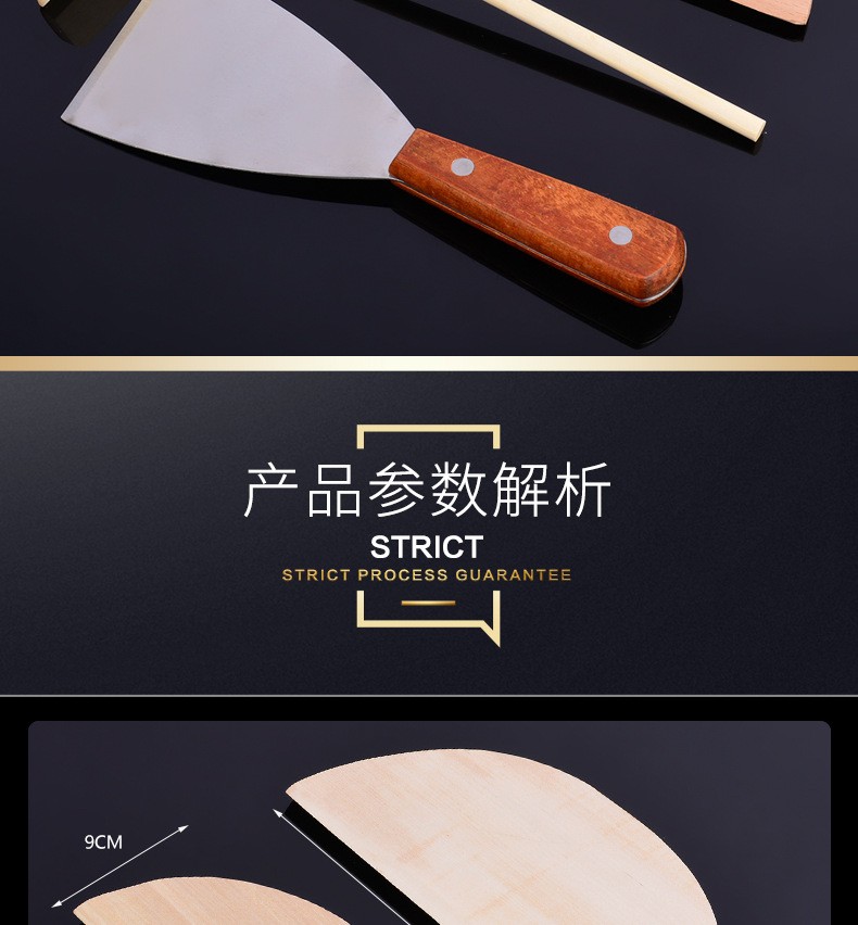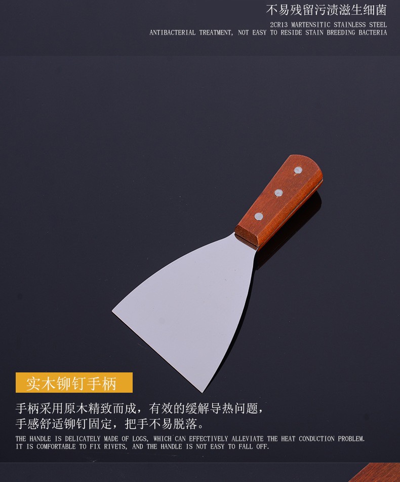 Xundao pancake tool commercial rake scraper pancake fruit rake stall egg pancake scraper stainless steel oblique shovel beech semicircular scraper 21cm