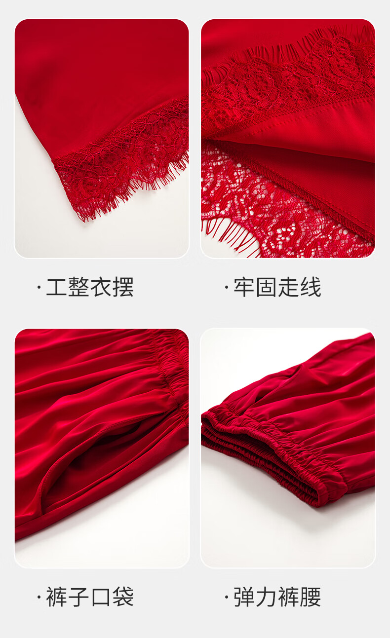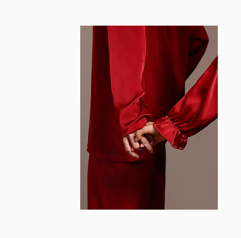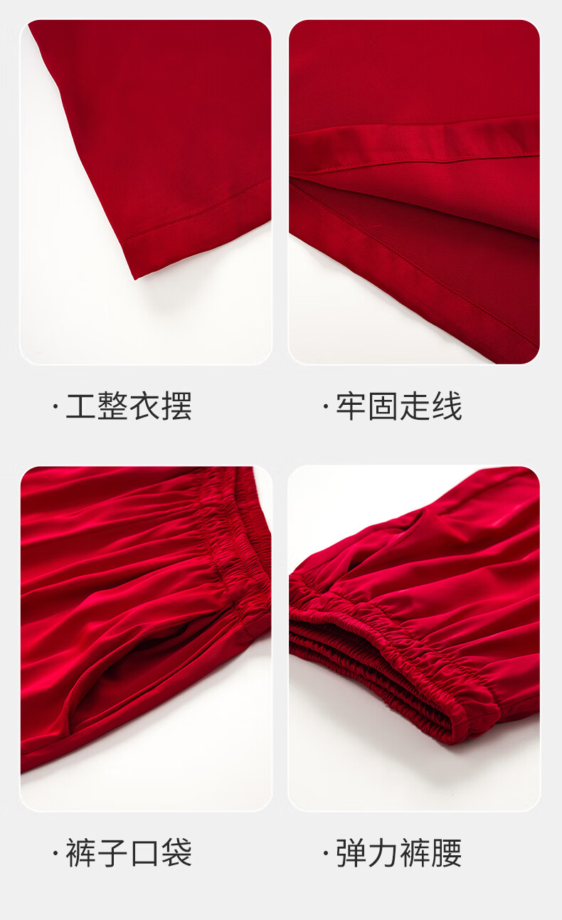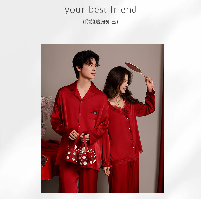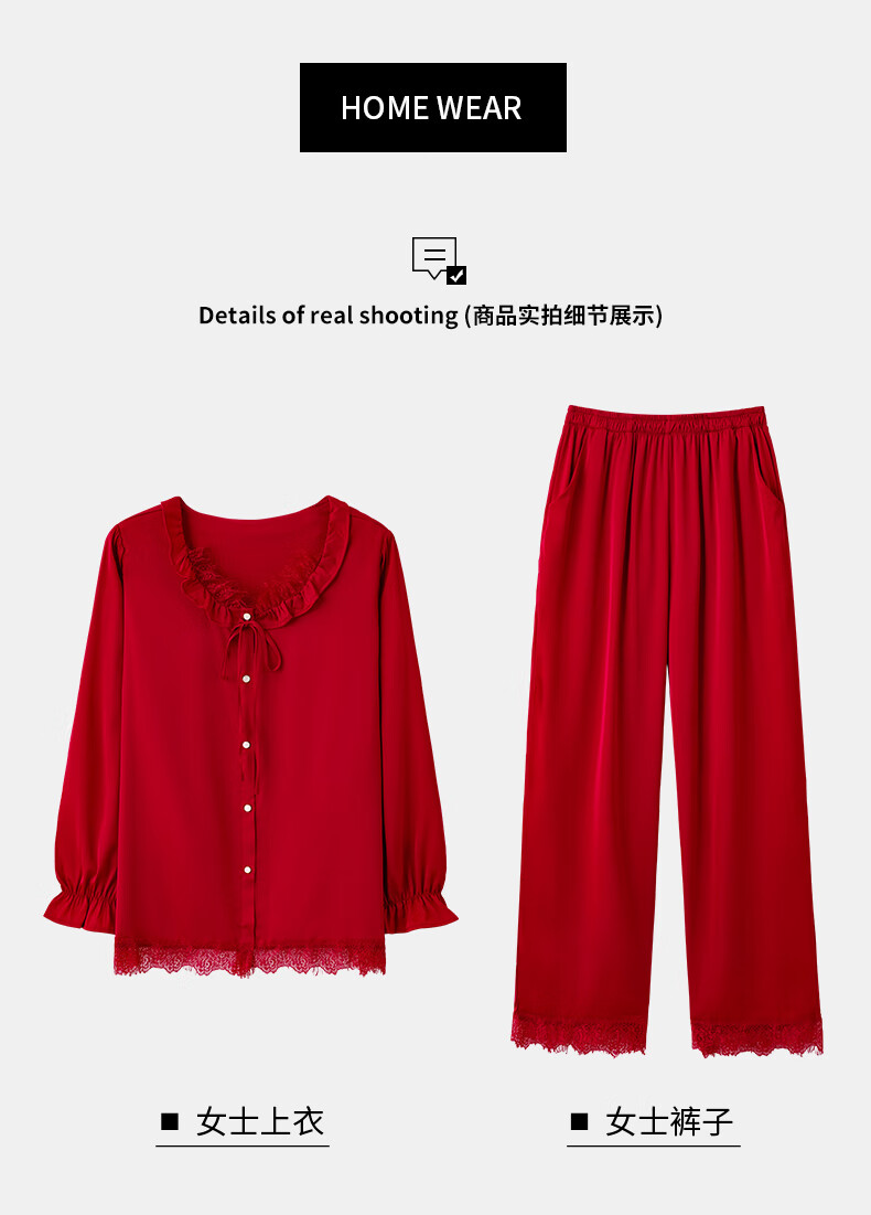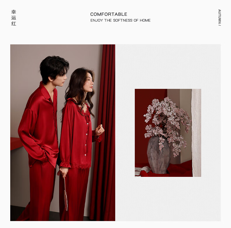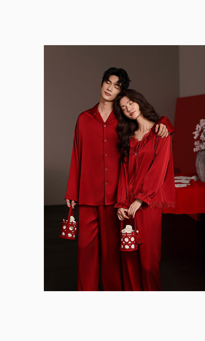 Caramella red pajamas wedding newlywed home clothes suit bride groom ice silk men and women pair spring and autumn couple pajamas