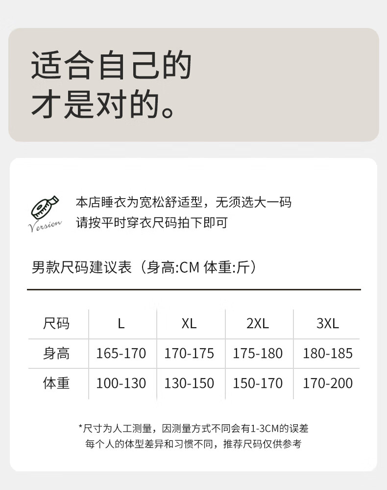 China (cm) 165 / 88-90 170 / 96-98 175 / 108-110 180 / 118-122 185 / 126-130