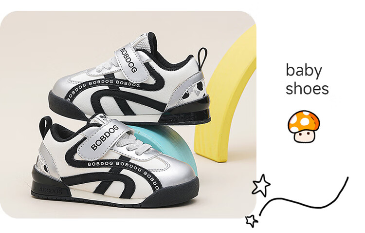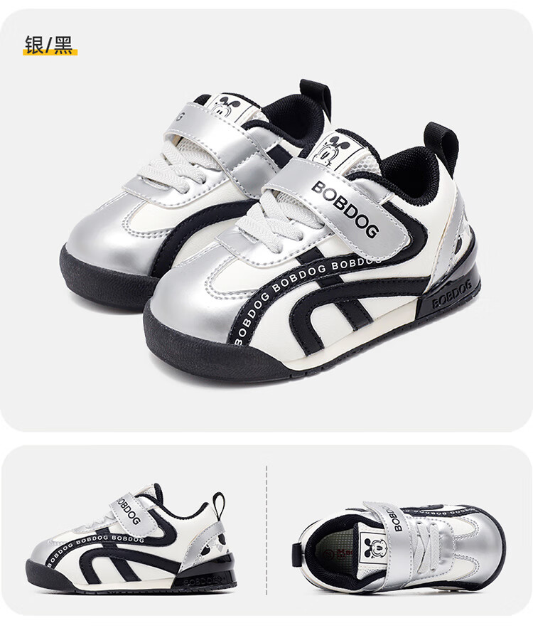 Babudou Children's Shoes Boys Autumn Comfortable Fashion Toddler Shoes Children's Lightweight Soft Sole Functional Shoes 101353176 Silver/Black 26