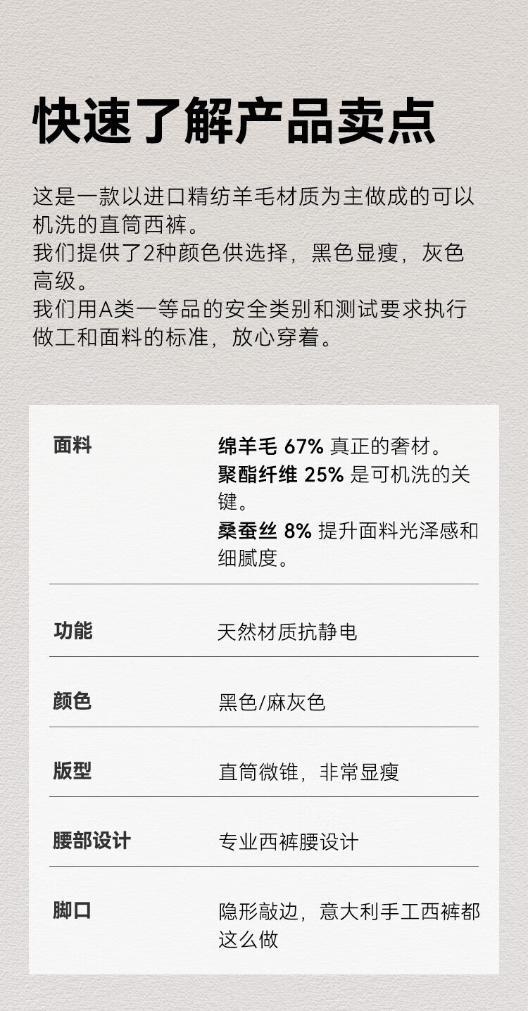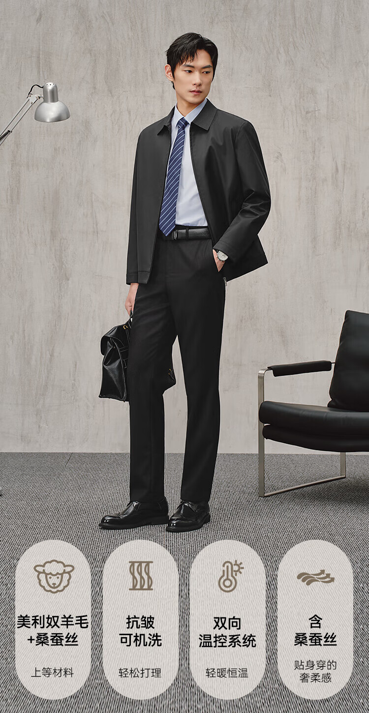 Made in Tokyo, machine washable wool trousers, men's business straight casual pants, men's trousers, suit trousers, black 34