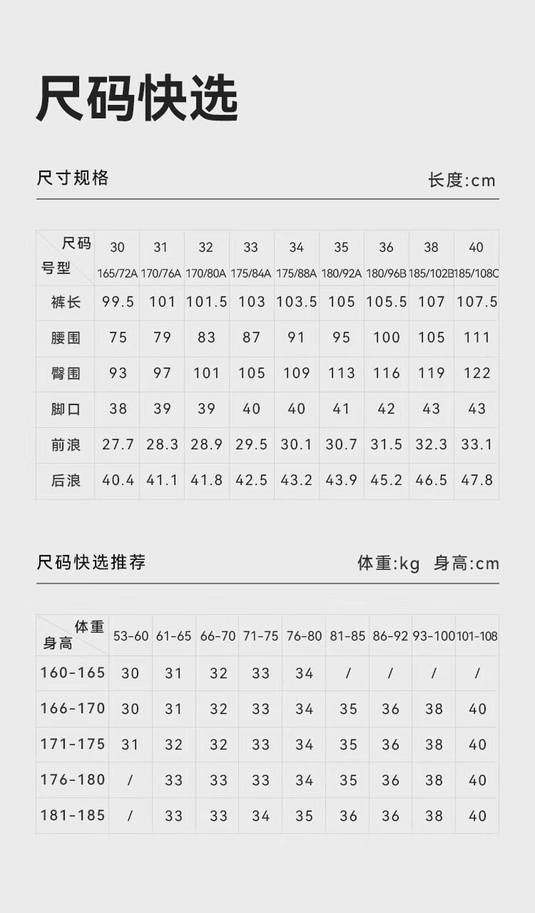 Outseam (cm) 99 cm 101.5 cm 104 cm 106.5 cm 109 cm