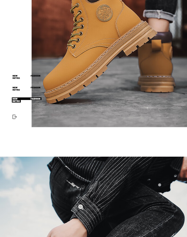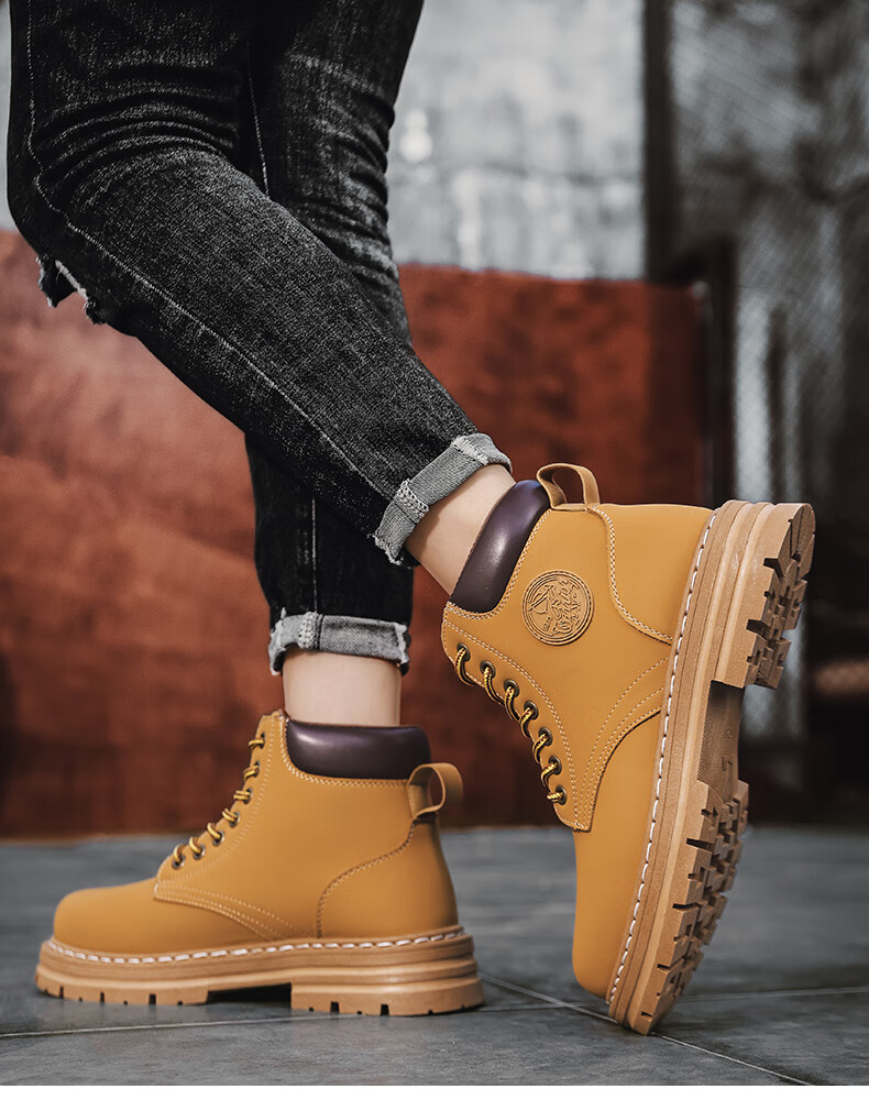Pull back men's shoes Martin boots men's winter new high-top outdoor warm boots men's retro workwear cotton shoes men's camel 43