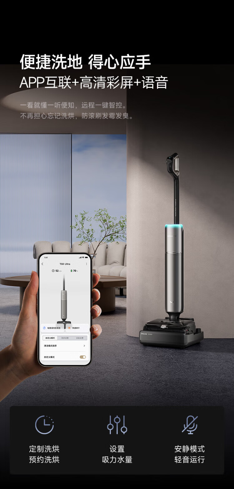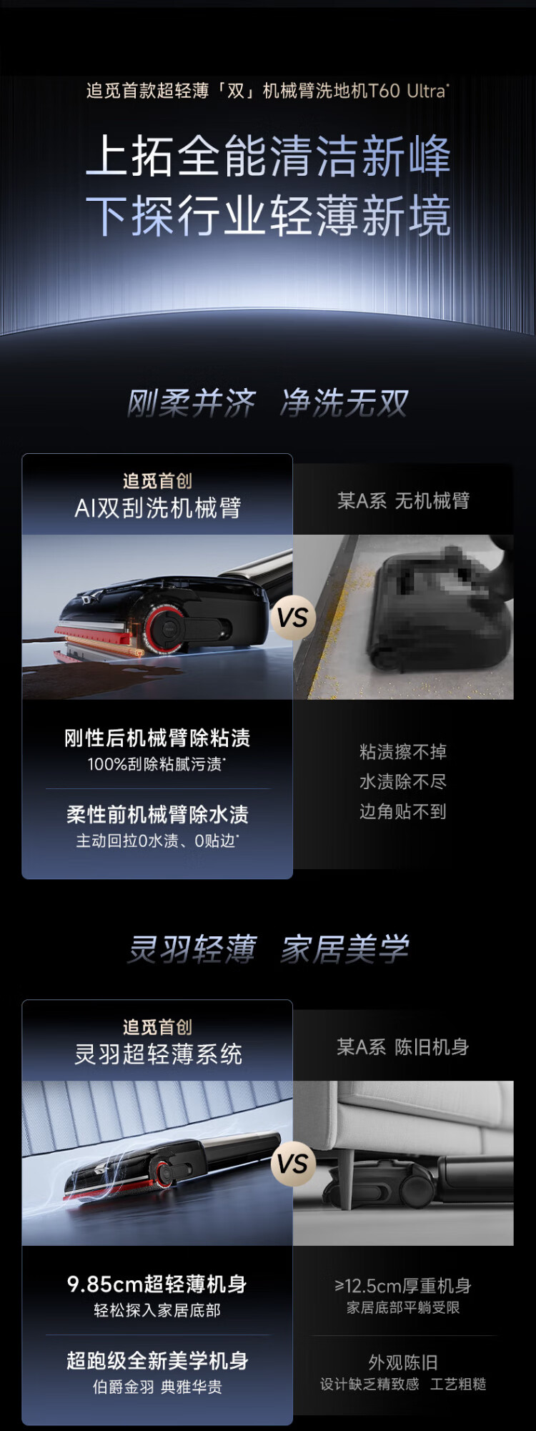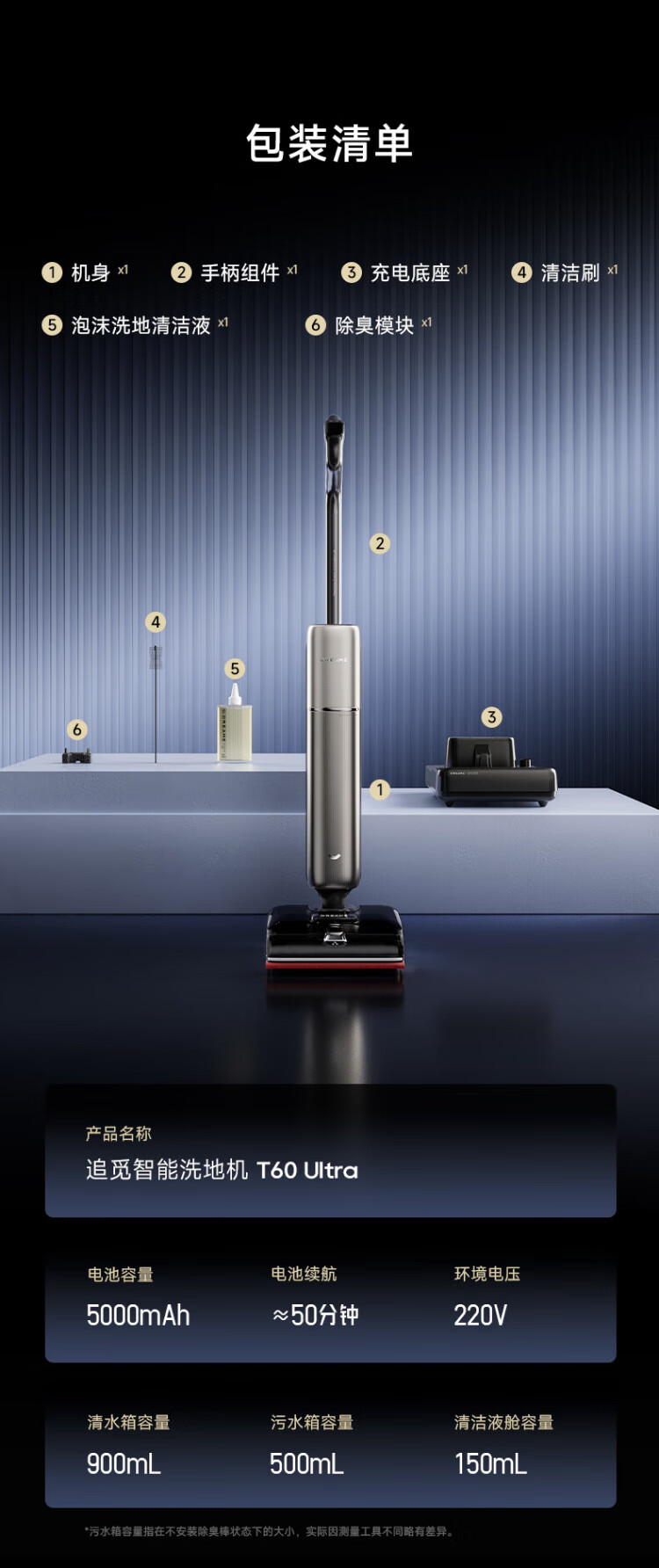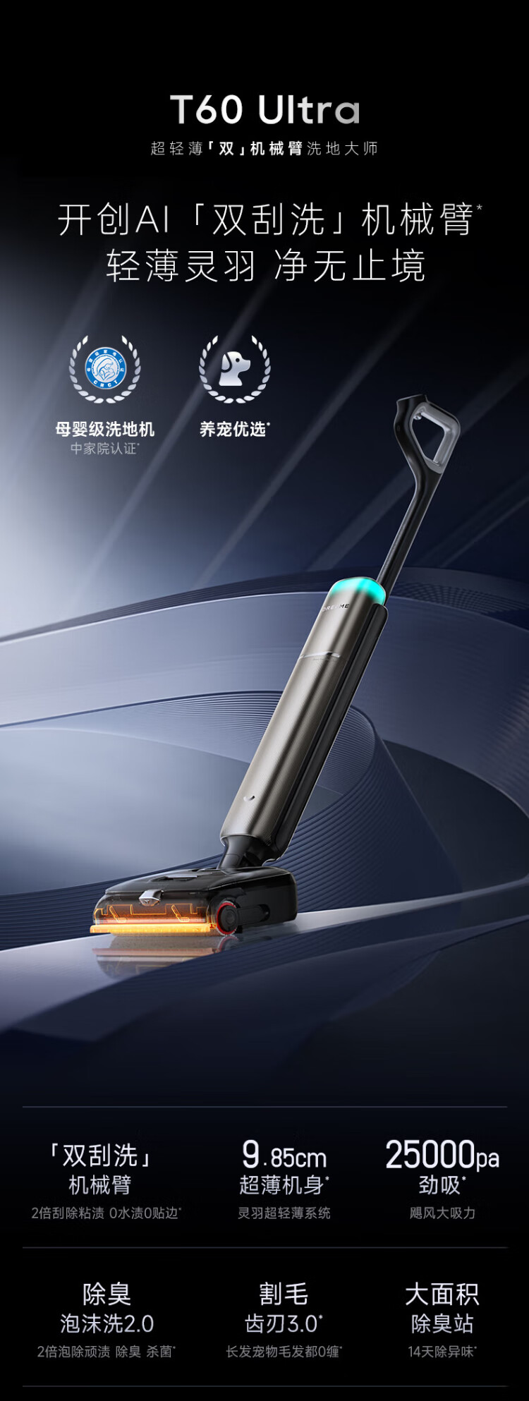 Chaimi floor scrubber T60Ultra hurricane suction ultra-thin cool dual scraper washing, mopping and suction all-in-one machine automatic cleaning household mopping and sweeping floor mopping machine national subsidy