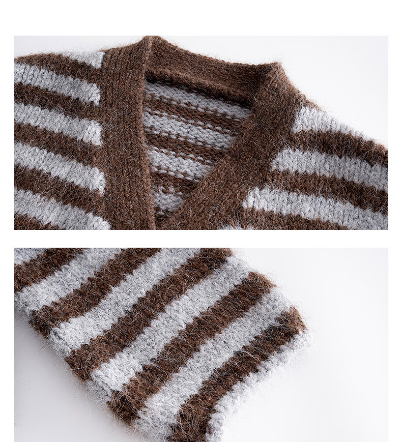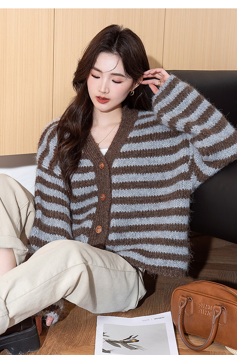 TonLion 2025 autumn and winter classic striped V-neck knitted cardigan women's jacket high-end fashion sweater women's trend
