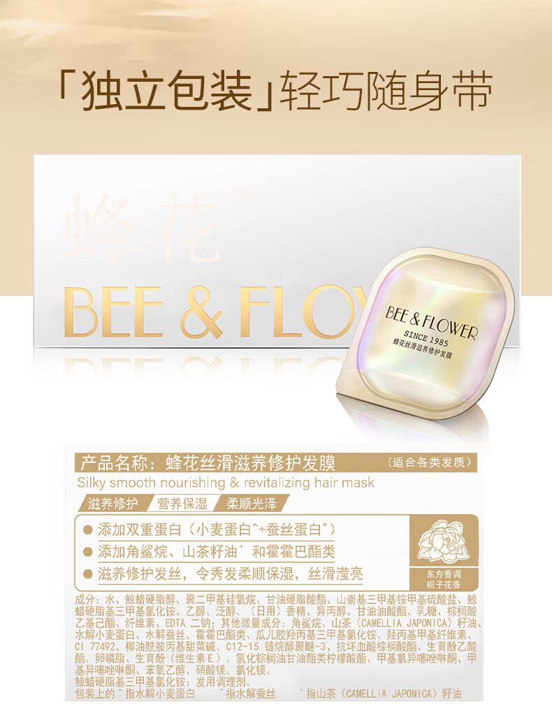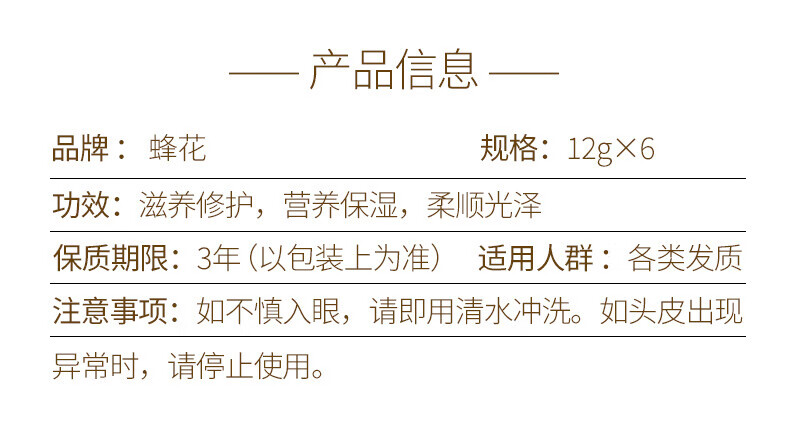 Bee flower nourishes, repairs dryness, improves roughness, moisturizes and smoothes, shiny hair mask for men and women 12g*6, on clearance