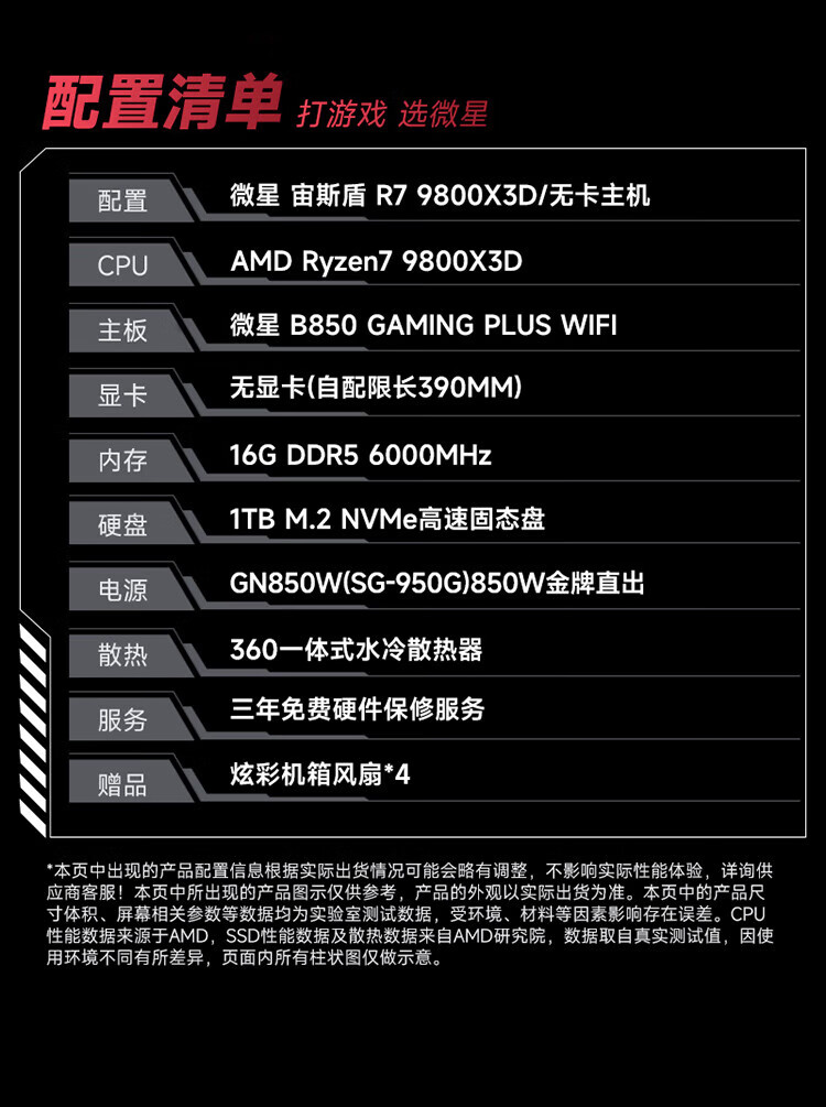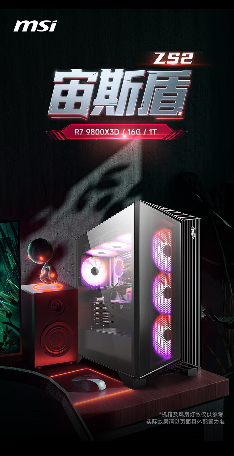 AMD&MSI Aegis ZS2 Ryzen R7 9800X3D/16G/1T/850W Gold Medal Esports Game Design Desktop Computer Cardless Host Complete Machine