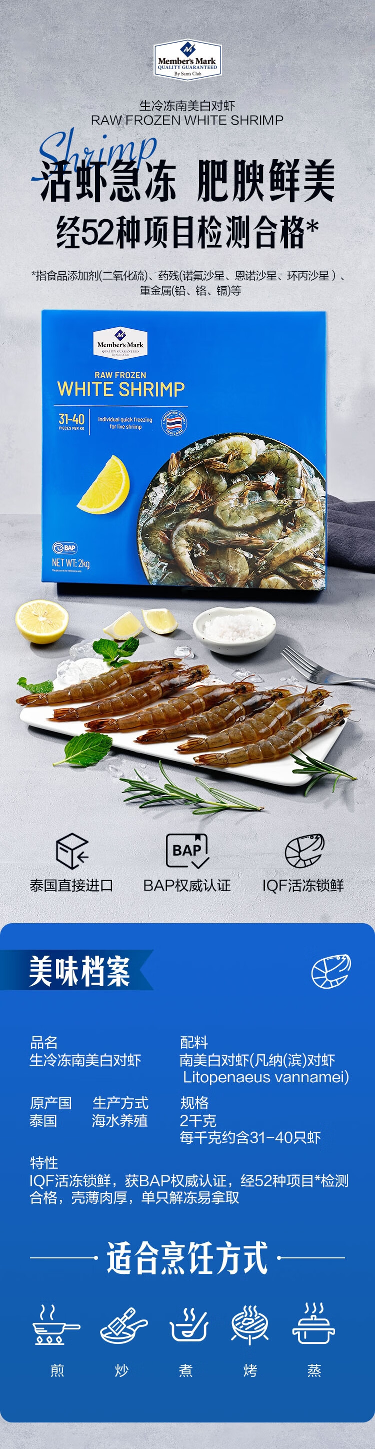 MEMBER S MARK Raw Frozen Vannamei Prawns 2kg 2kg (net weight)