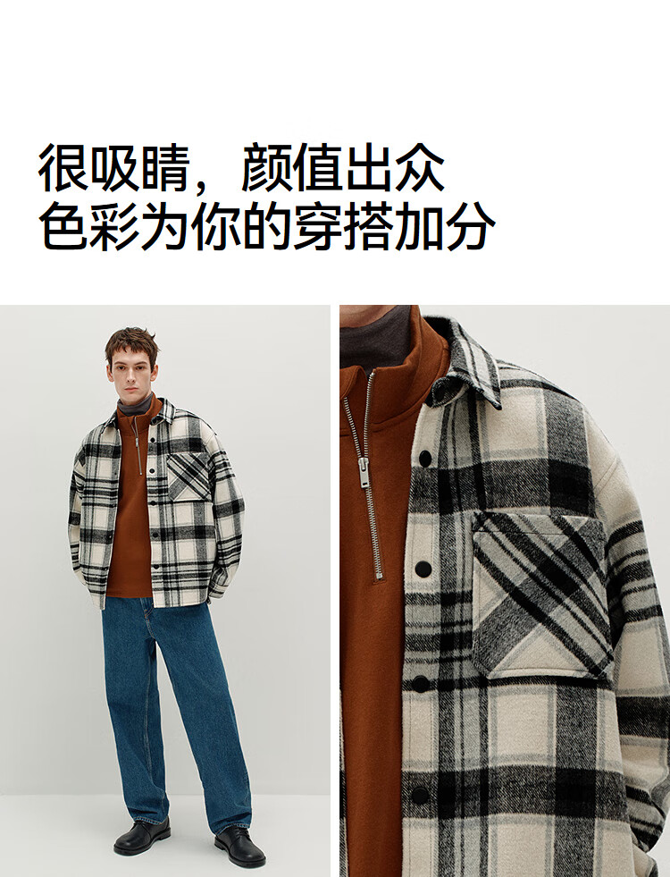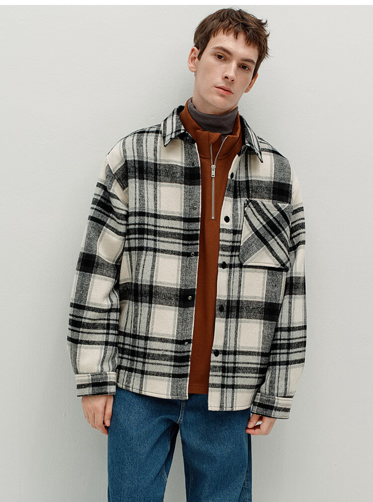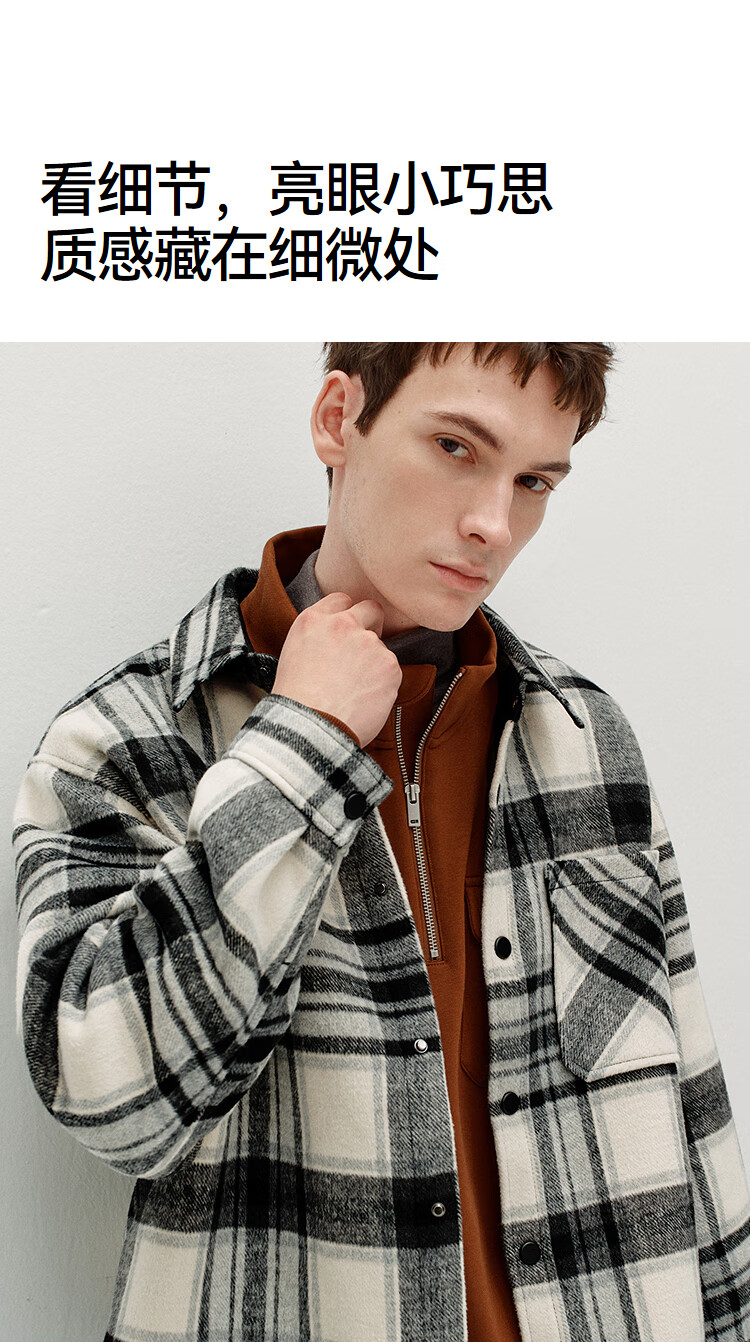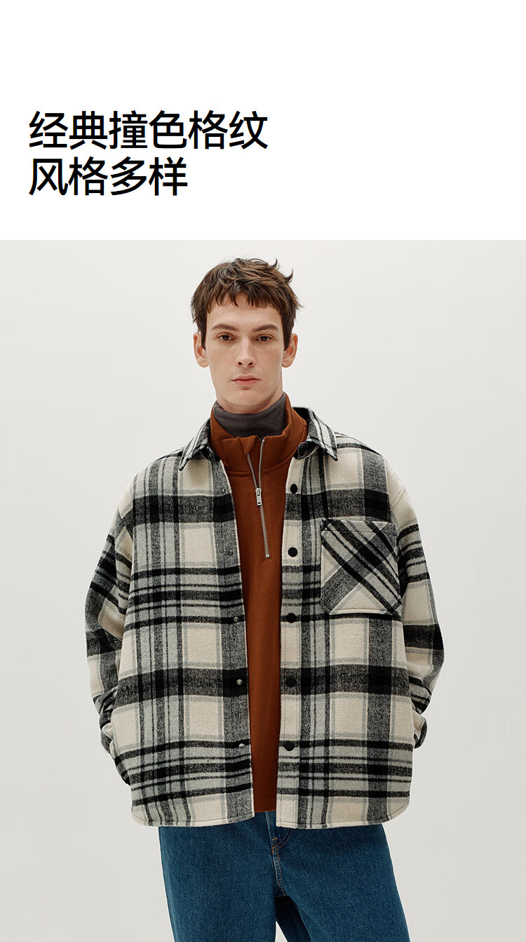 Semir Wang Anyu | Shopping mall same style | Woolen jacket men's winter plaid shirt 25 retro tops 101725118103