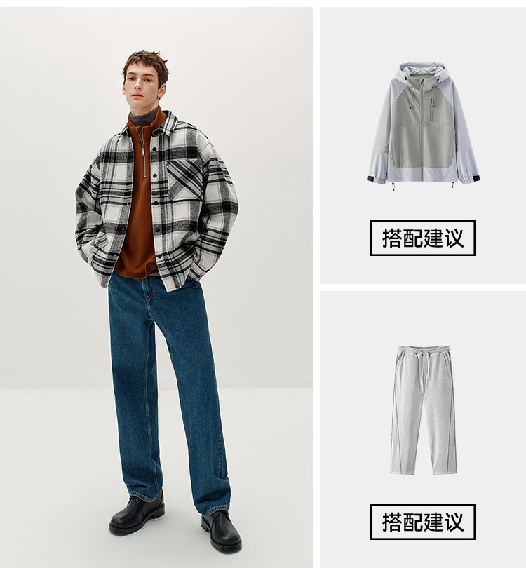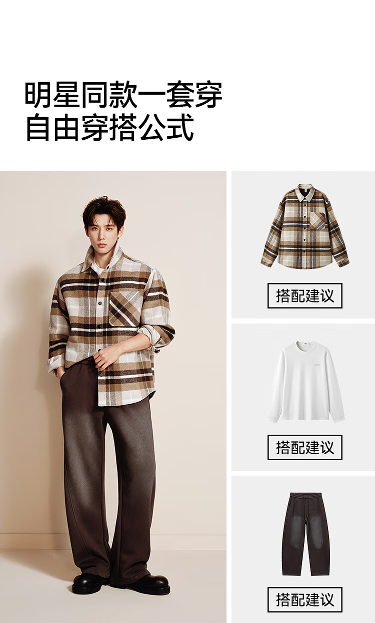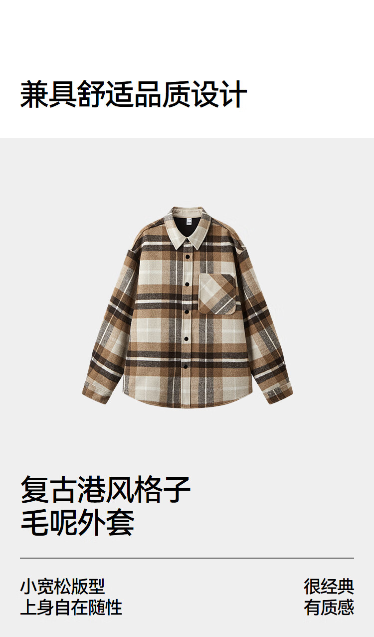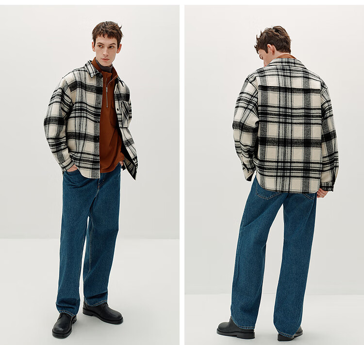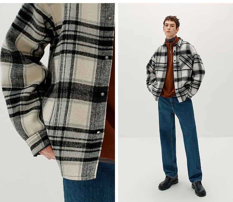 Semir Wang Anyu | Shopping mall same style | Woolen jacket men's winter plaid shirt 25 retro tops 101725118103