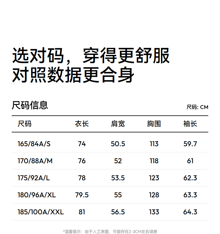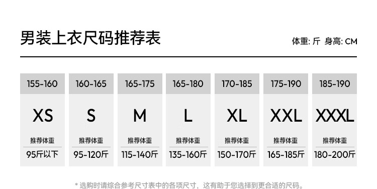 China (cm) 160-165/84-86 165-170 / 88-90 167-172 / 92-96 168-173 / 98-102 170-176 / 106-110
