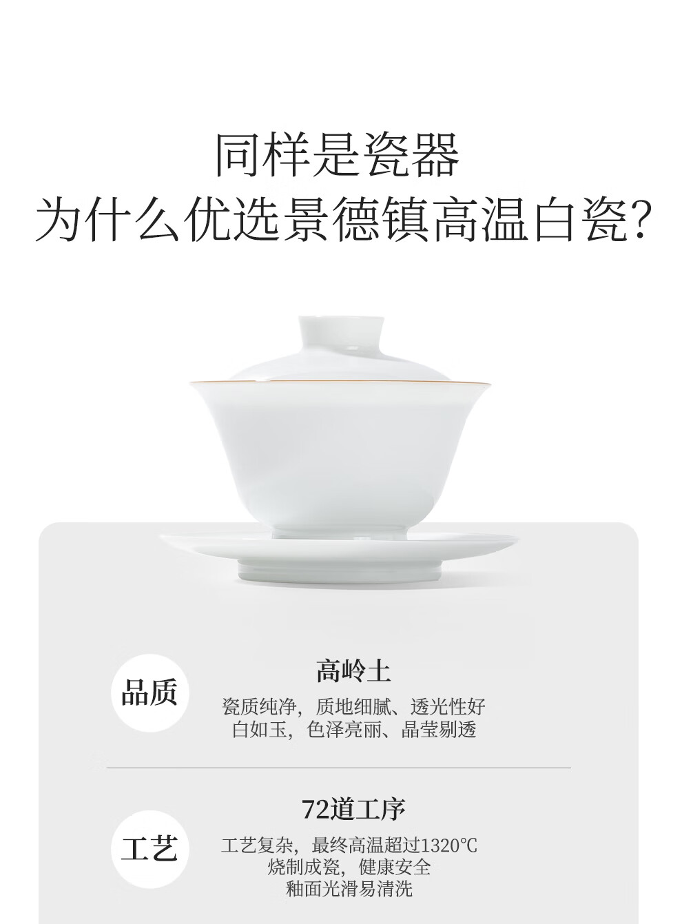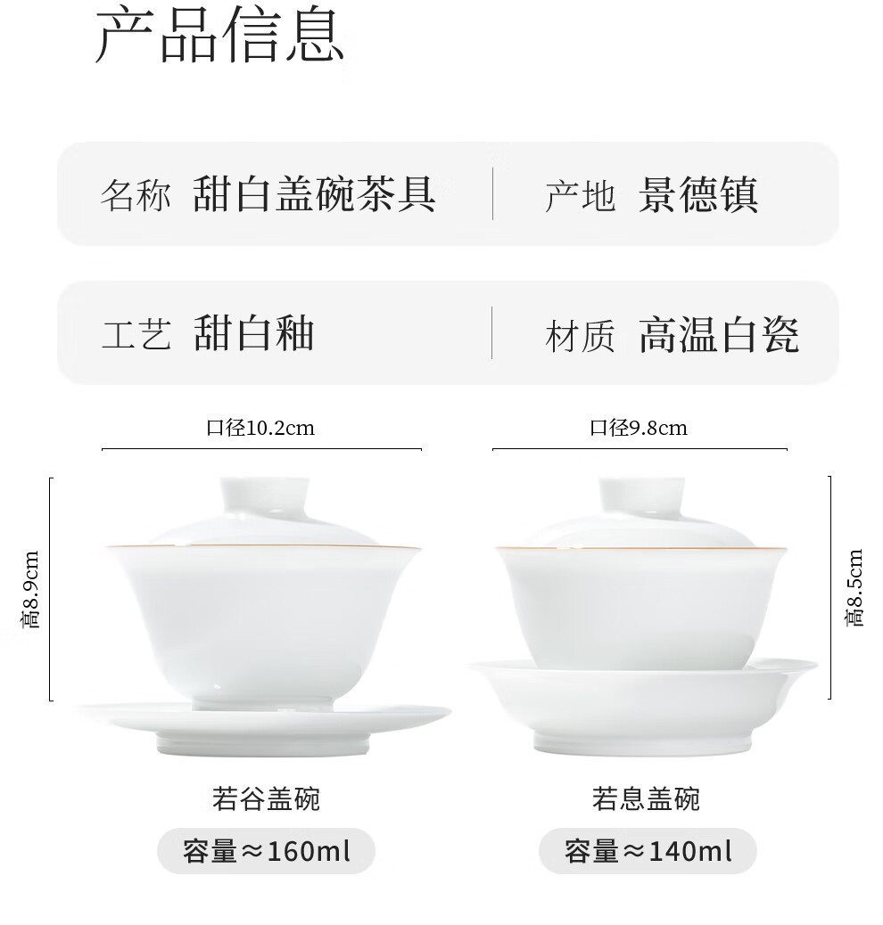 Jingdezhen Ceramic High Temperature Sweet White Glaze Covered Bowl Home Handmade White Porcelain Drinking Tea Cup Kung Fu Sancai Covered Bowl Single Tea Bowl Ruogu Single Covered Bowl