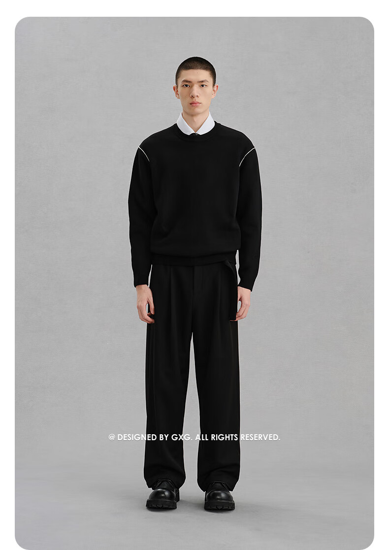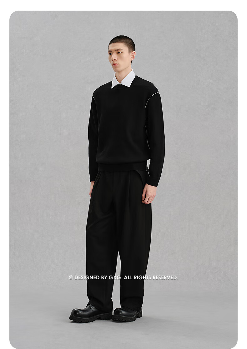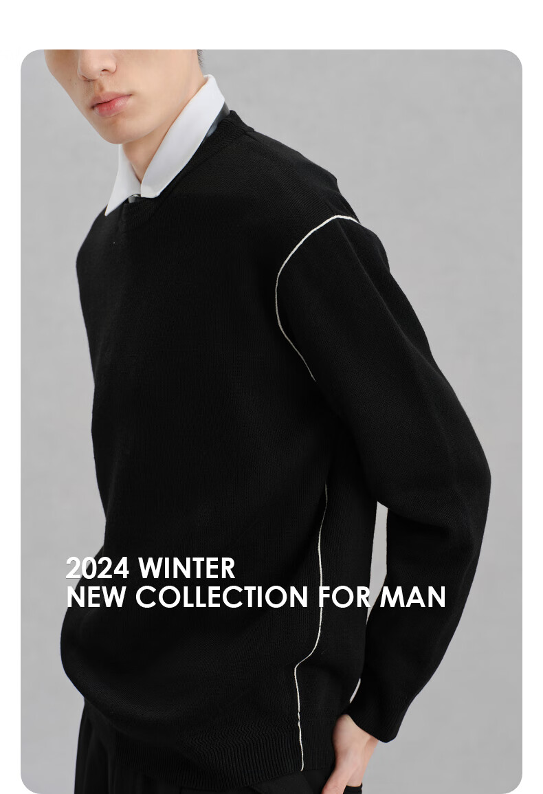 GXG Men's Contrast Color Sweater Chenille Sweater Warm Commuting Winter 2024 Black 180/XL