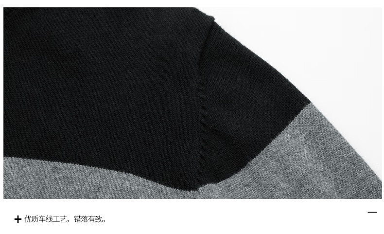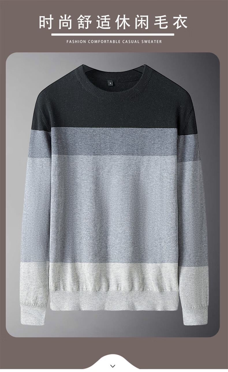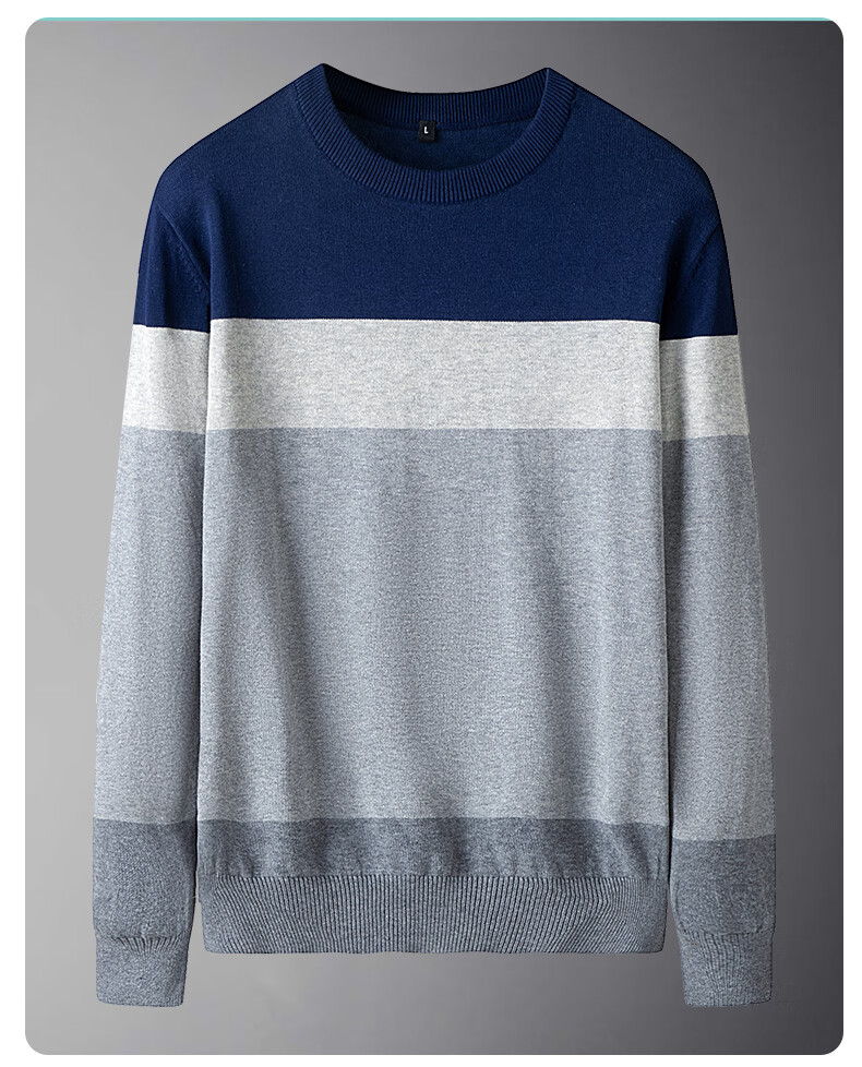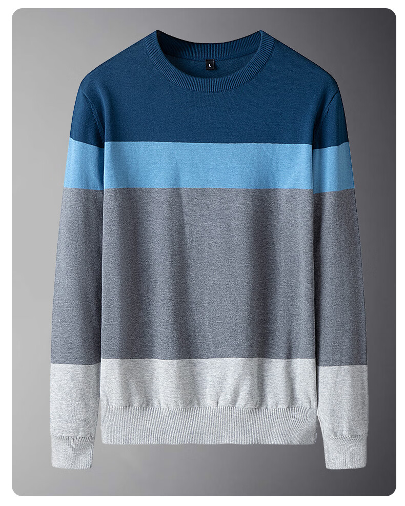 JEANSWEST Knitted Sweater Men's Autumn and Winter Round Neck Color Block Thickened Cotton Warm Sweater Versatile Casual Pullover Bottoming Sweater for Men