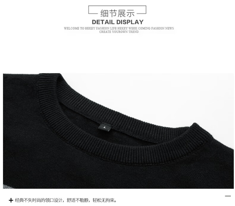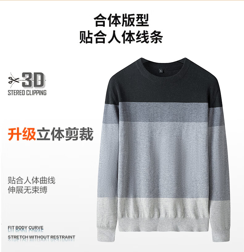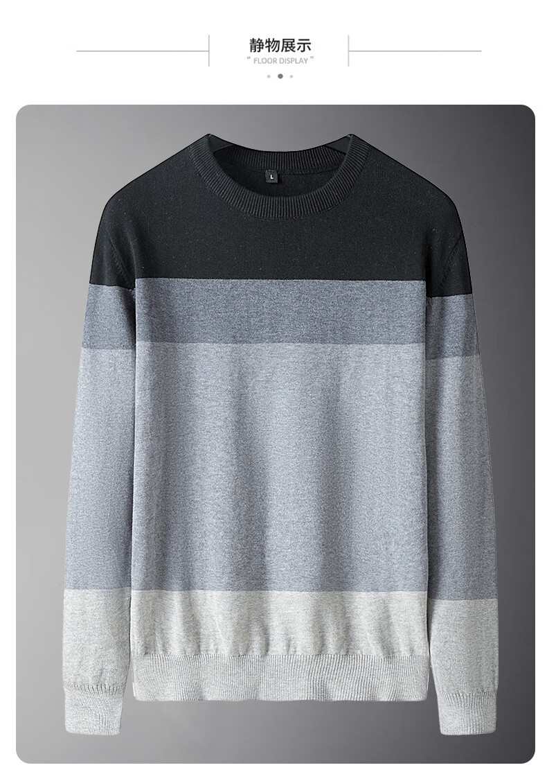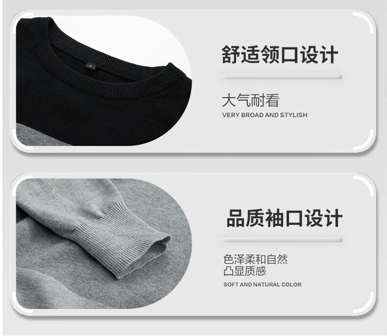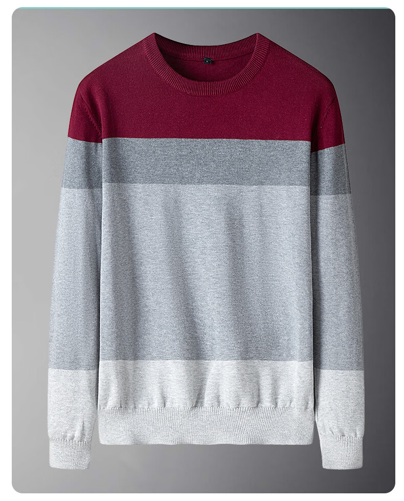 JEANSWEST Knitted Sweater Men's Autumn and Winter Round Neck Color Block Thickened Cotton Warm Sweater Versatile Casual Pullover Bottoming Sweater for Men