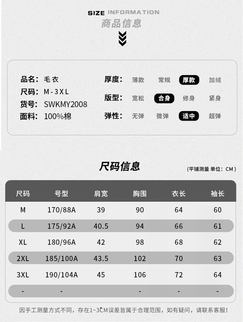 China (cm) 165 / 88-90 170 / 96-98 175 / 108-110 180 / 118-122 185 / 126-130