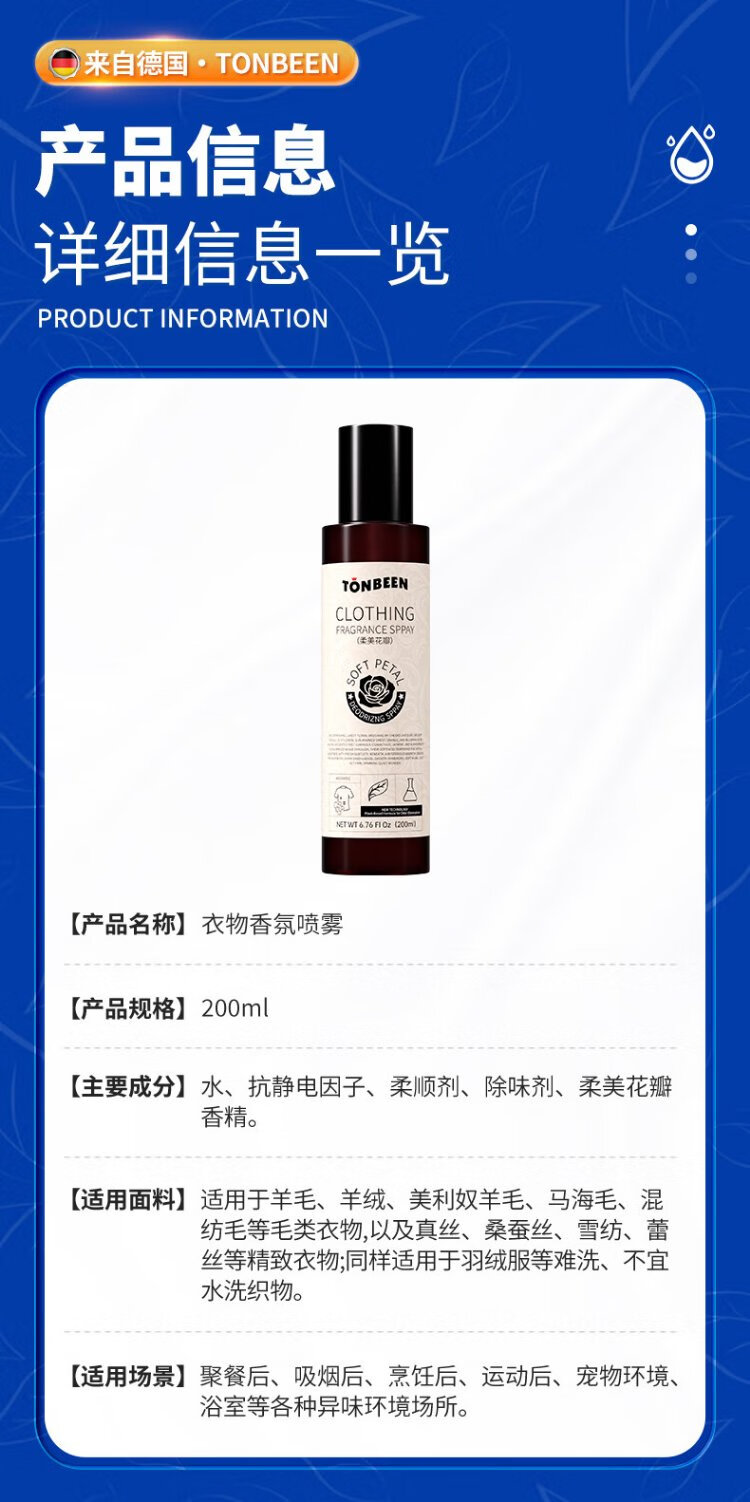 TONBEEN German clothing fragrance spray spray clothes special deodorizing down jacket deodorizing and fragrant hot pot deodorizing agent