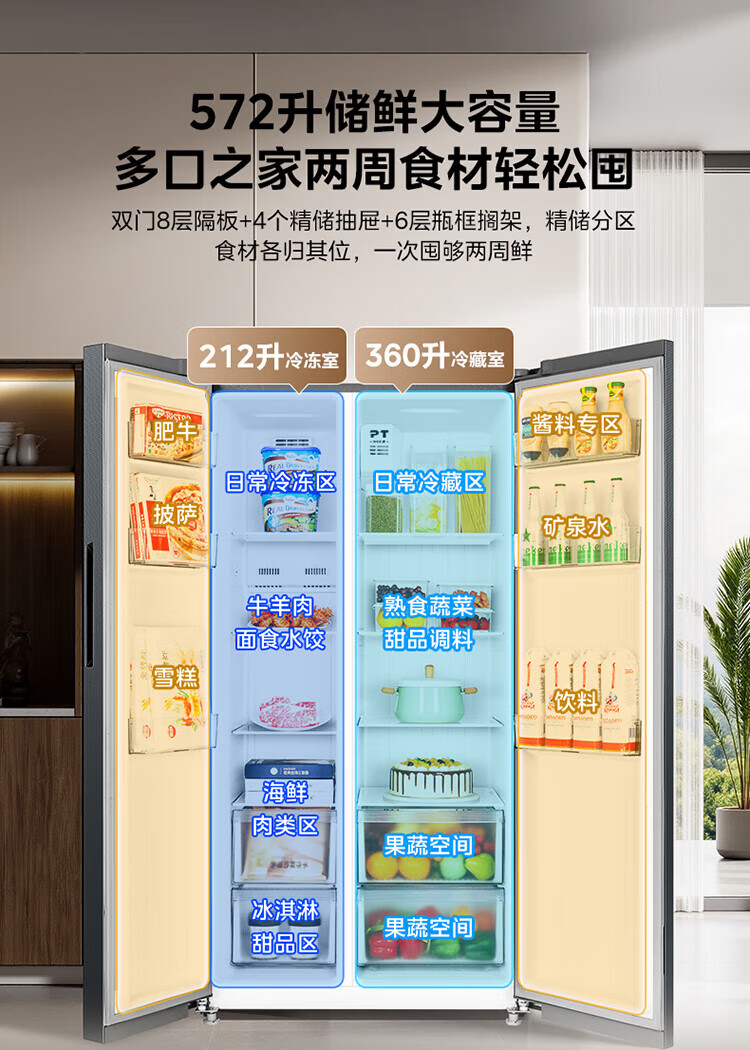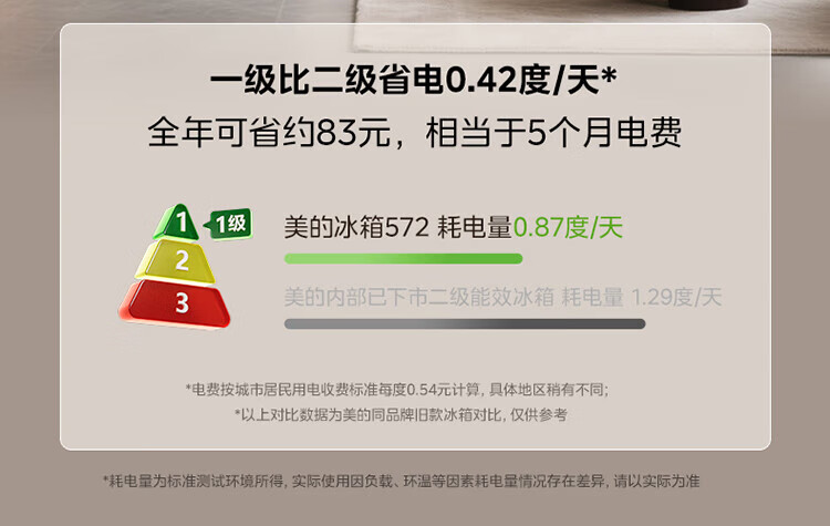 Midea 572-liter double-door household refrigerator first-class energy efficiency variable frequency energy-saving air-cooled frost-free large capacity trade-in BCD-572WKPM (Q) national subsidy 20%