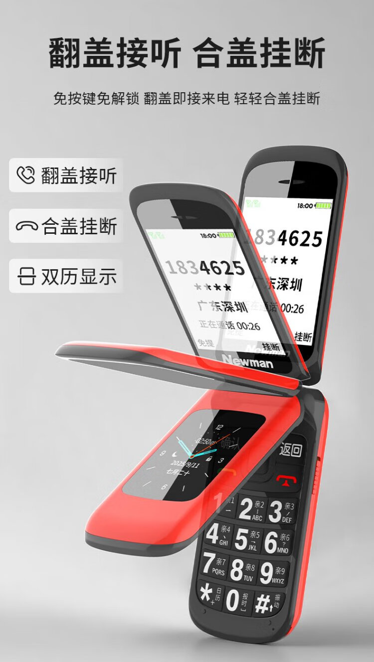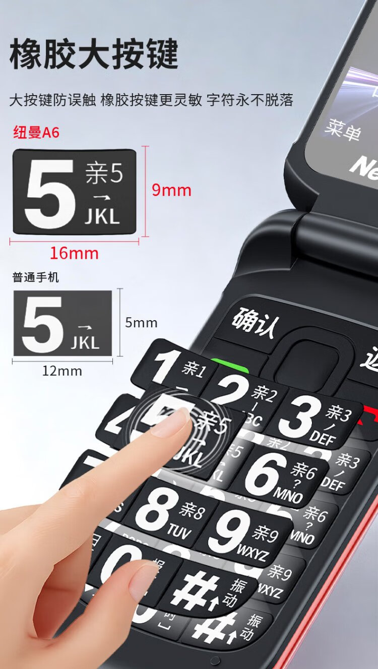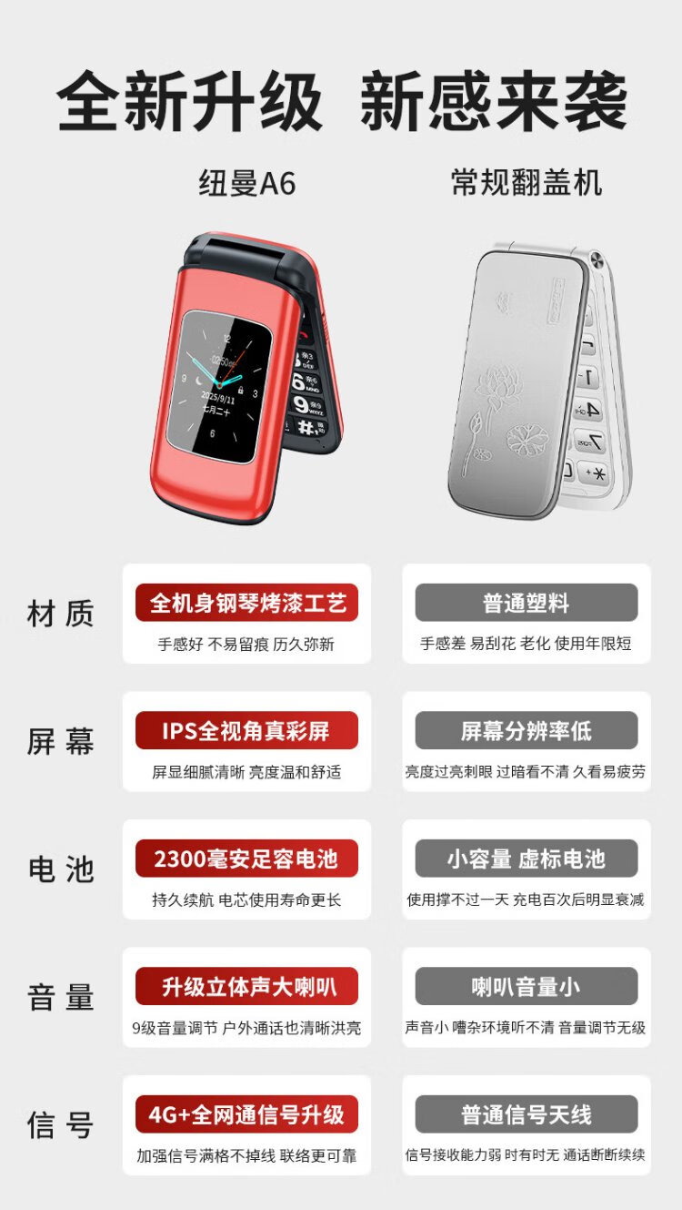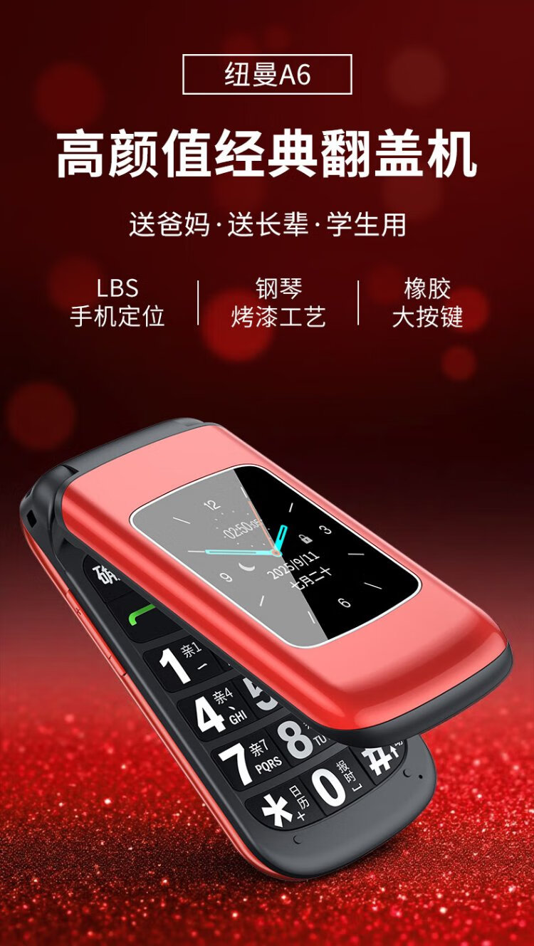 Newman A6 Chinese red flip phone for the elderly, 4G full network, large battery and long standby, large characters, large screen, large volume, large buttons, elderly phone, student backup function phone