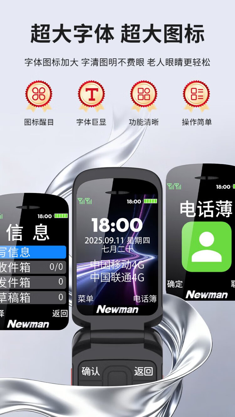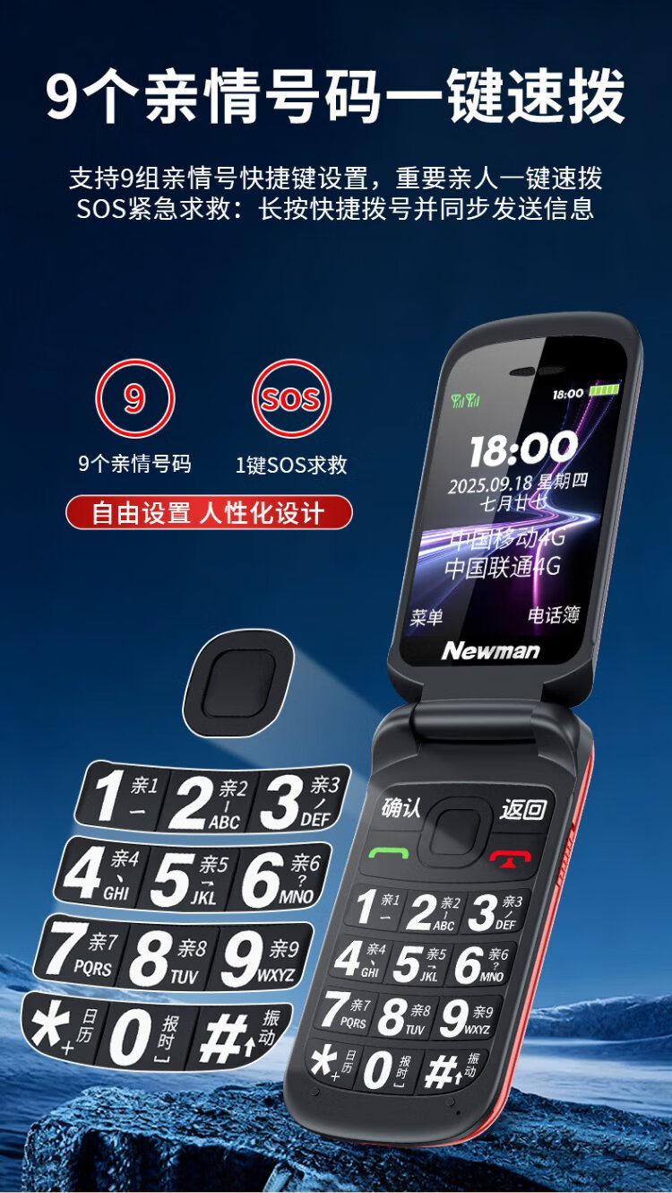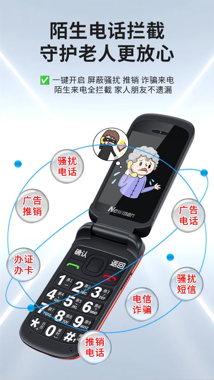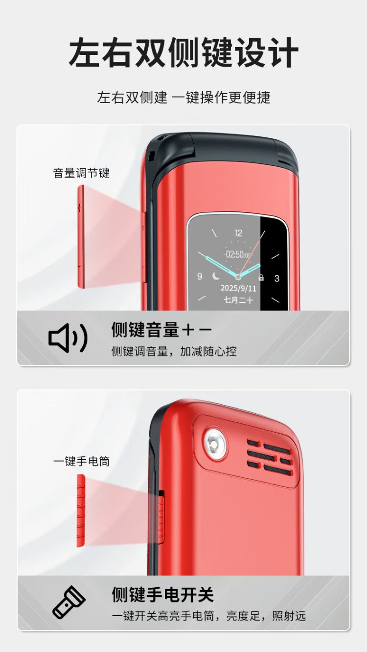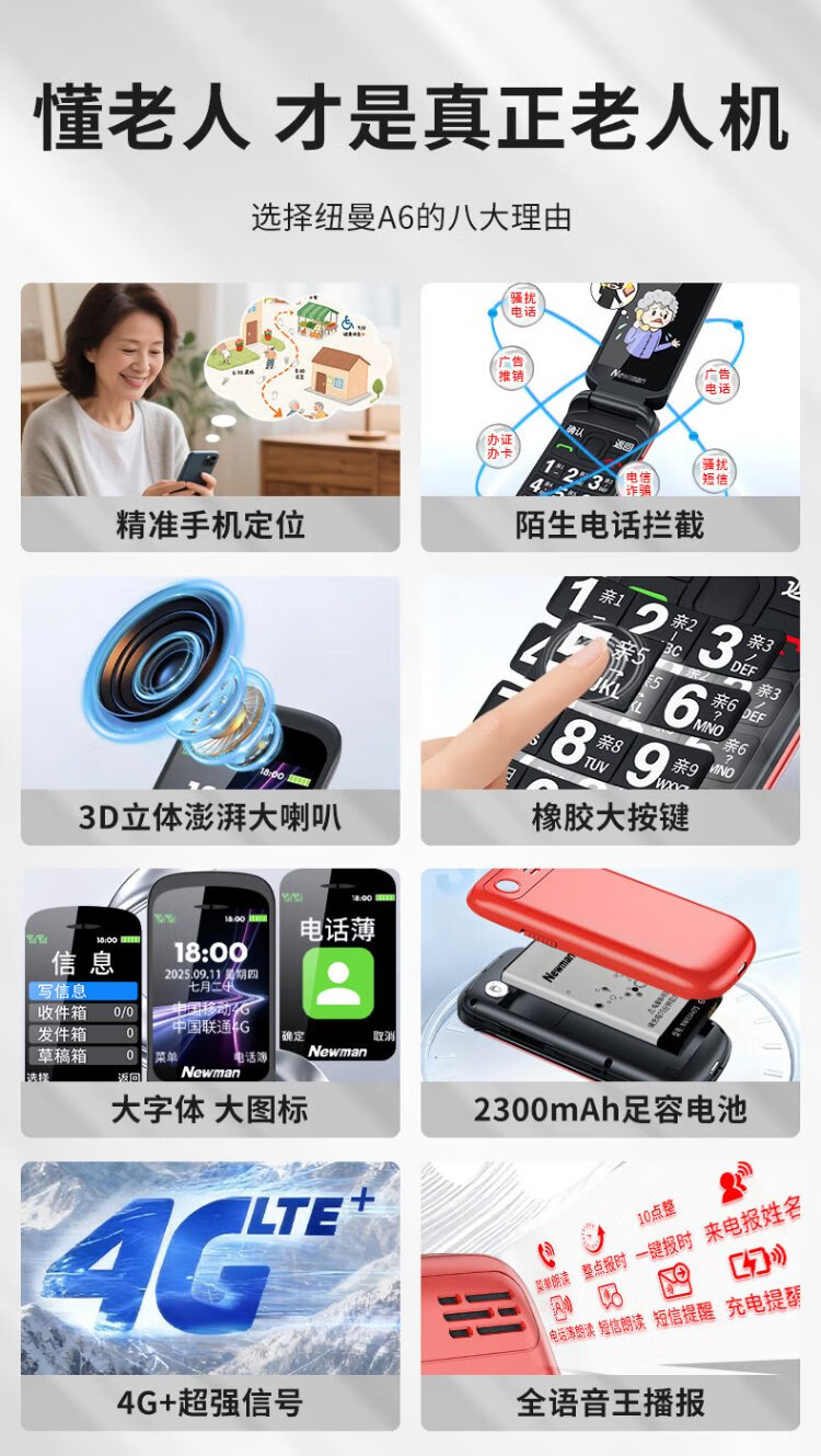 Newman A6 Chinese red flip phone for the elderly, 4G full network, large battery and long standby, large characters, large screen, large volume, large buttons, elderly phone, student backup function phone