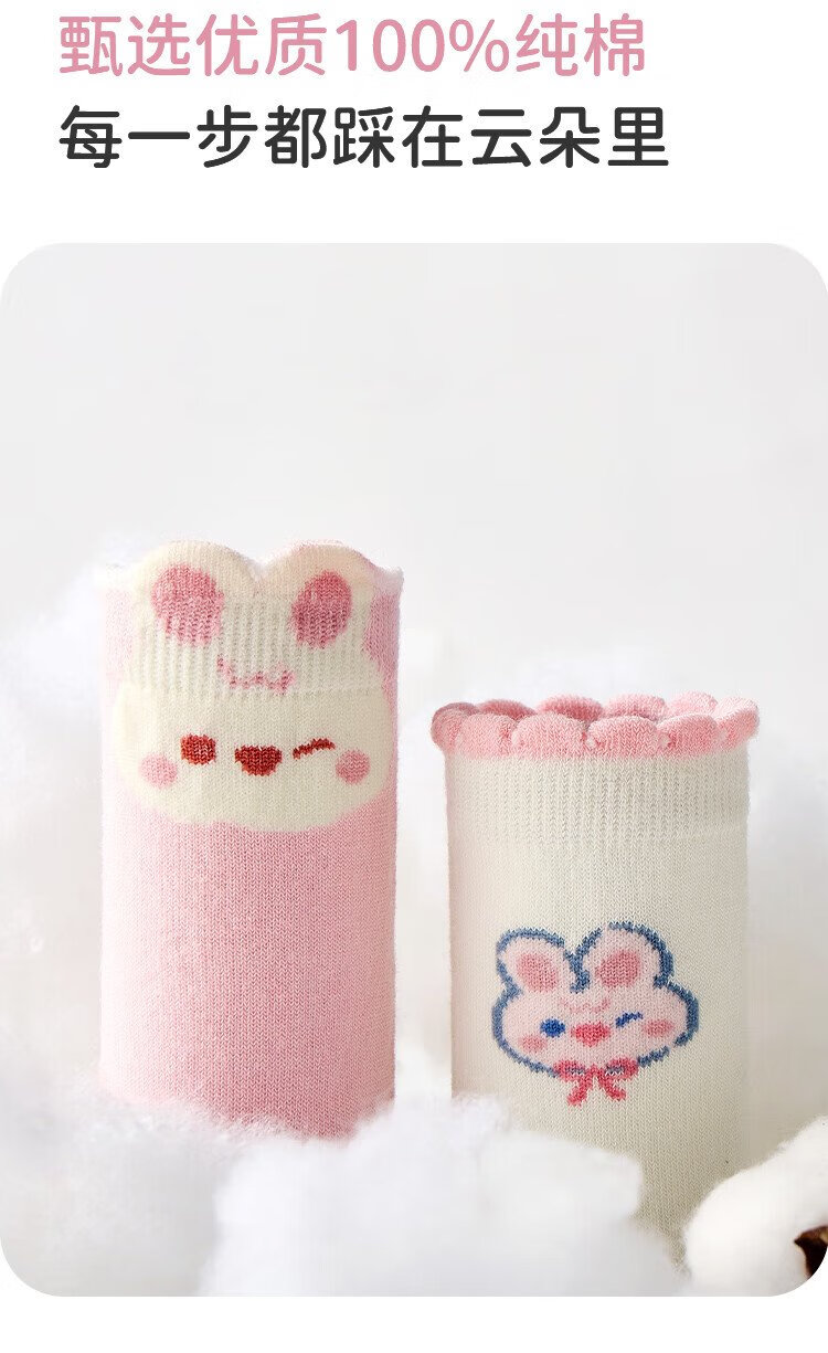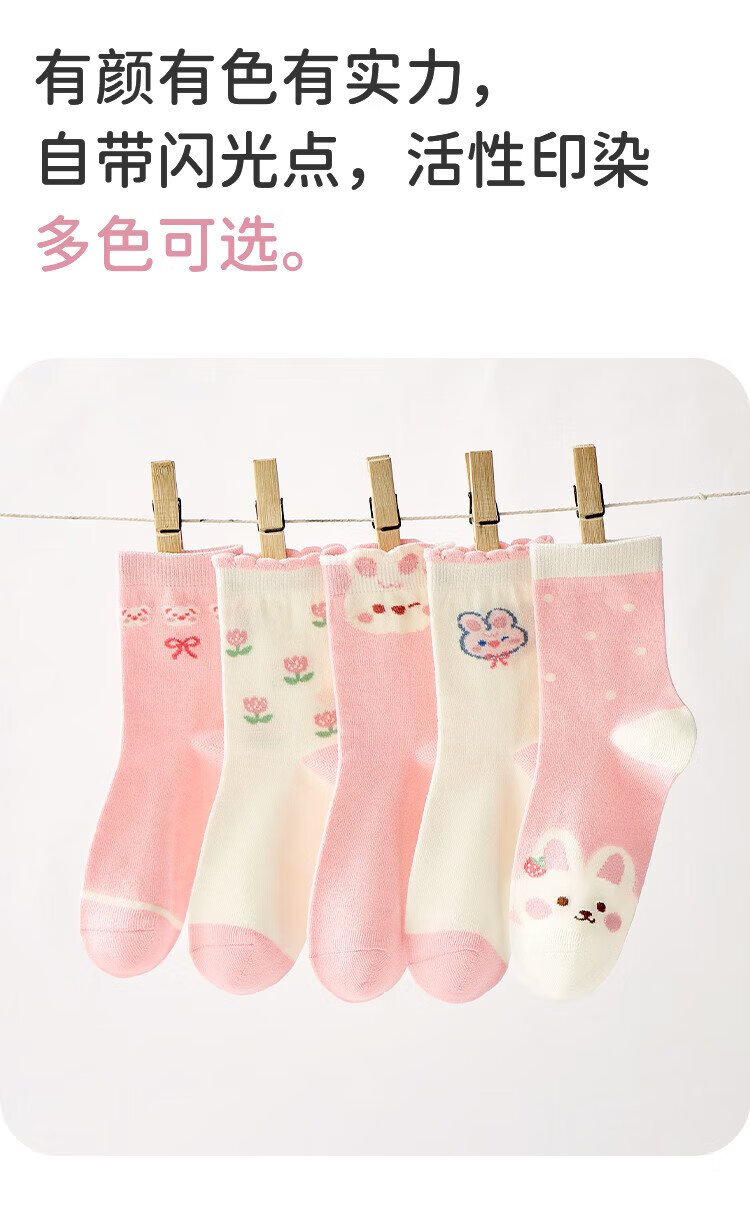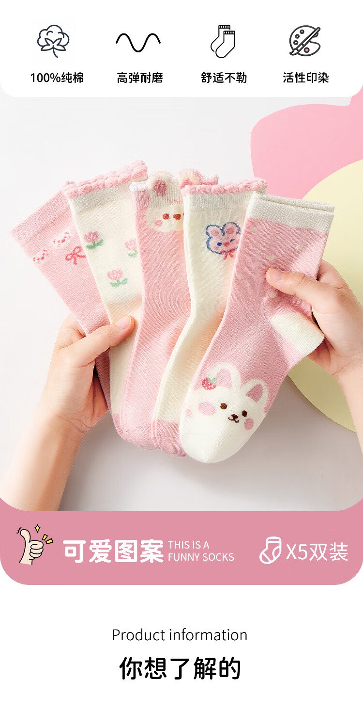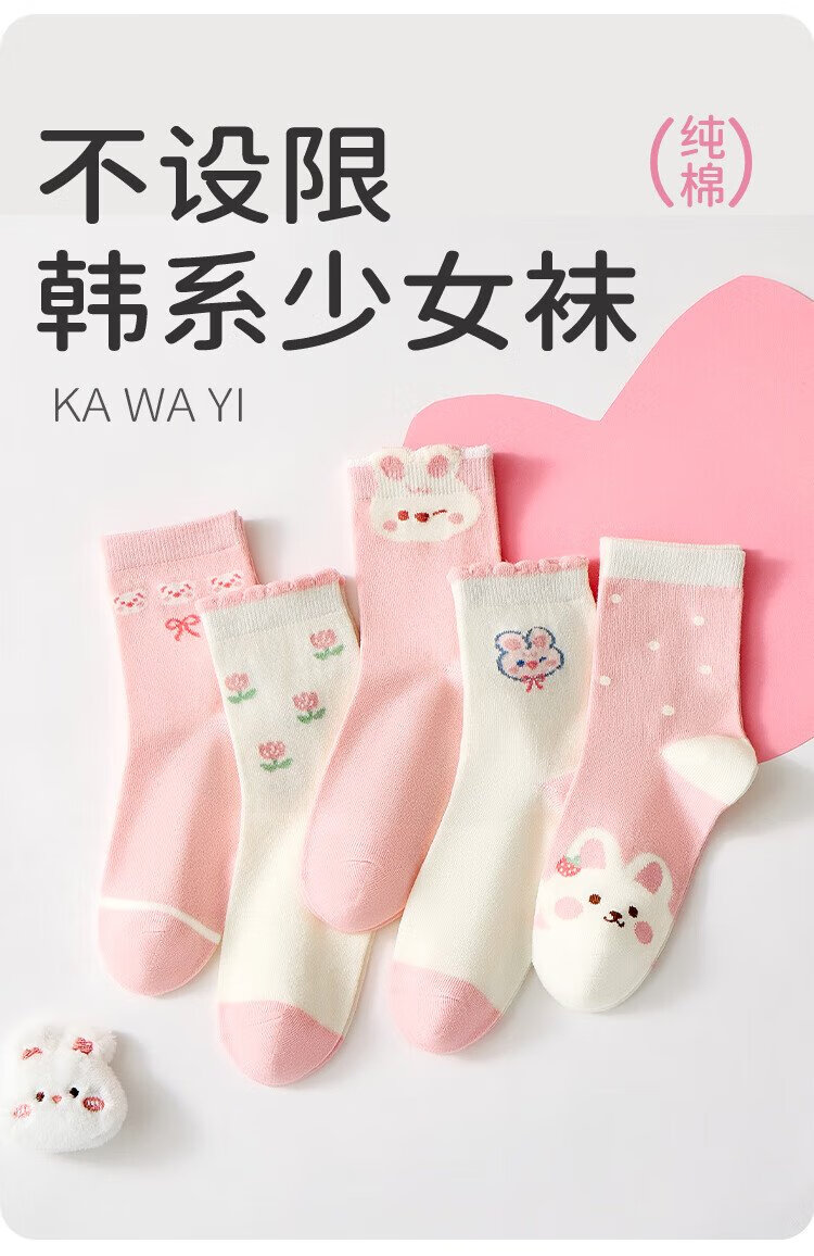 Urban Beauty Children's Socks Girls' Four Seasons Mid-Tube Cotton Socks Cute Bunny Sweet Girls Long Socks 5 Pairs 2XL